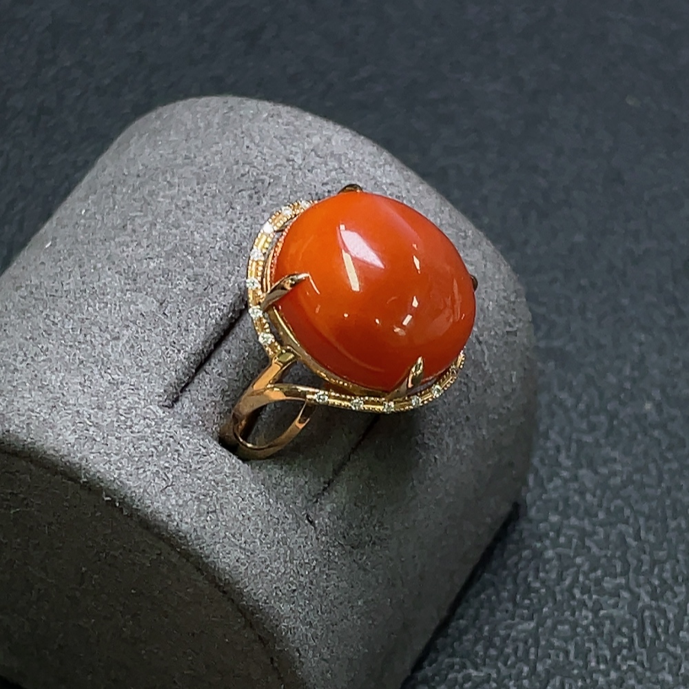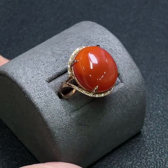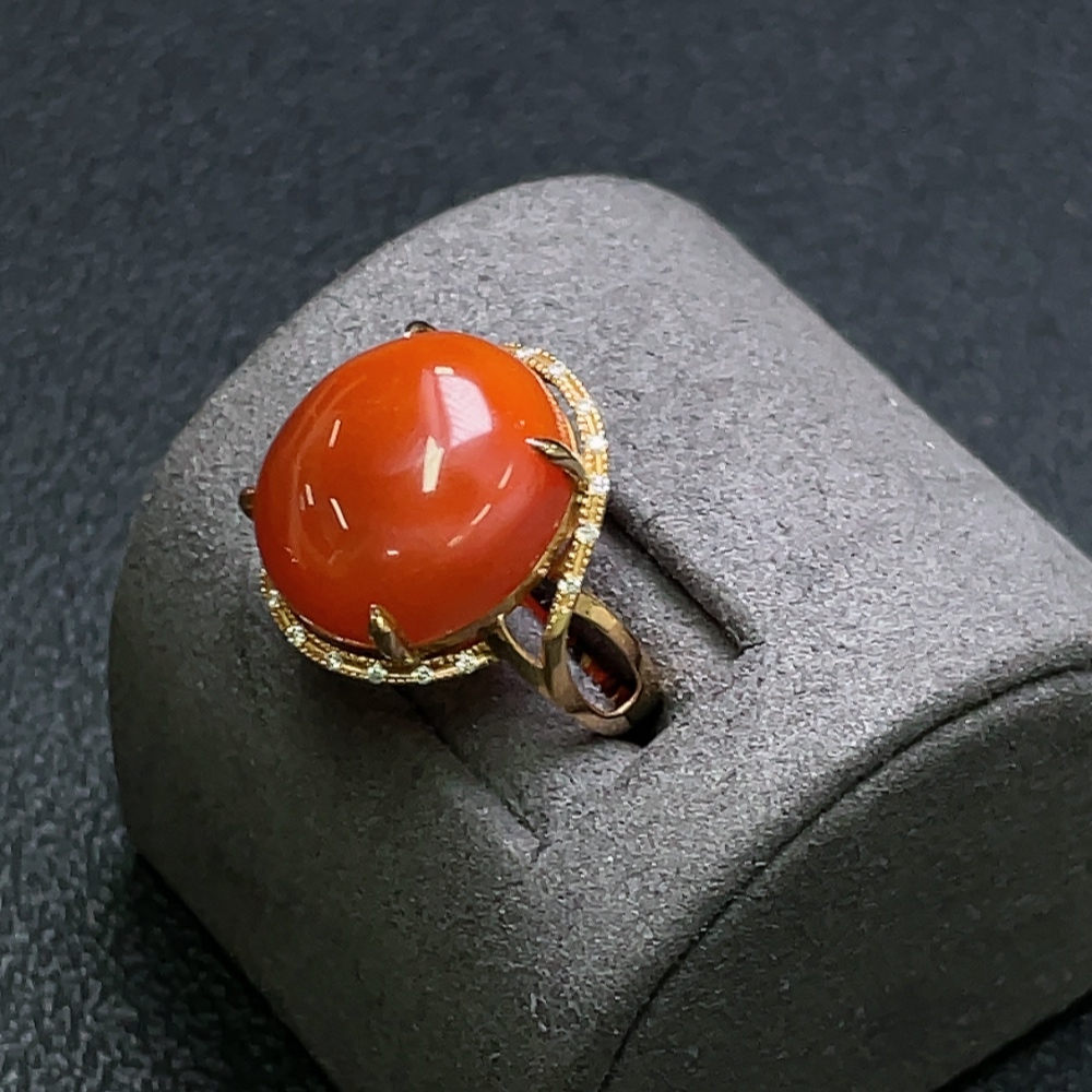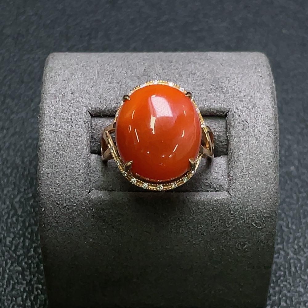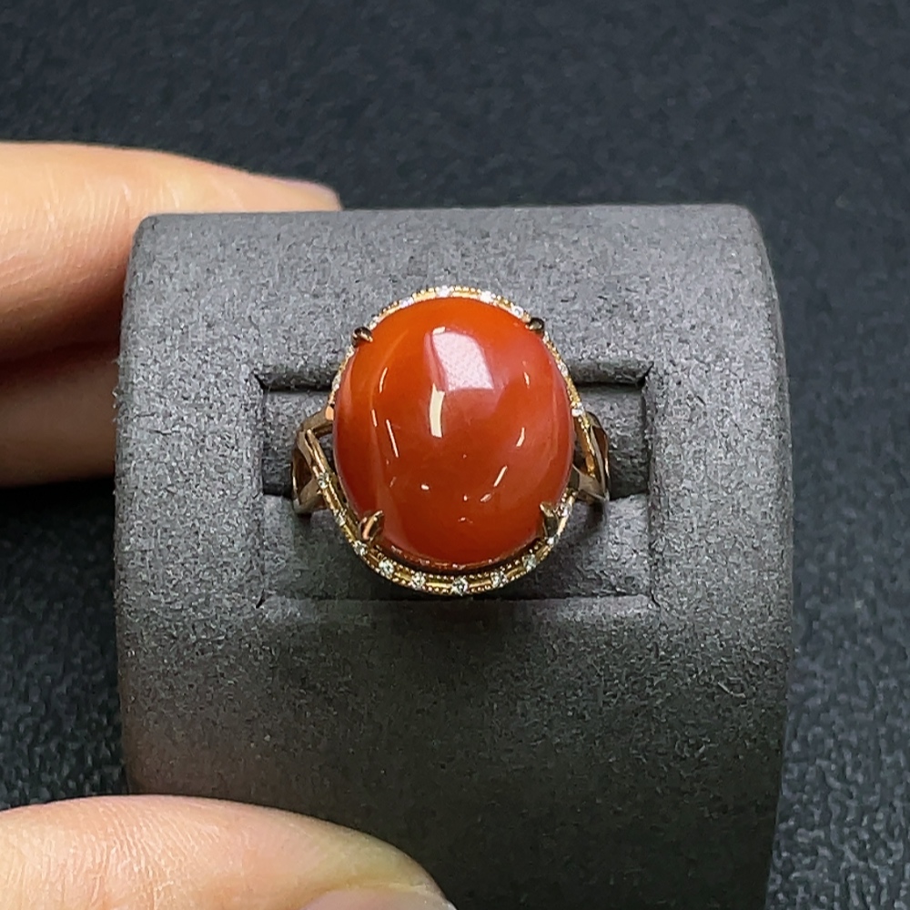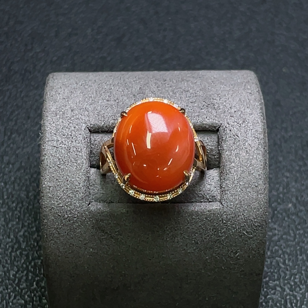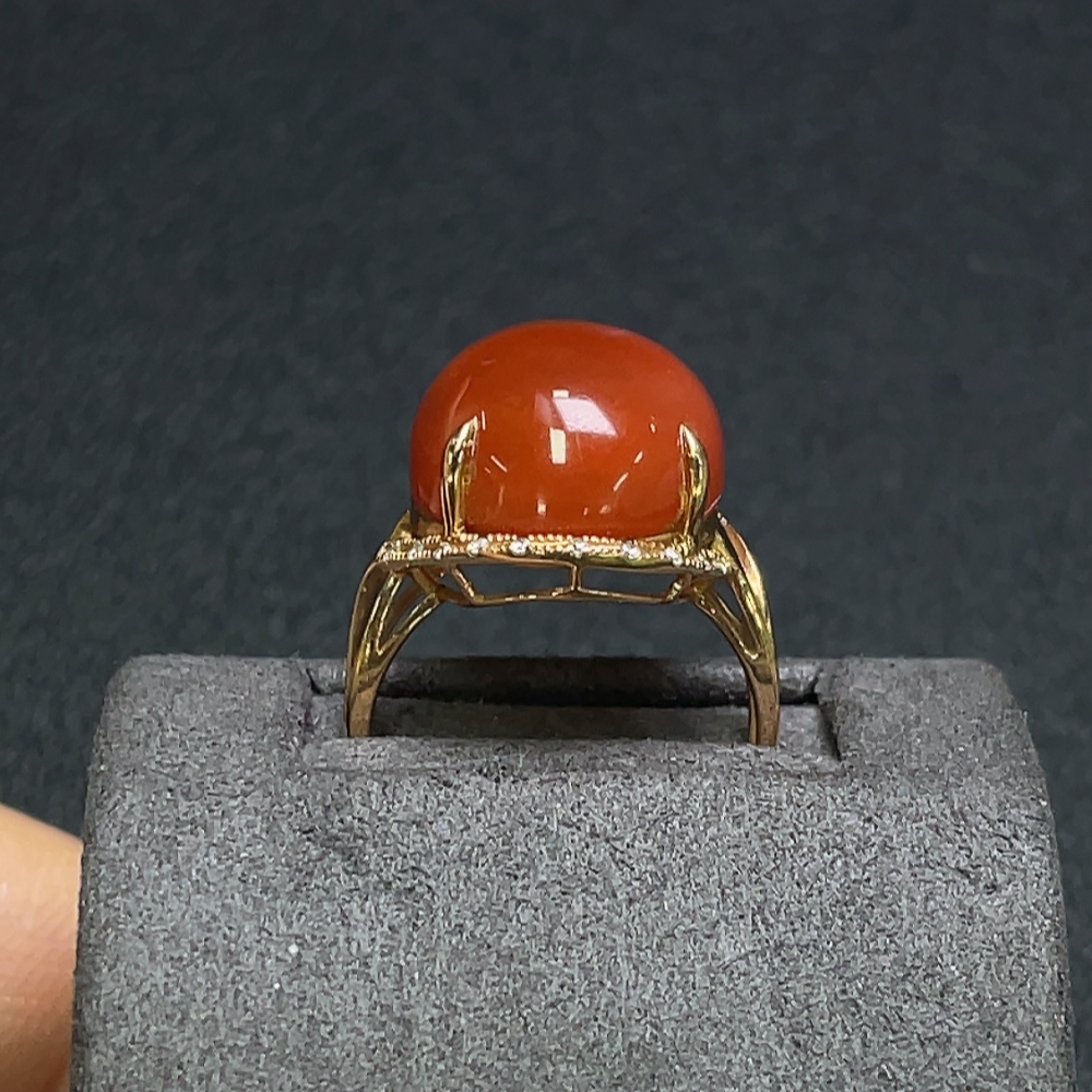Red Agate Ring in 18K Gold, Total Weight Approx. 5.46g, Size 14