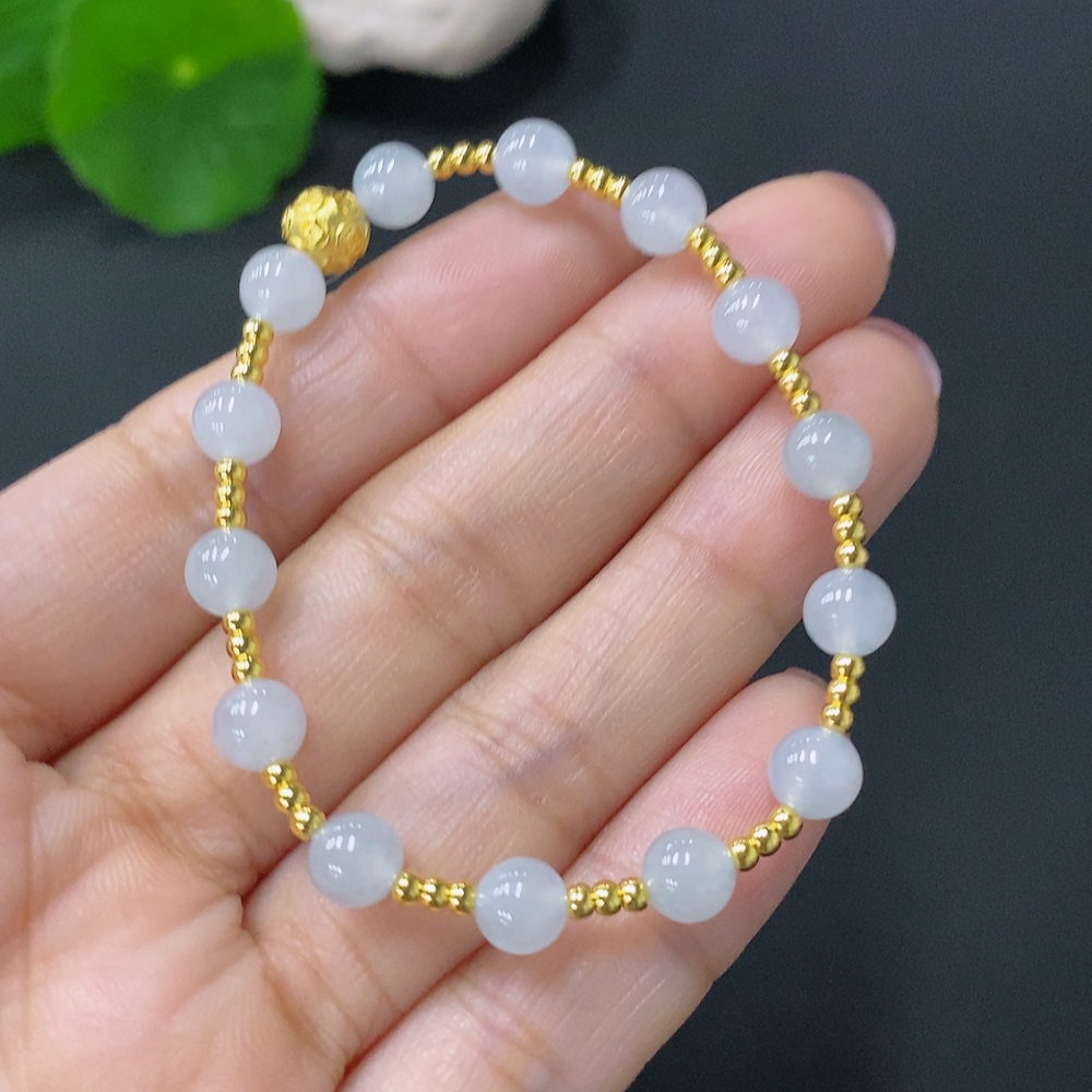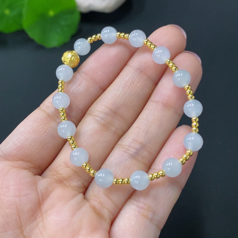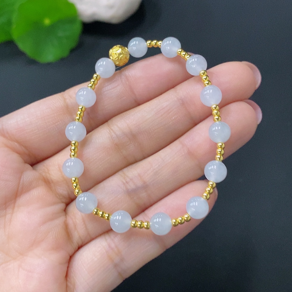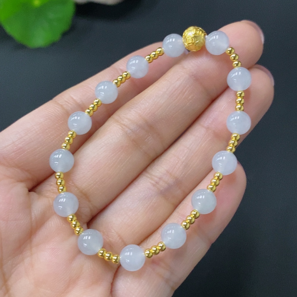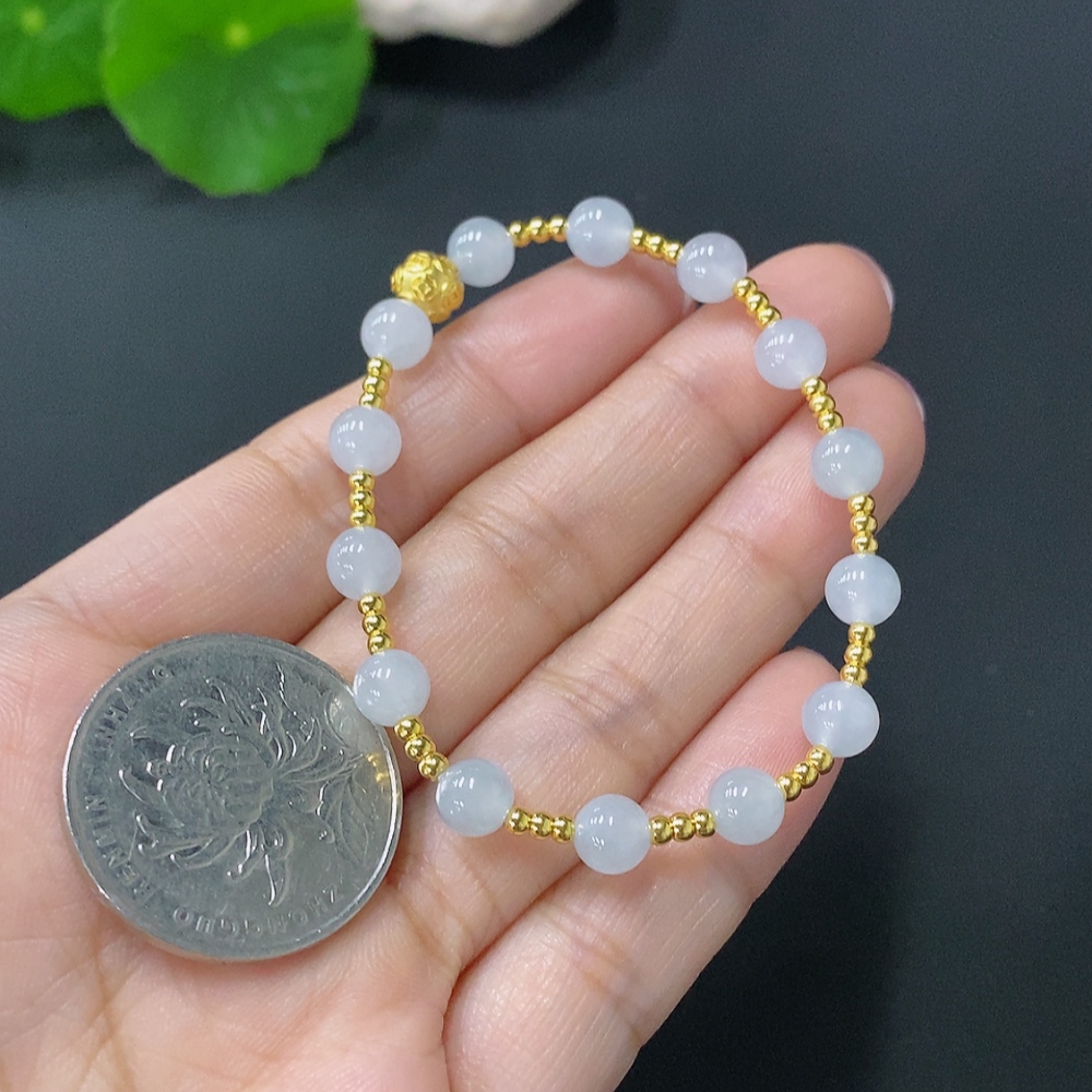 JadeiteInlaid Bracelet Approx. 5.8mm Au99% Total Weight Approx. 5.11g
