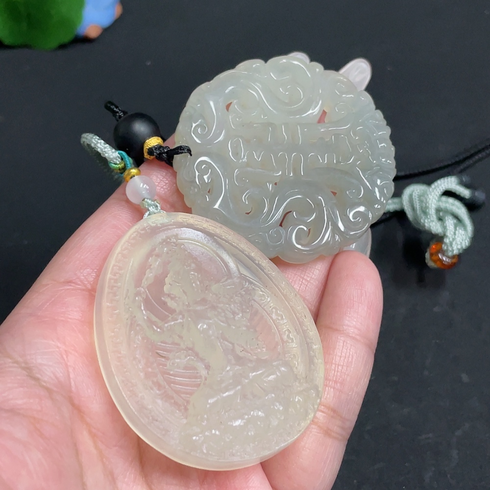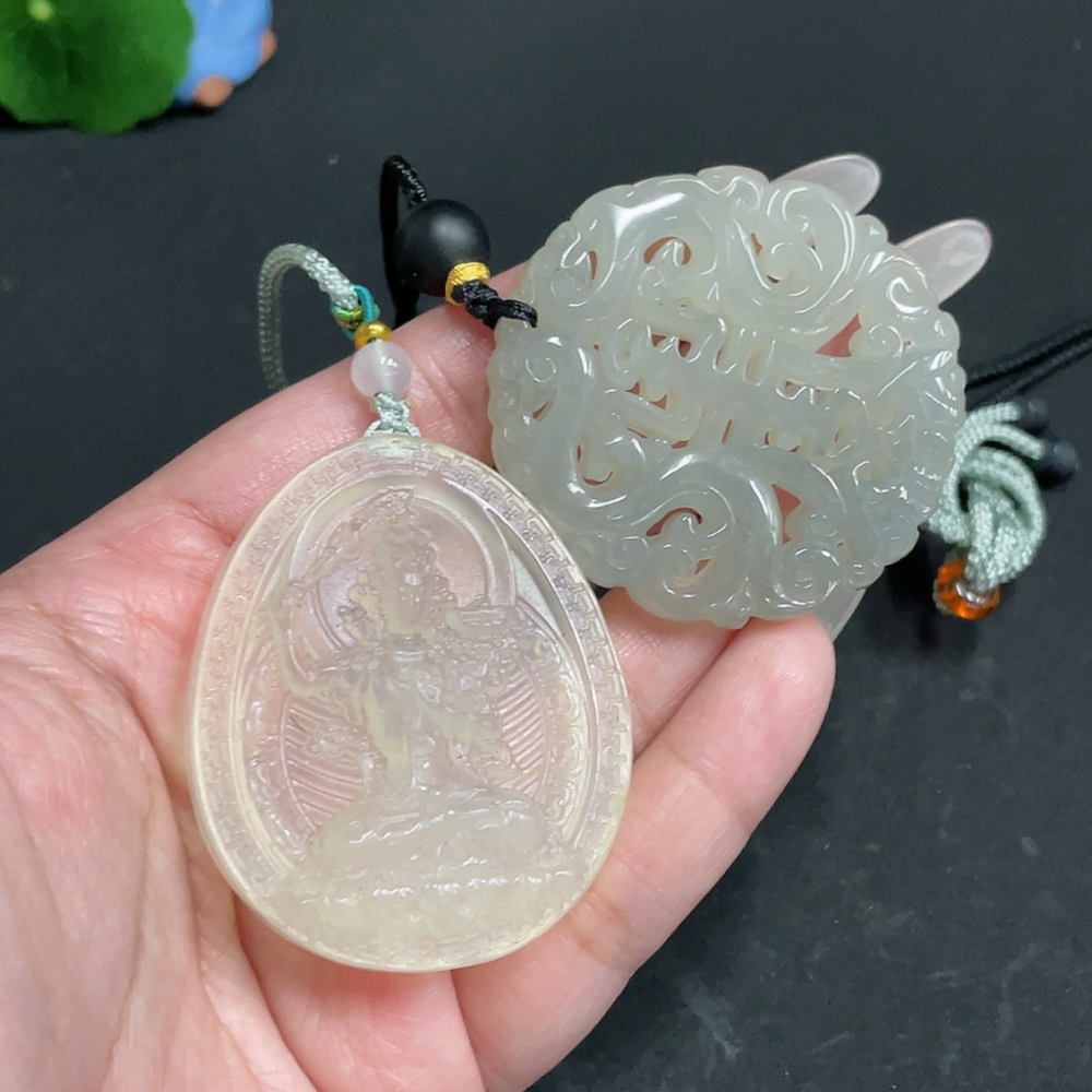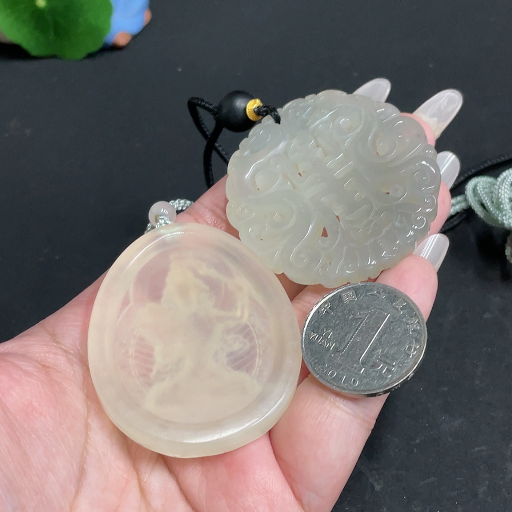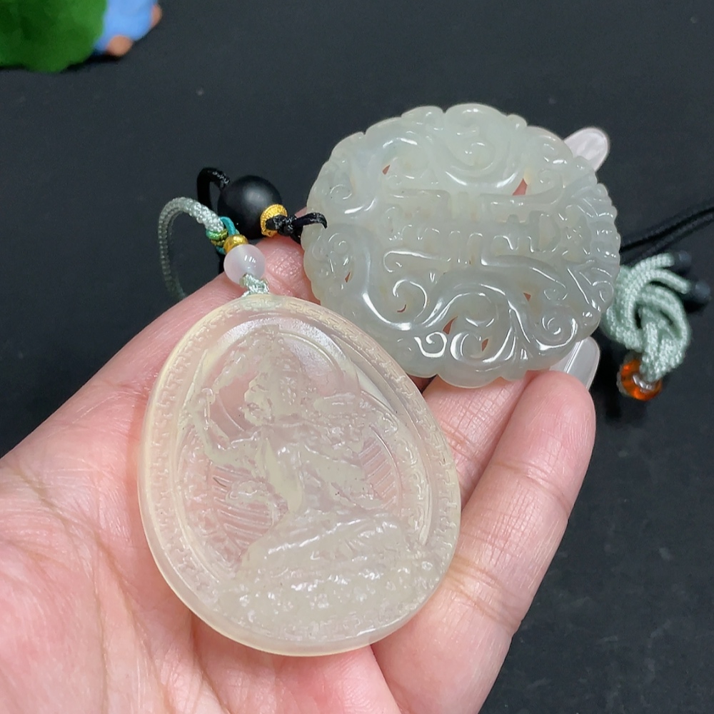Xiuyu (serpentine jade) pendant Guanyin antique-style piece total weight approx. [including rope] 56.3g