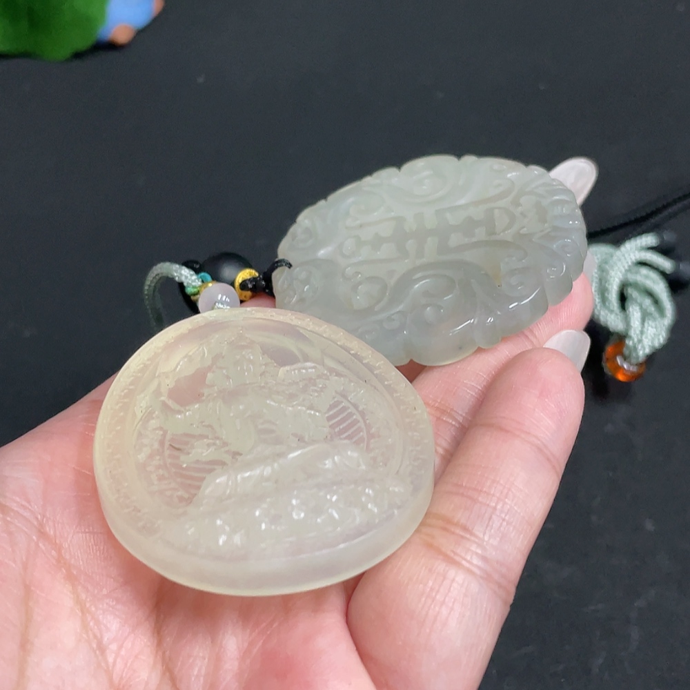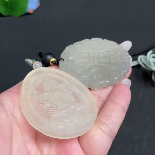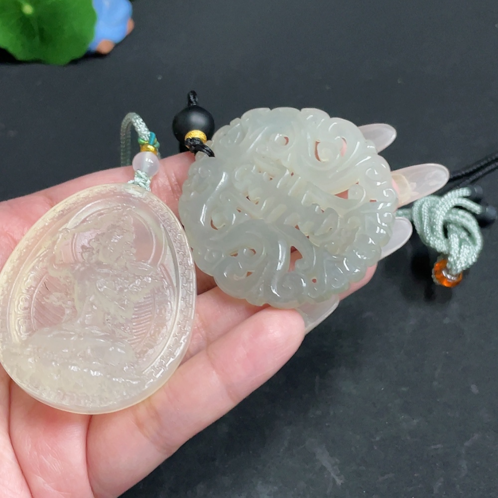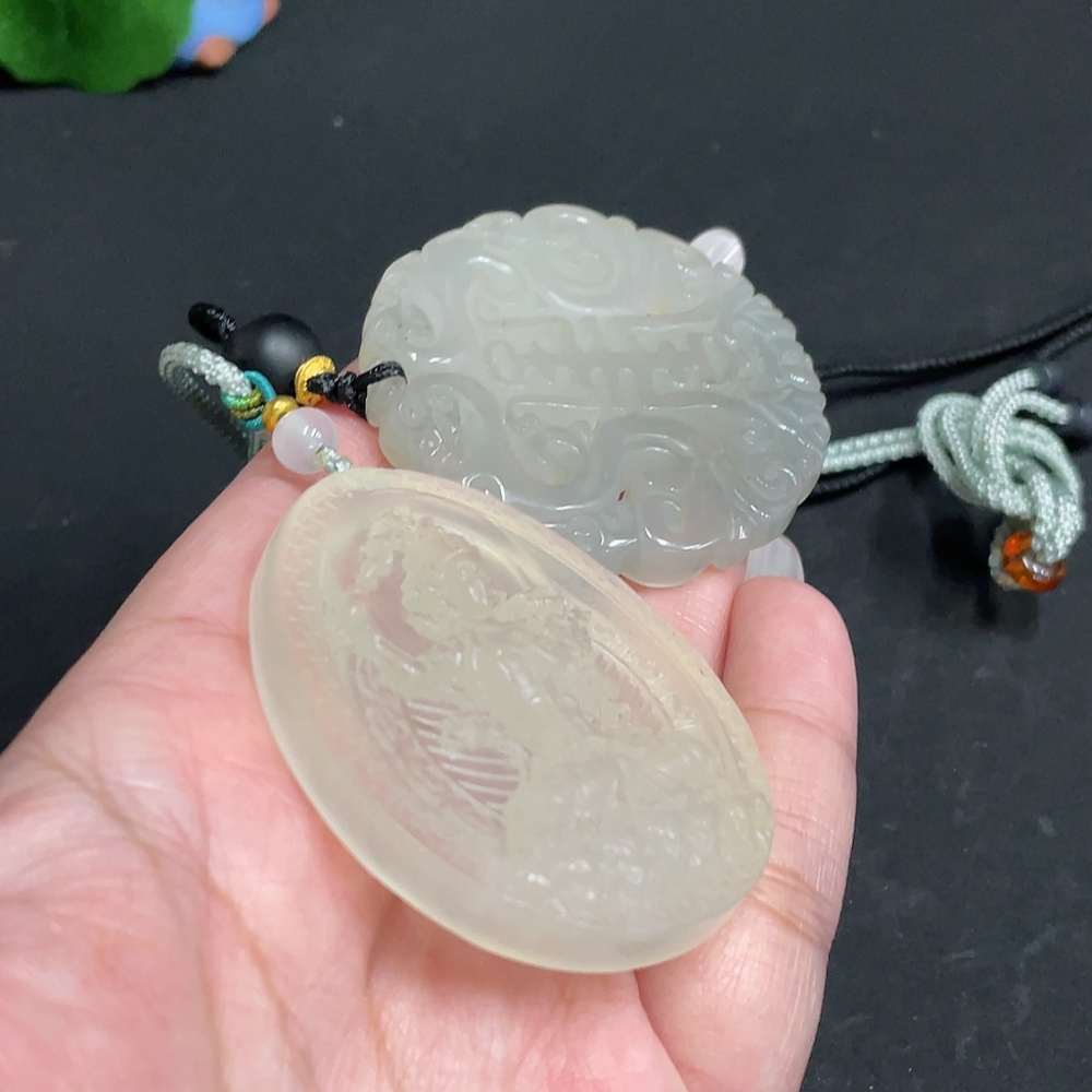 Xiuyu (serpentine jade) pendant Guanyin antique-style piece total weight approx. [including rope] 56.3g