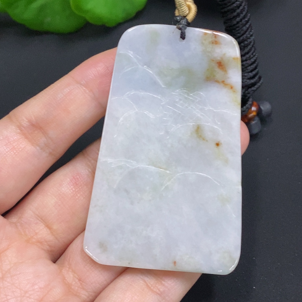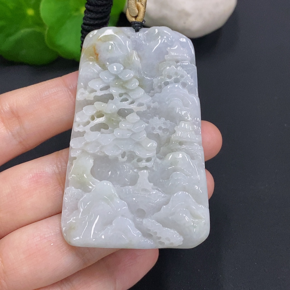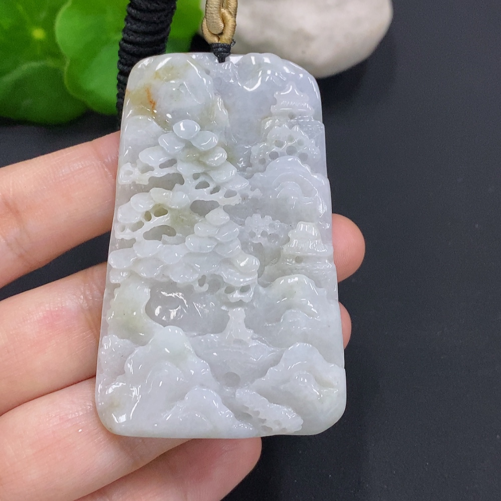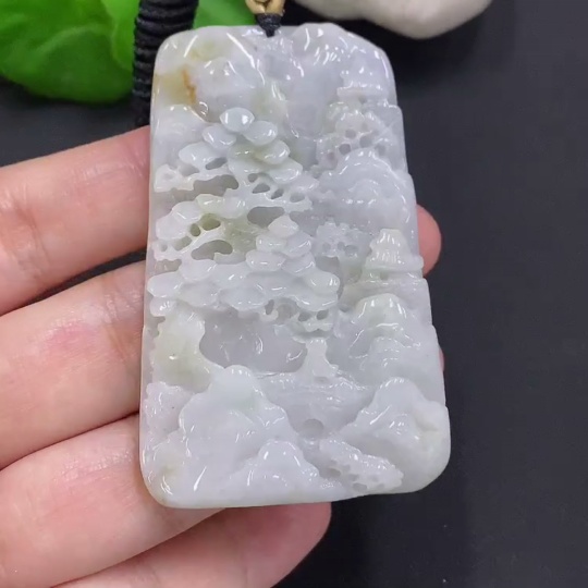 Jadeite landscape pendant with cord, total weight approximately 45.5 grams