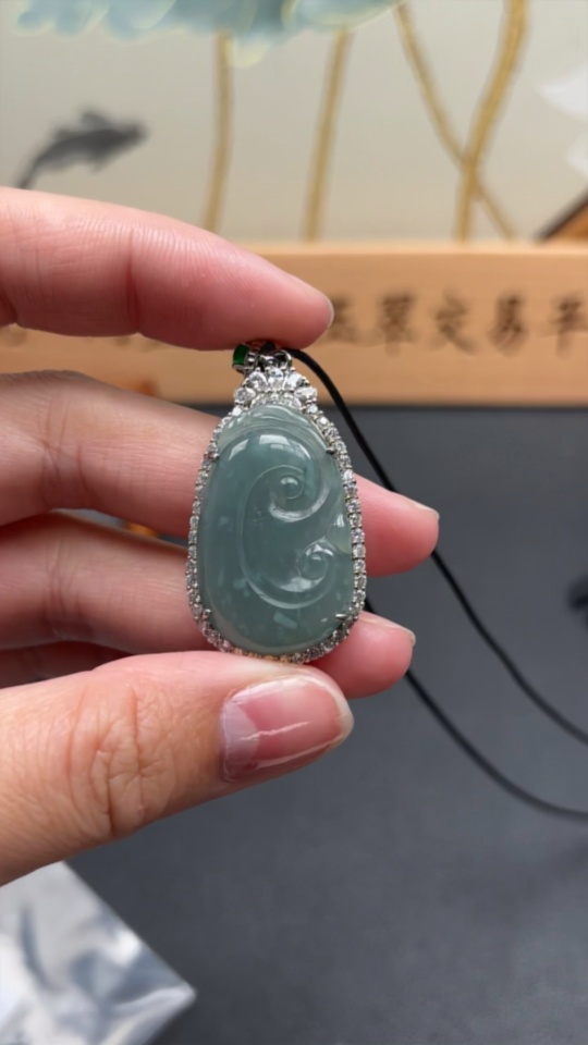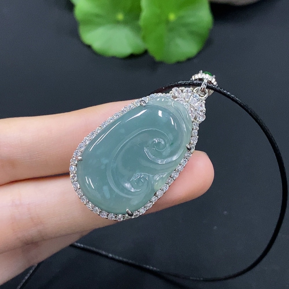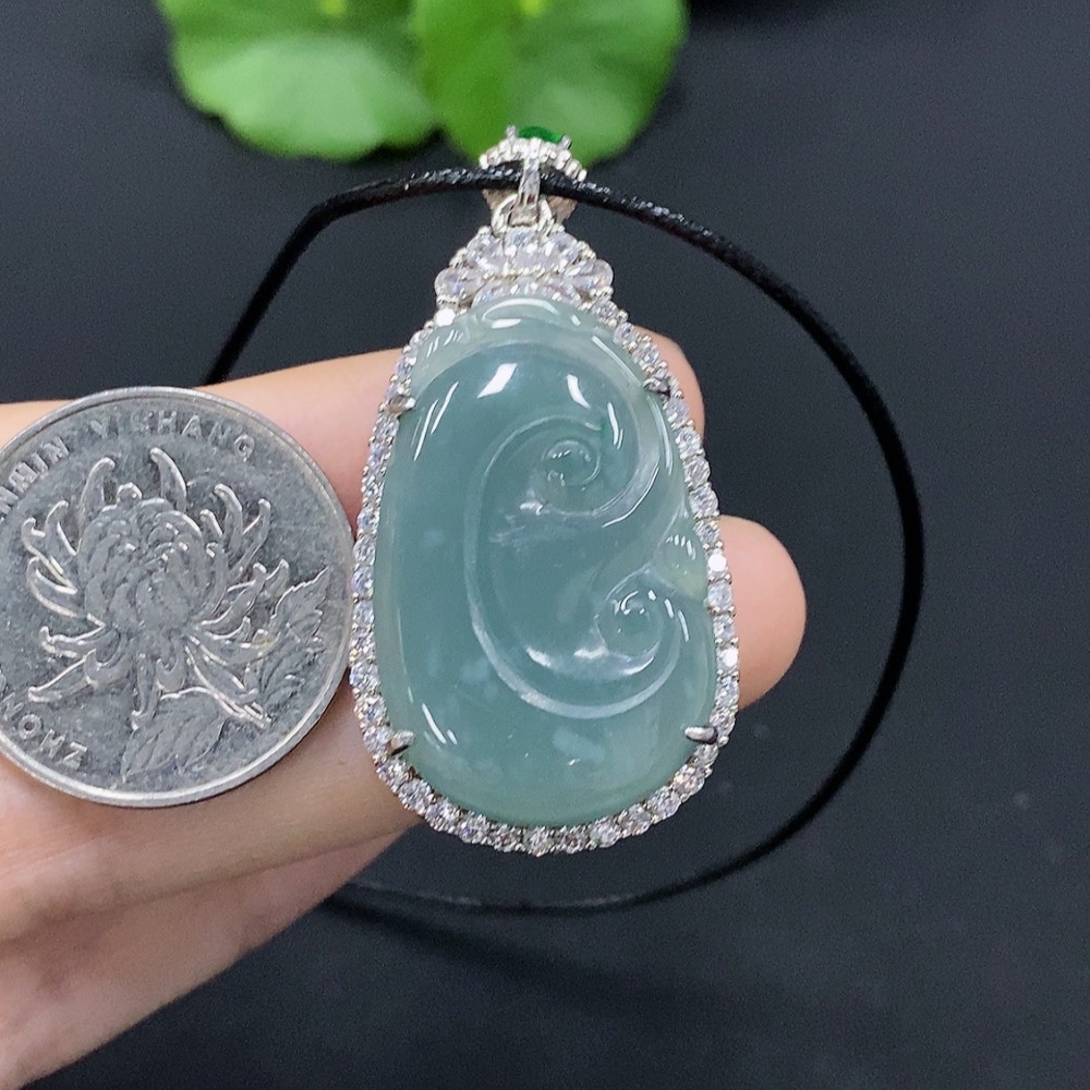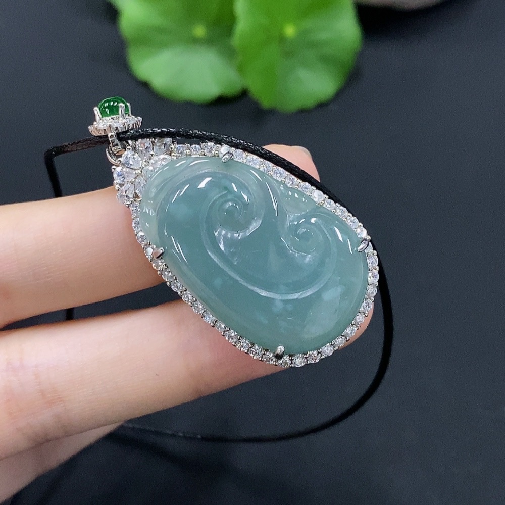 Jadeite Ruyi Inlaid Pendant Non-Gold Inlaid With Non-Grade A Beads Total Weight Approx. 10.07g