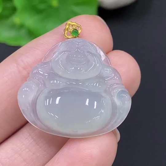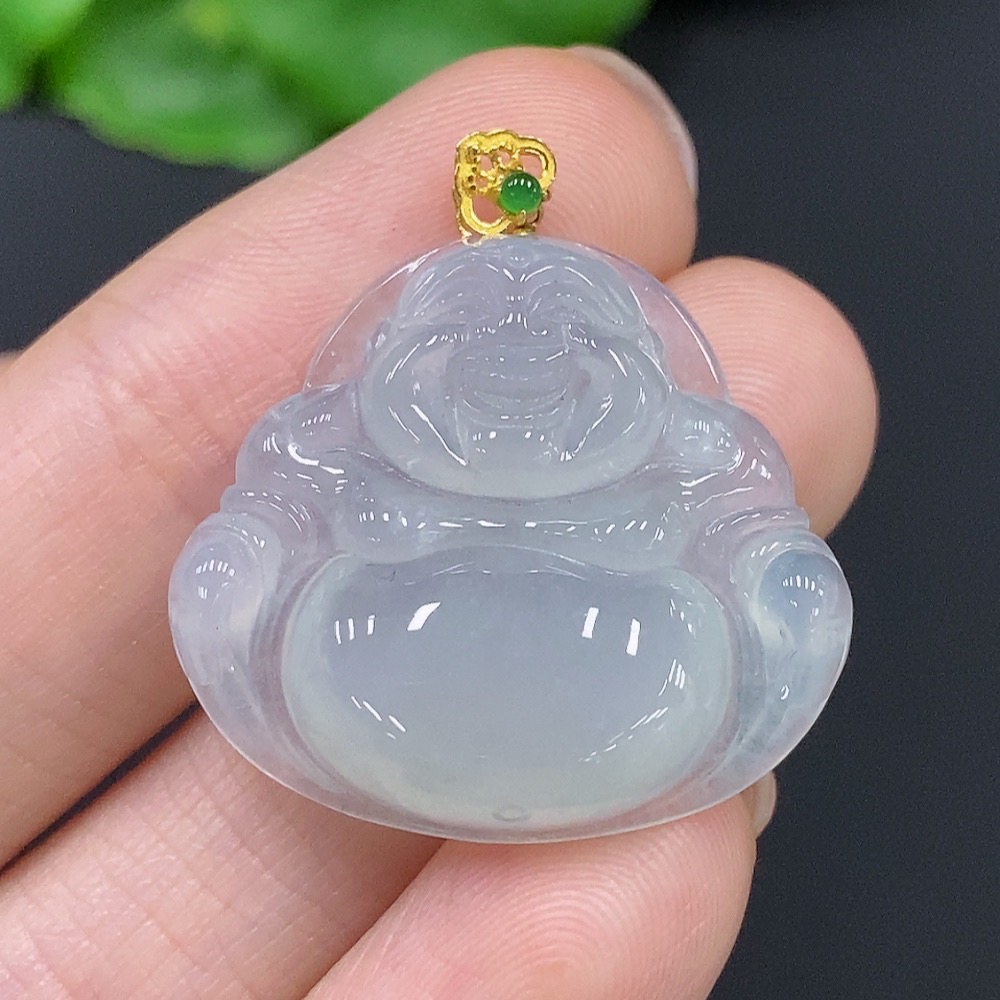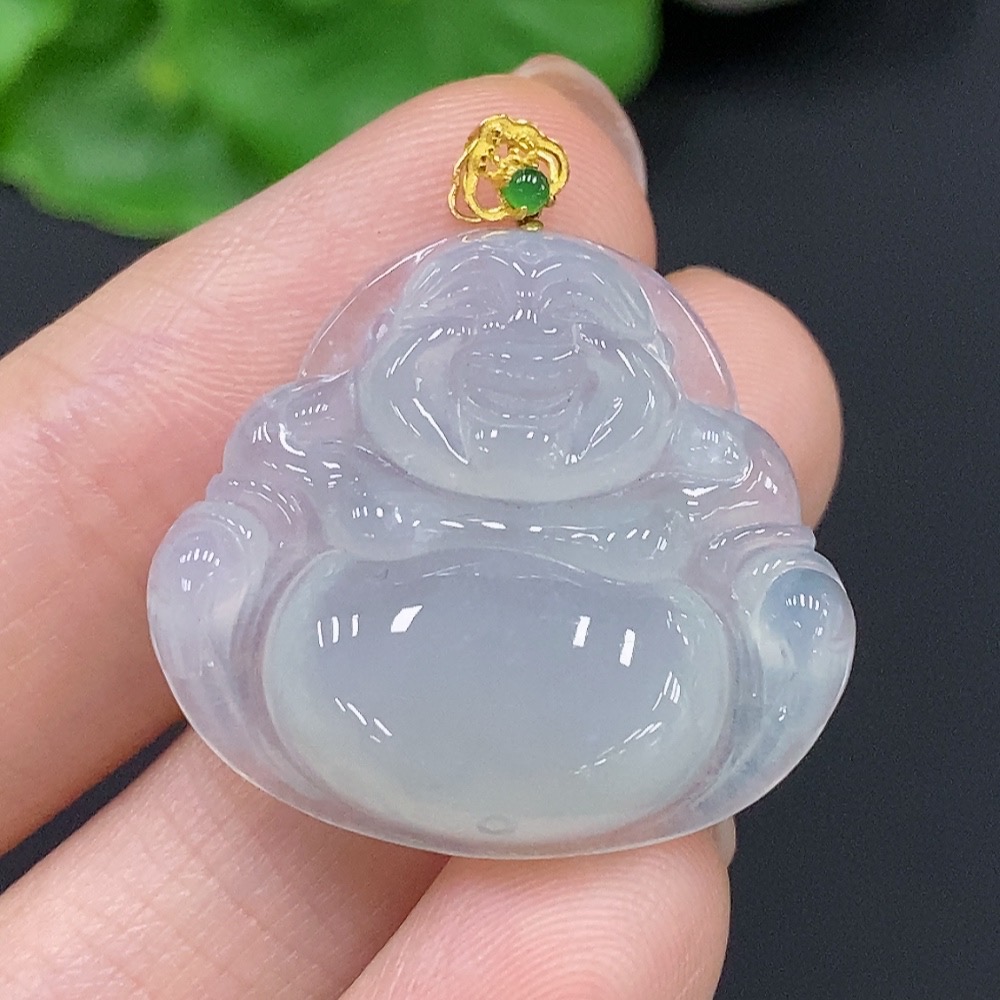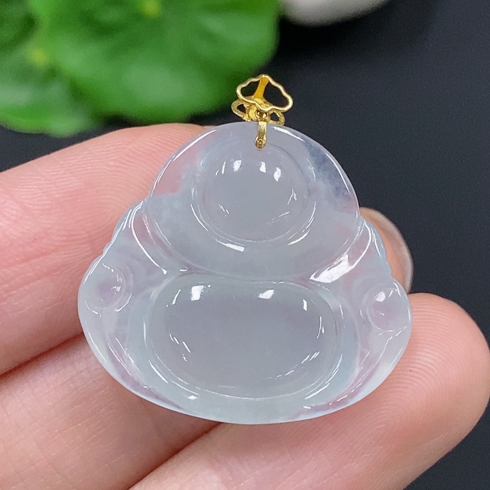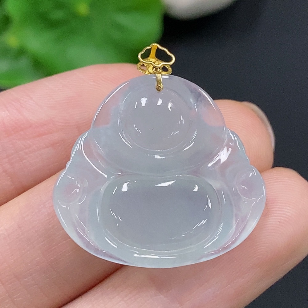 JadeiteBuddha Pendant with 18K Gold Clasp, Total Weight Approx. 5.5g