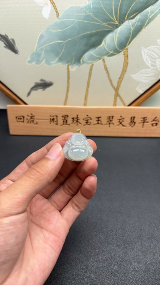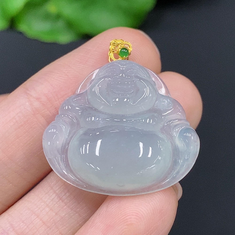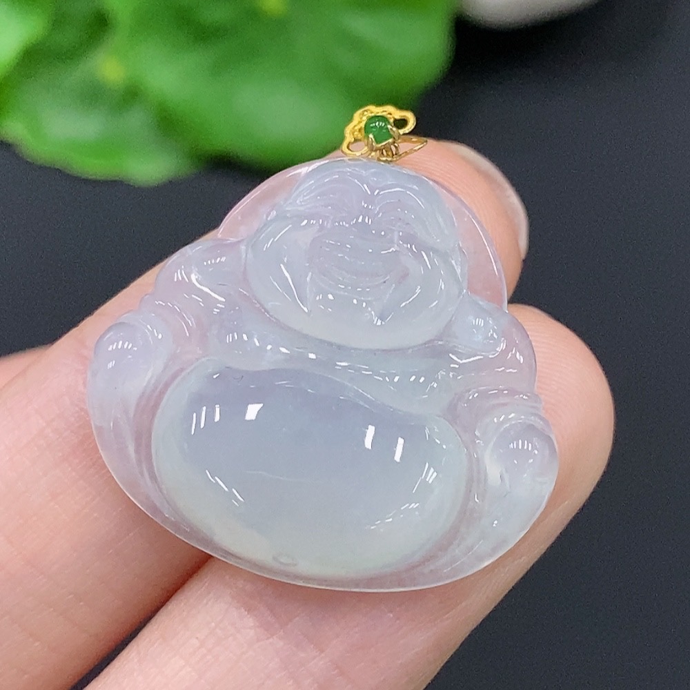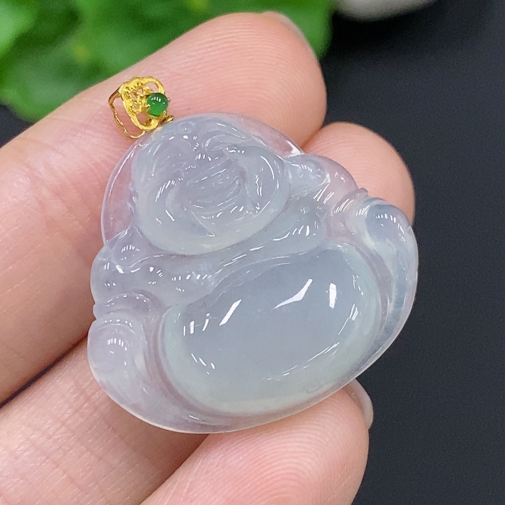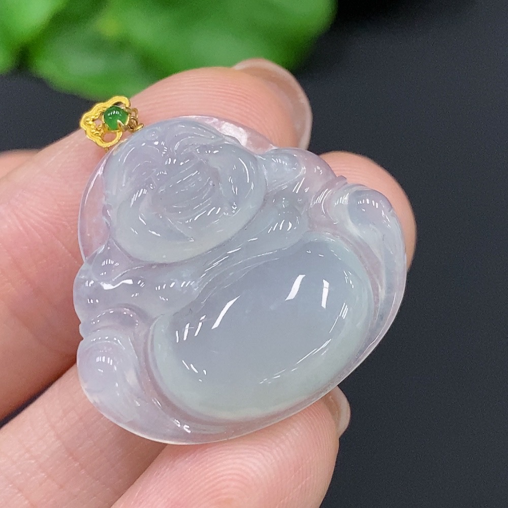 JadeiteBuddha Pendant with 18K Gold Clasp, Total Weight Approx. 5.5g