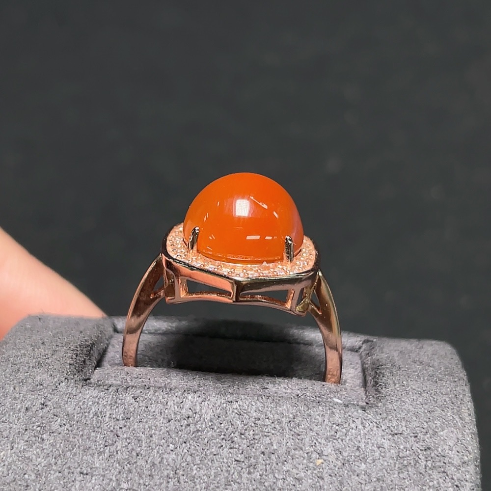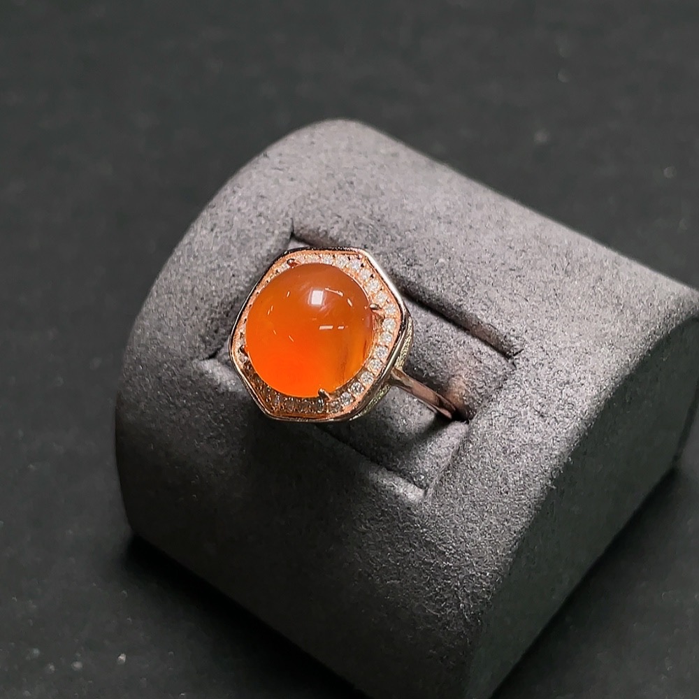 South Red Agate Ring, Non-Gold Setting, Adjustable, Total Weight Approx. 3.7g, Size About 7.6mm