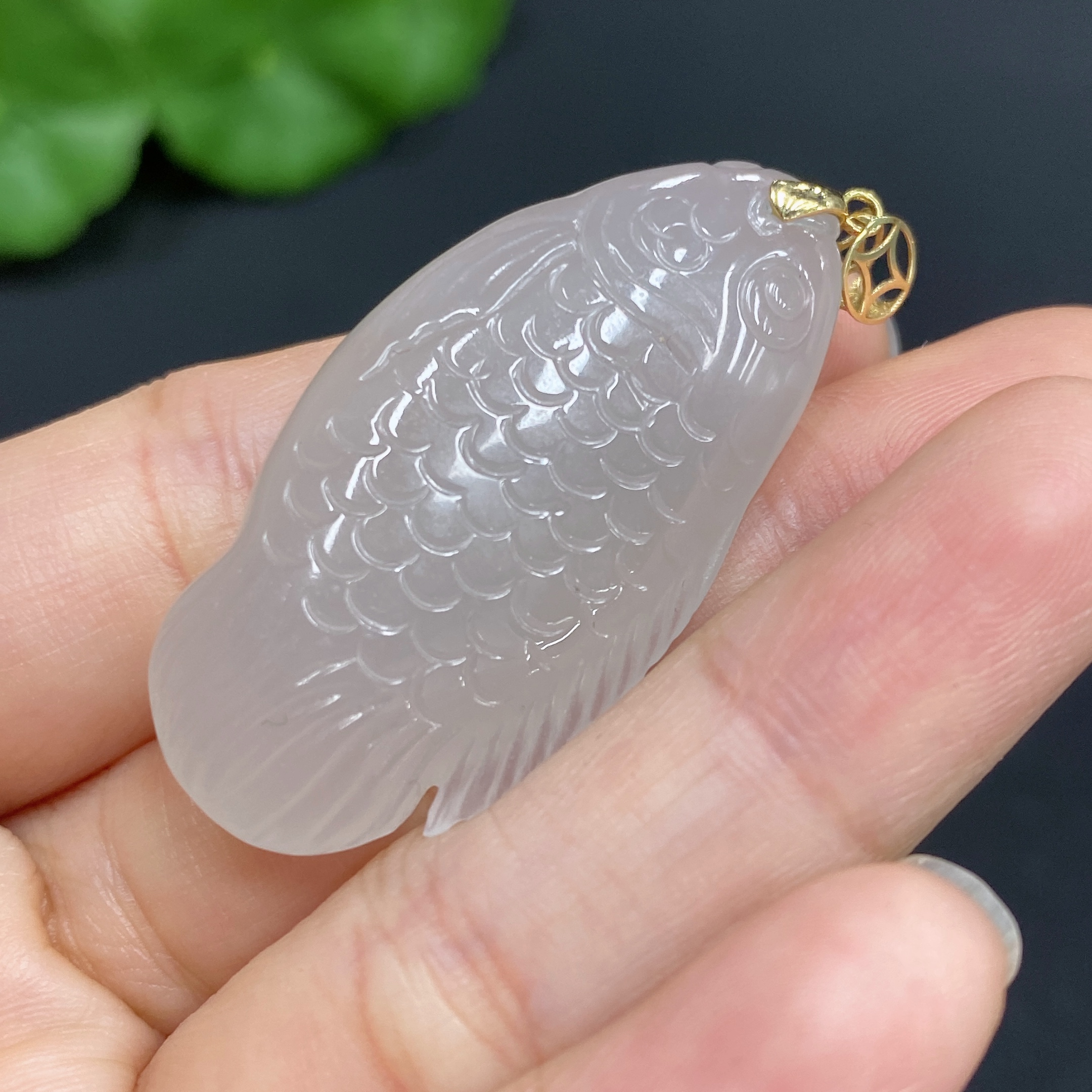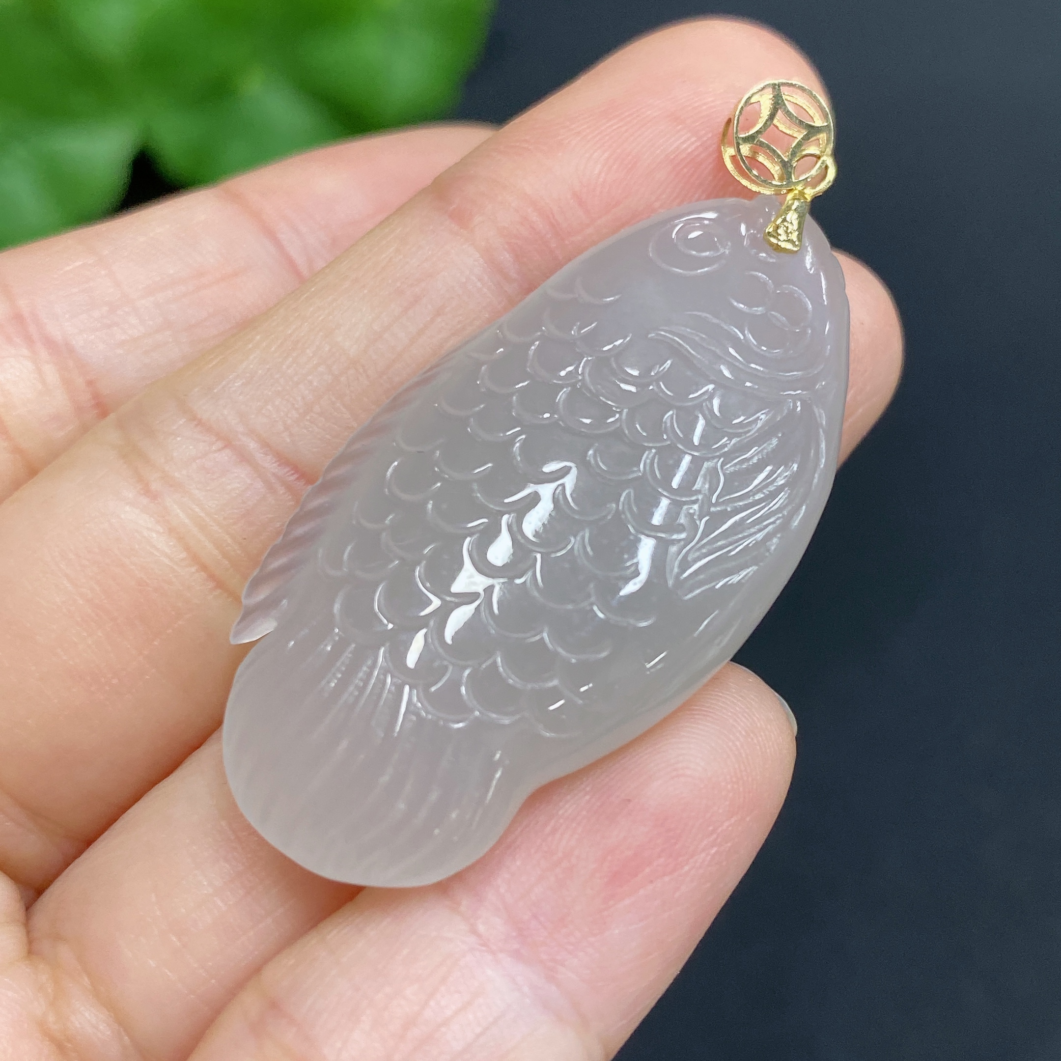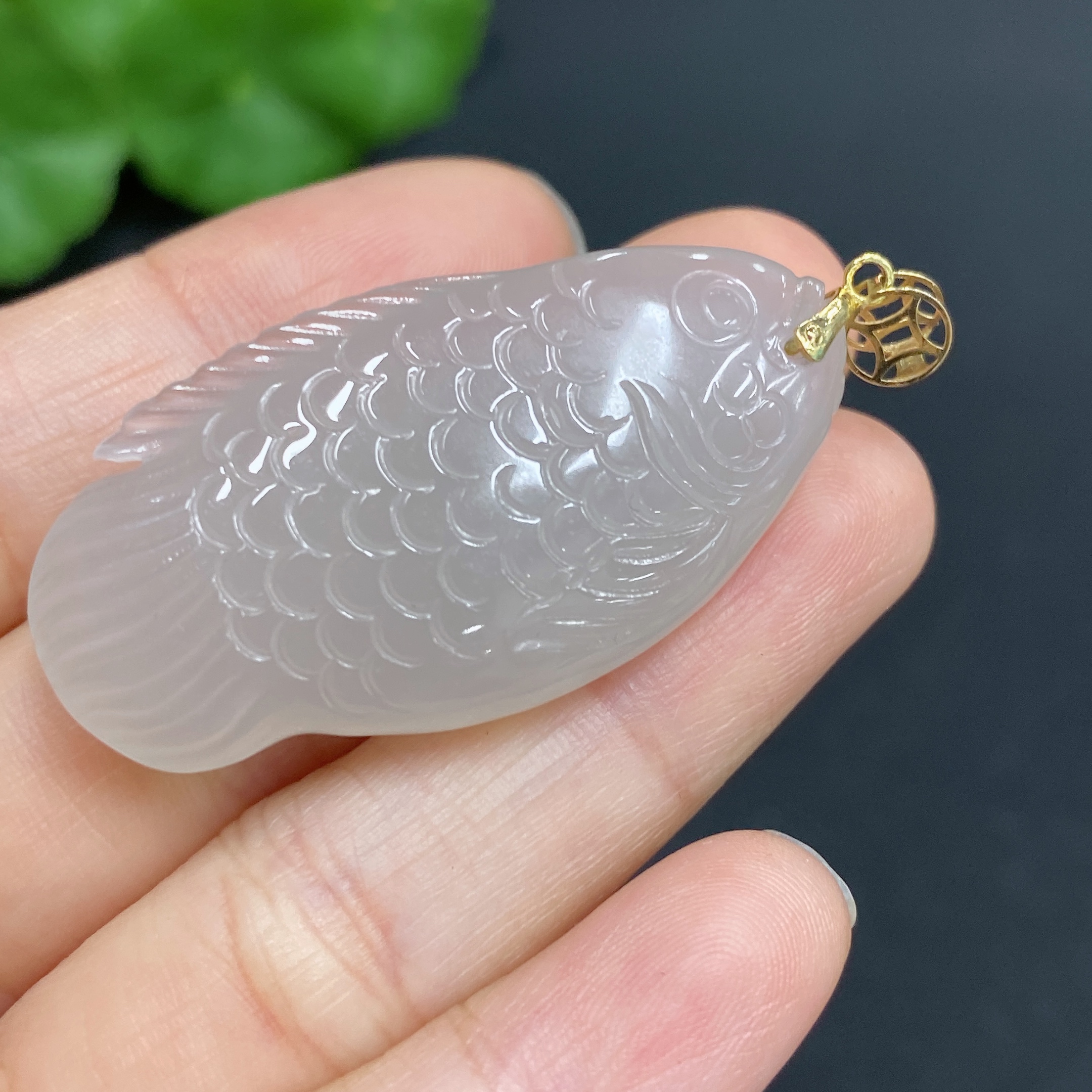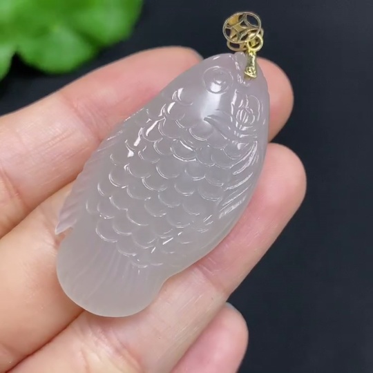Hetian Jade Pendant Fish with 18K Gold Clasp Total Weight Approx. 10.7g