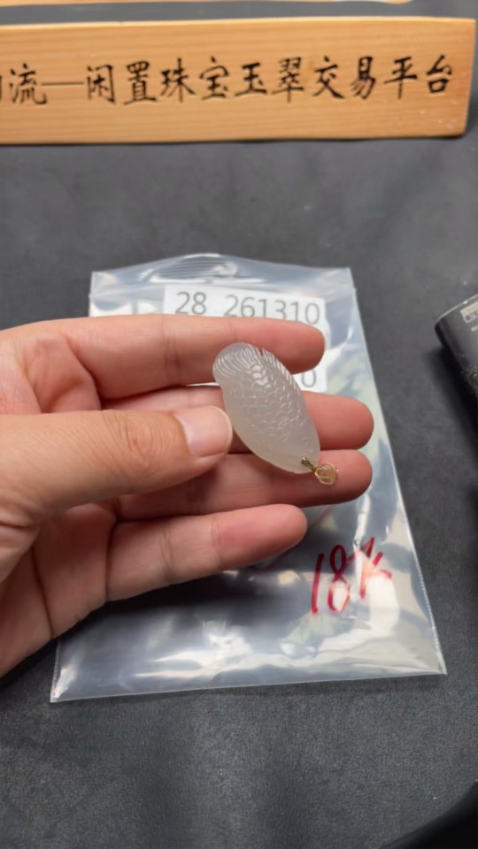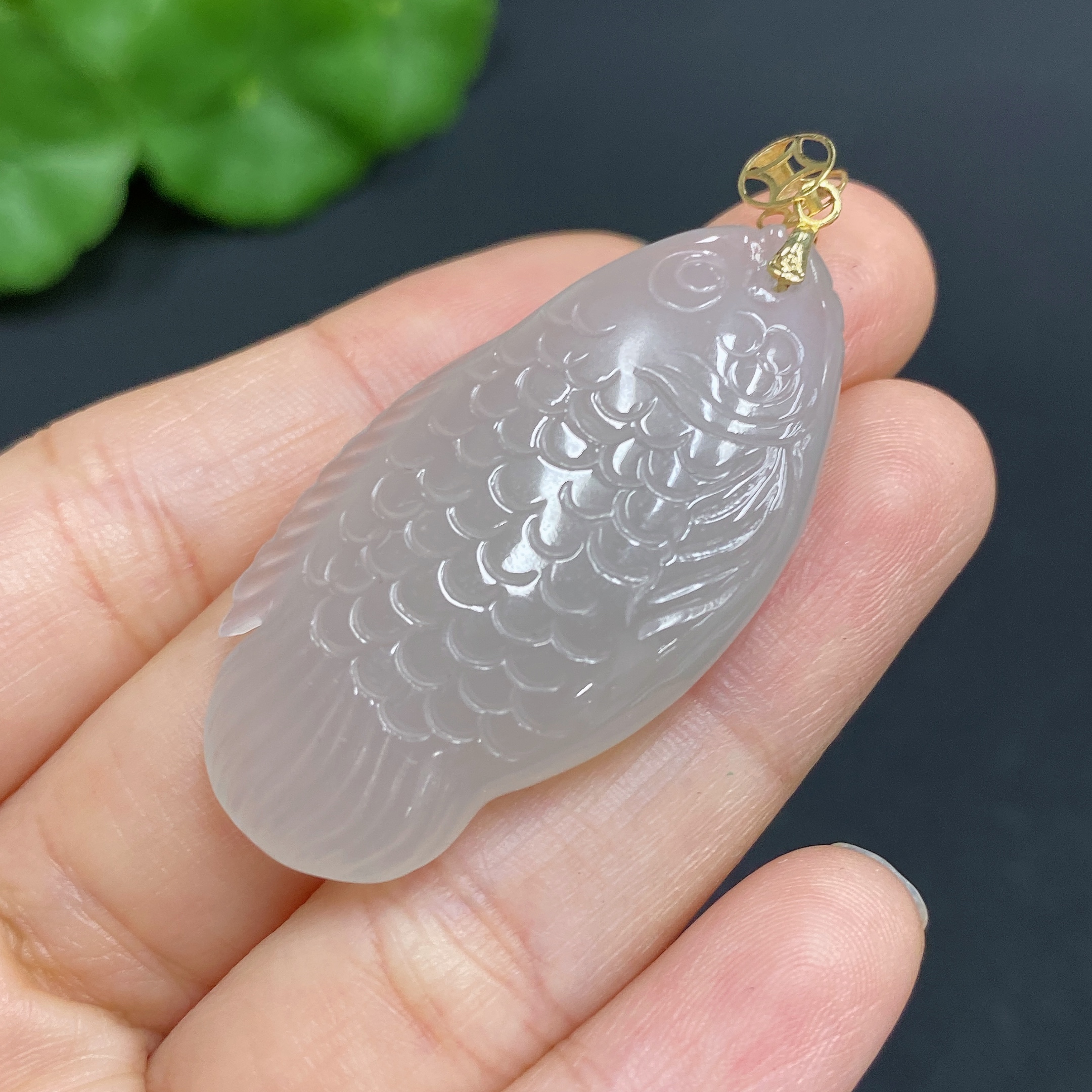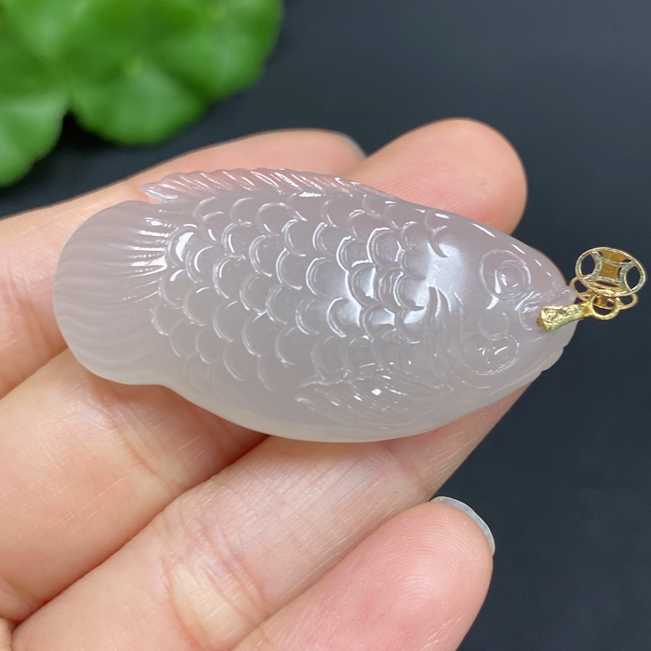 Hetian Jade Pendant Fish with 18K Gold Clasp Total Weight Approx. 10.7g