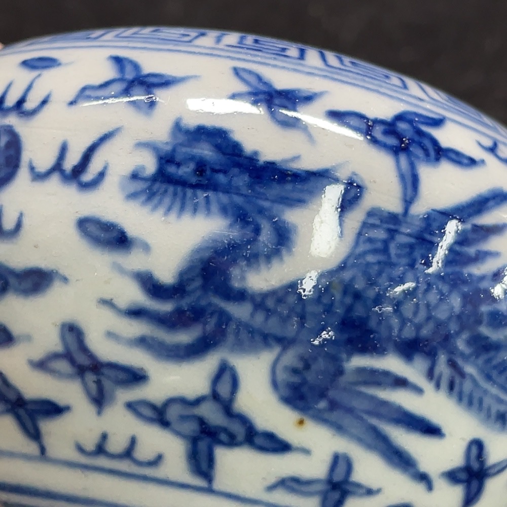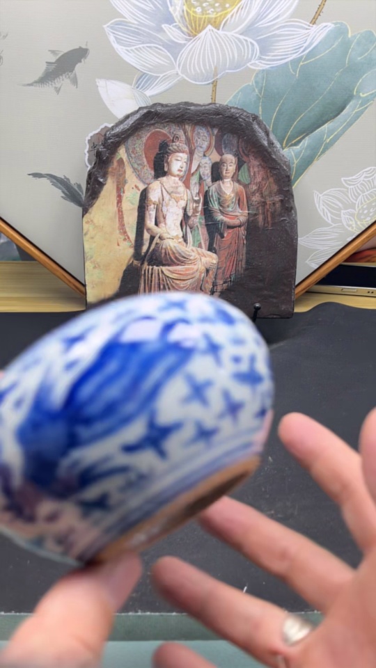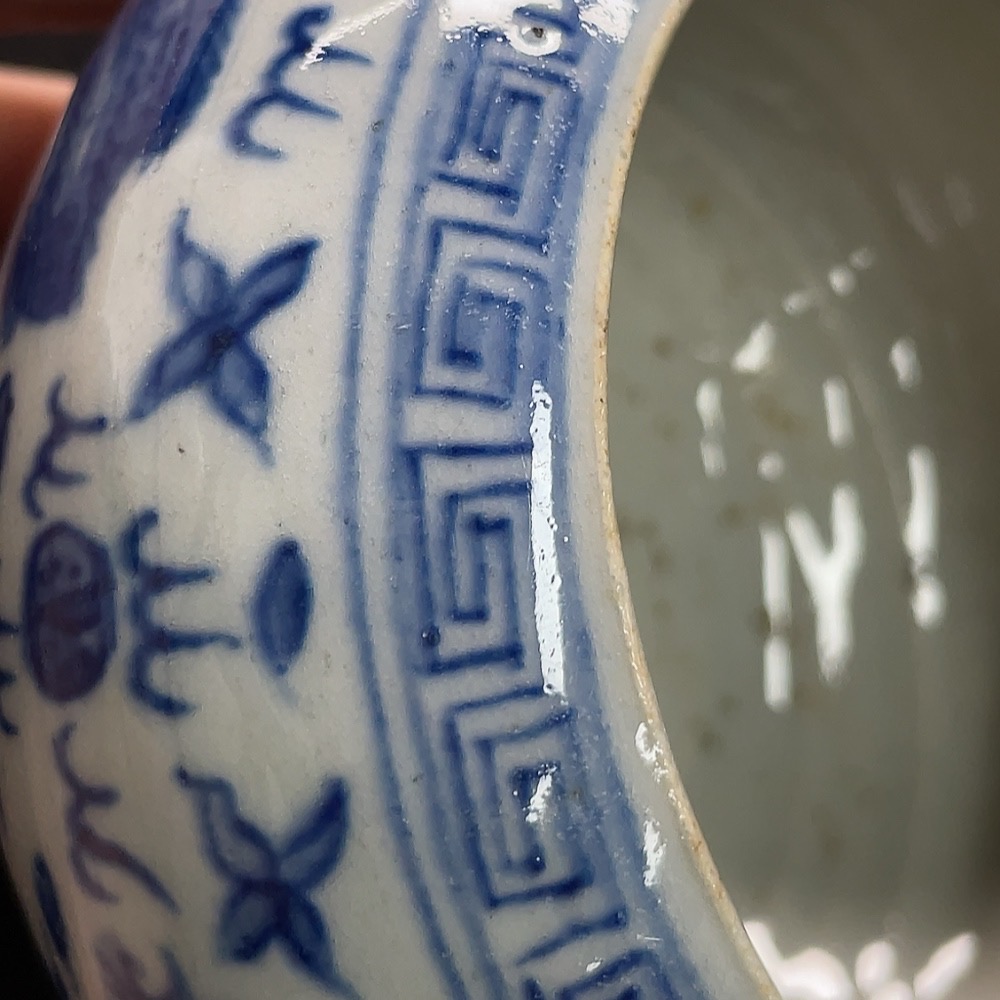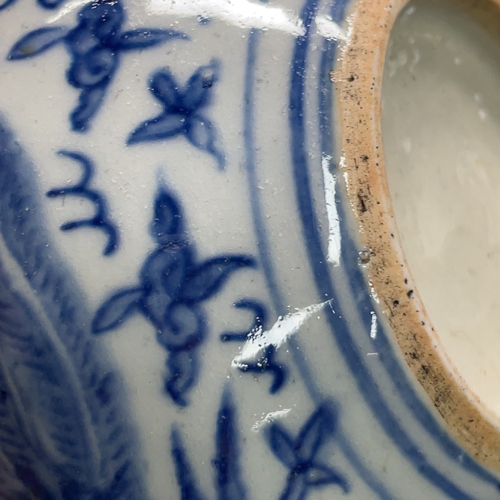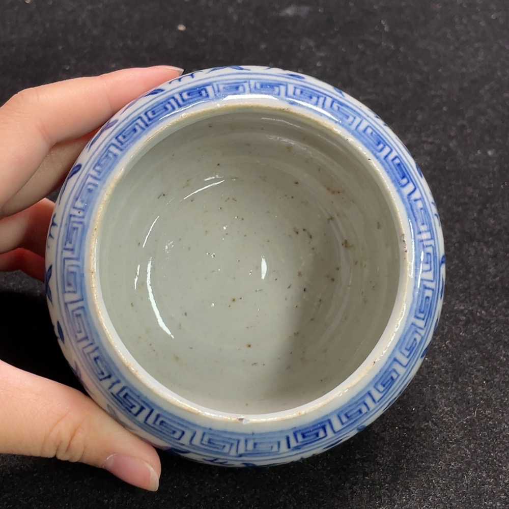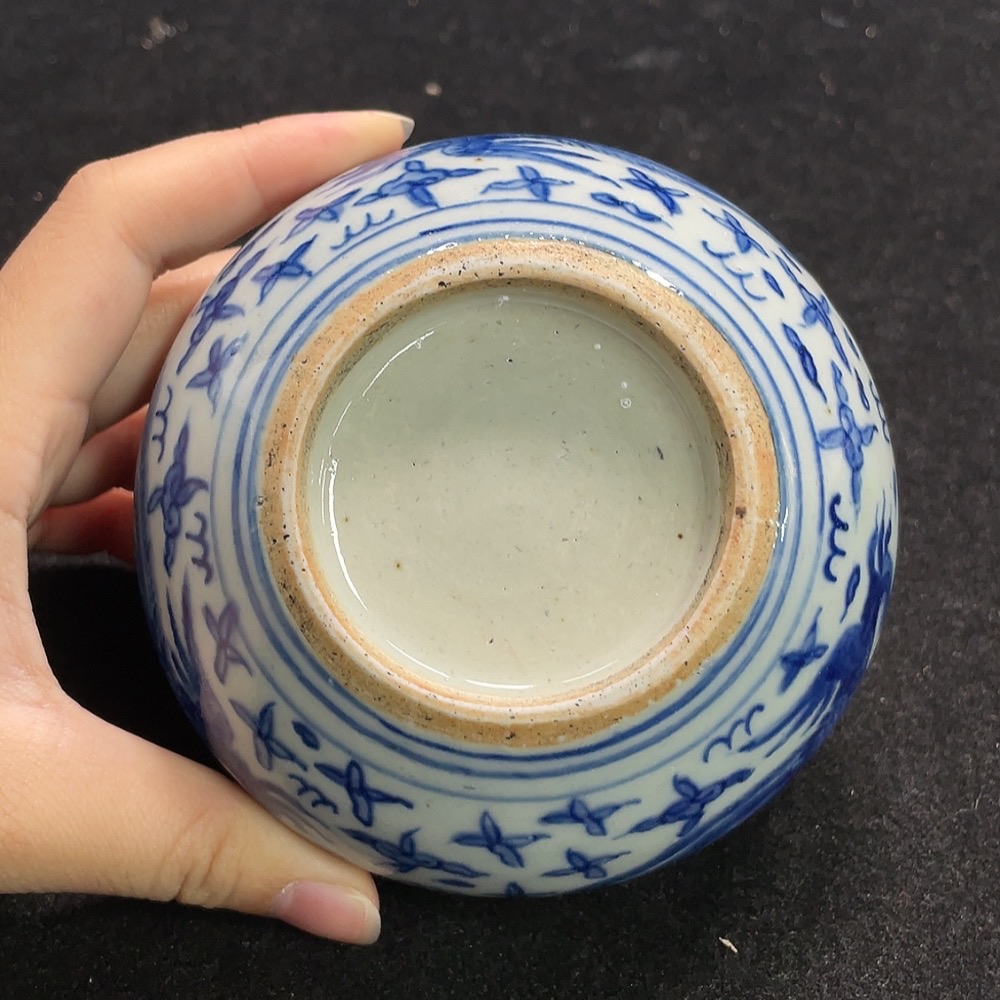 Ceramic censer with blue floral pattern, intact but authenticity uncertain (subject to the actual item)