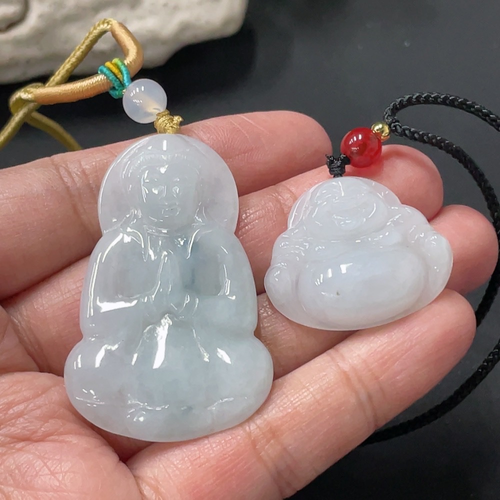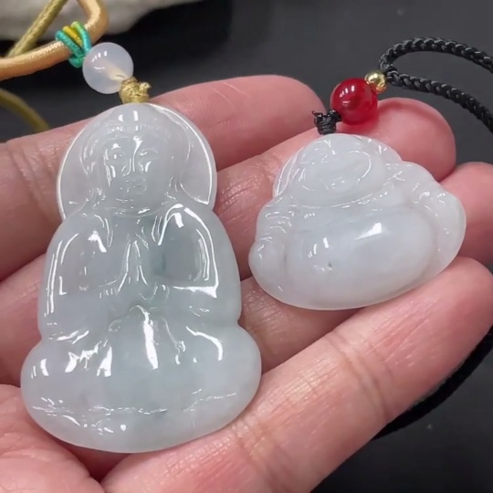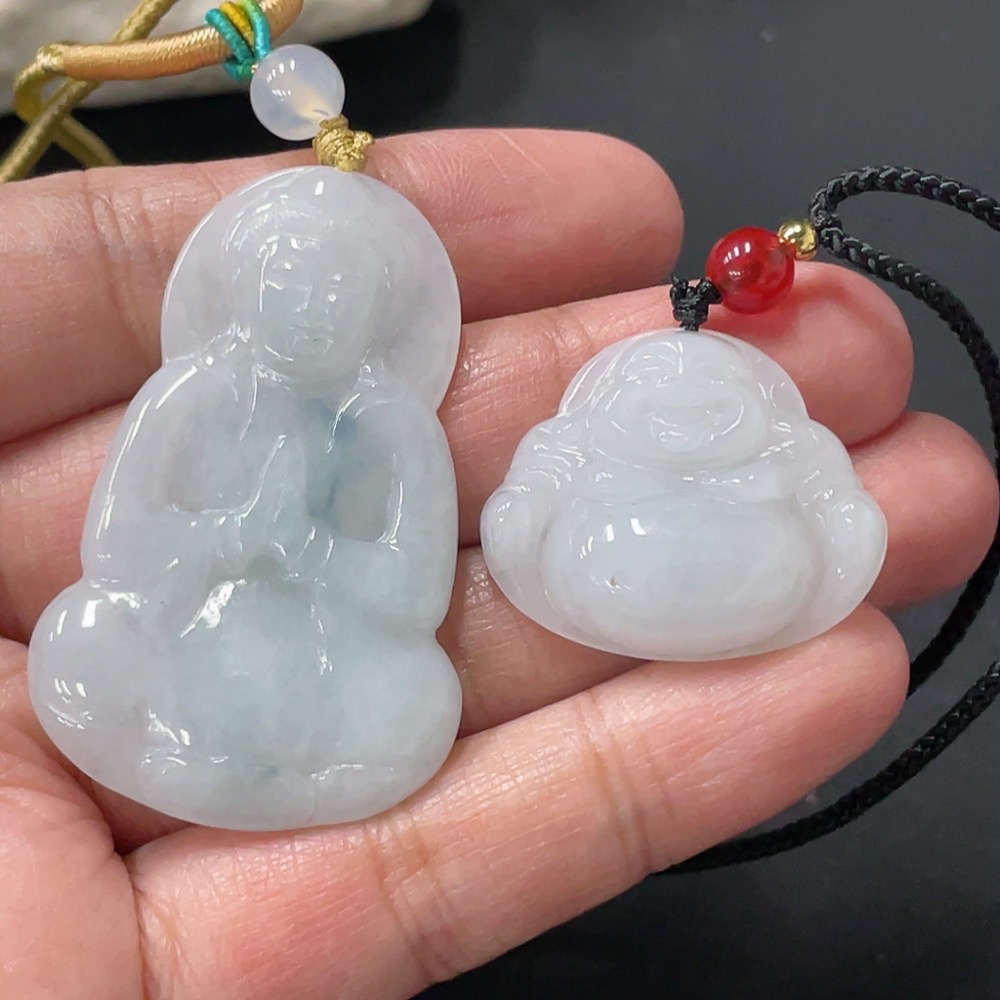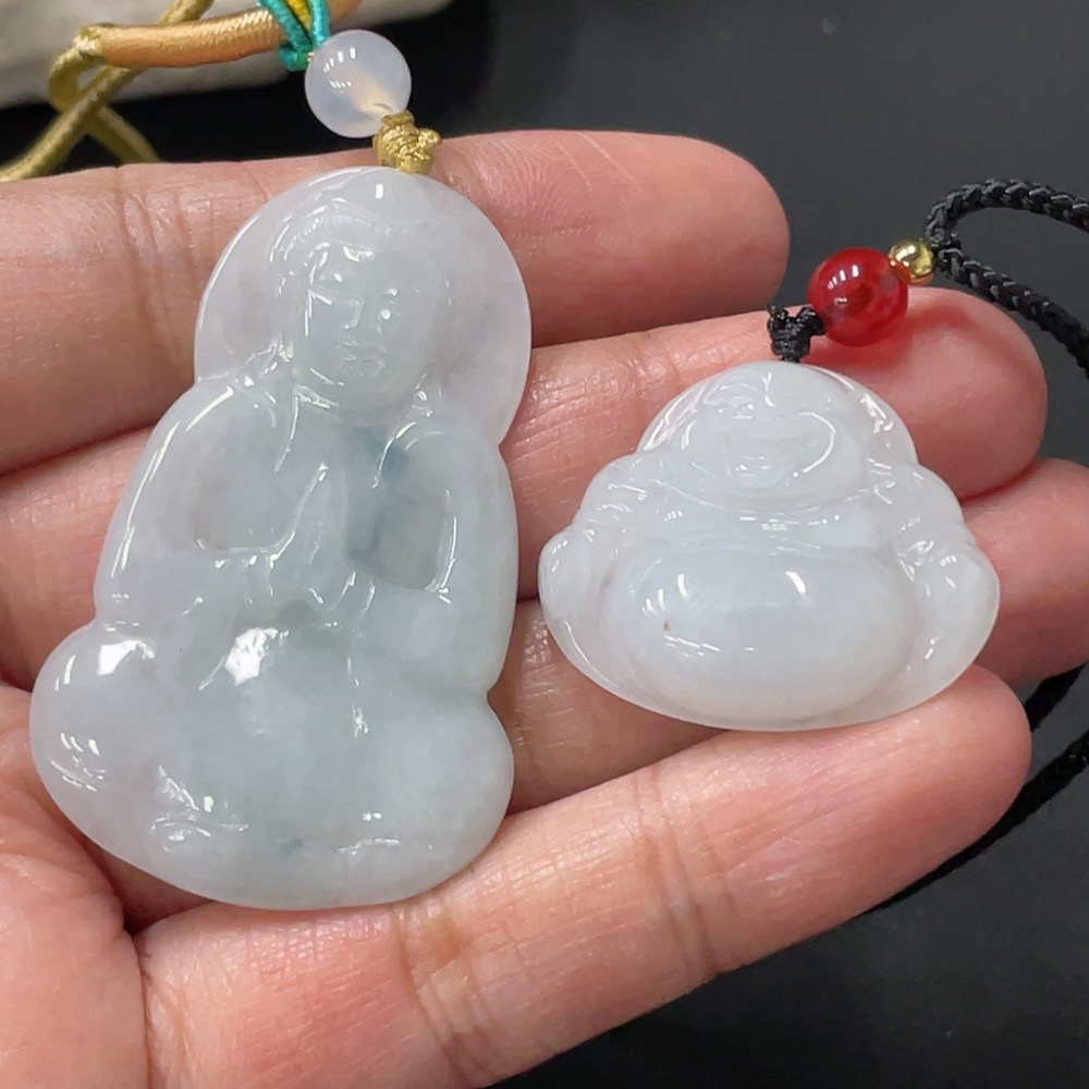 Jadeite Pendant Guanyin Buddha with Non-Grade A Beads