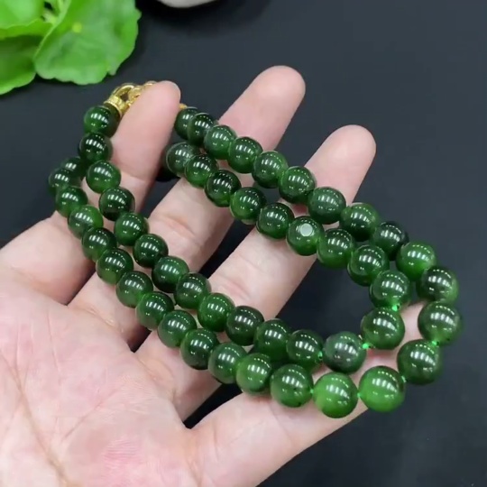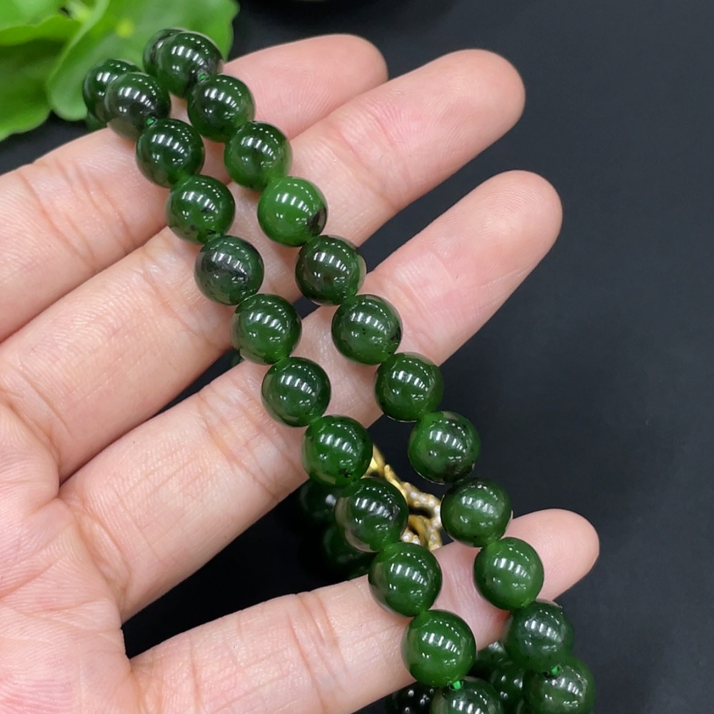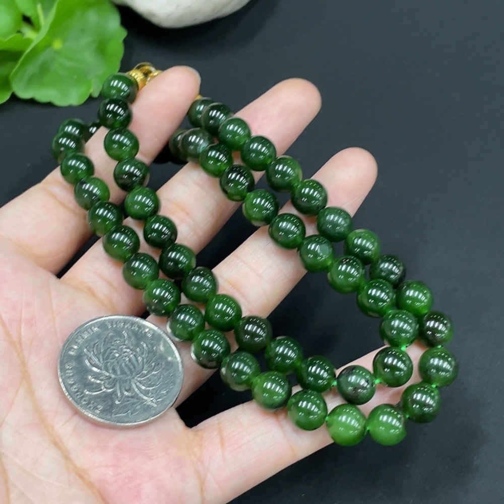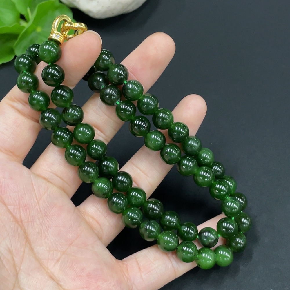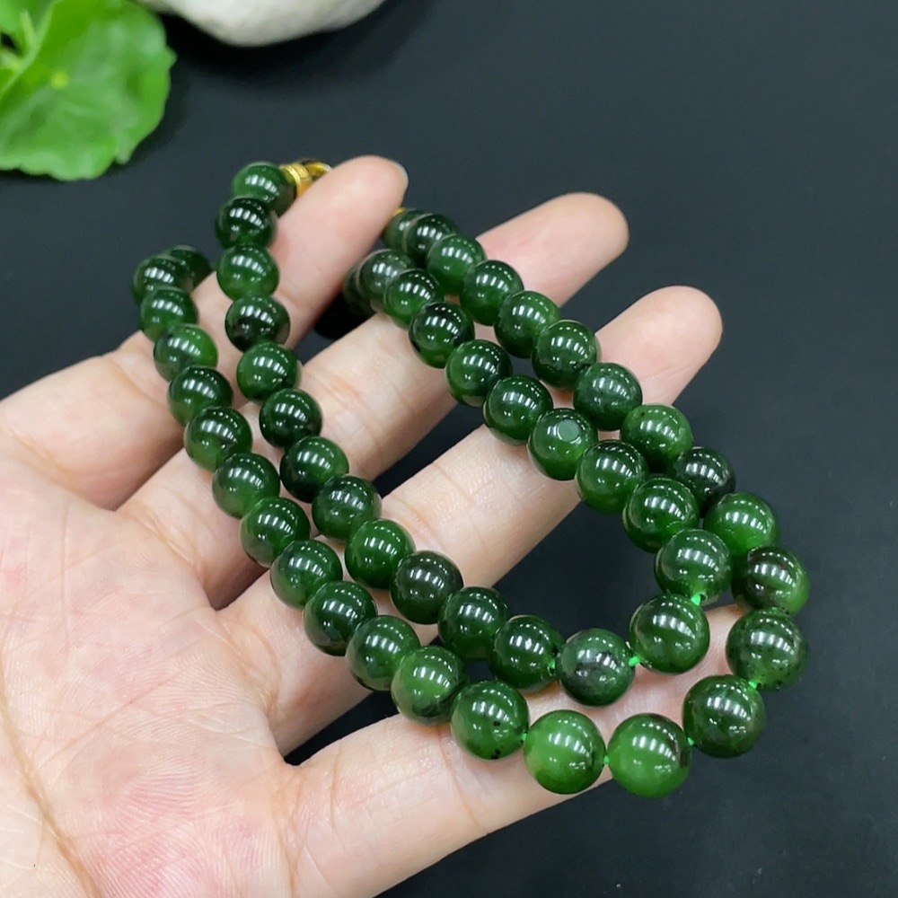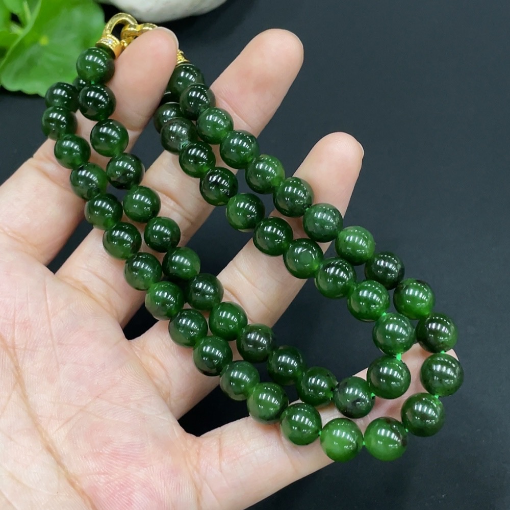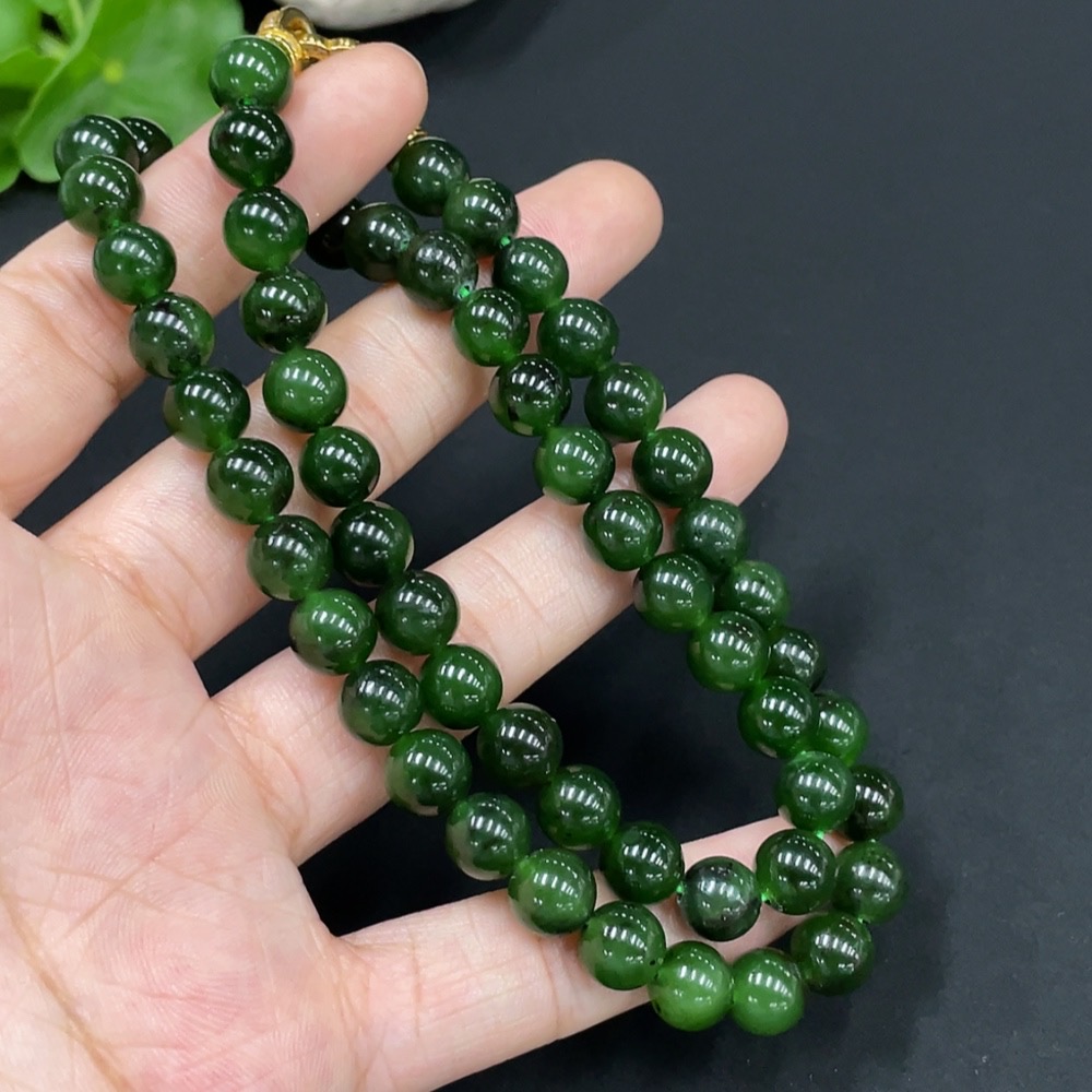 Hetian Jade Bead Necklace Approx. 7.8mm Non-Gold Total Weight Approx. 46.2g