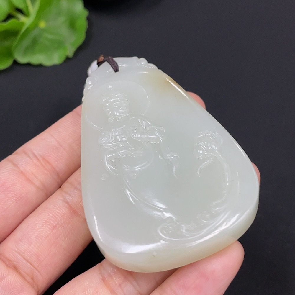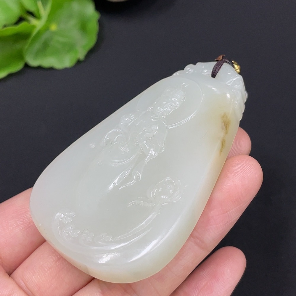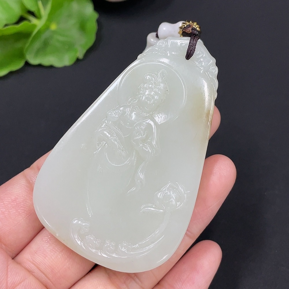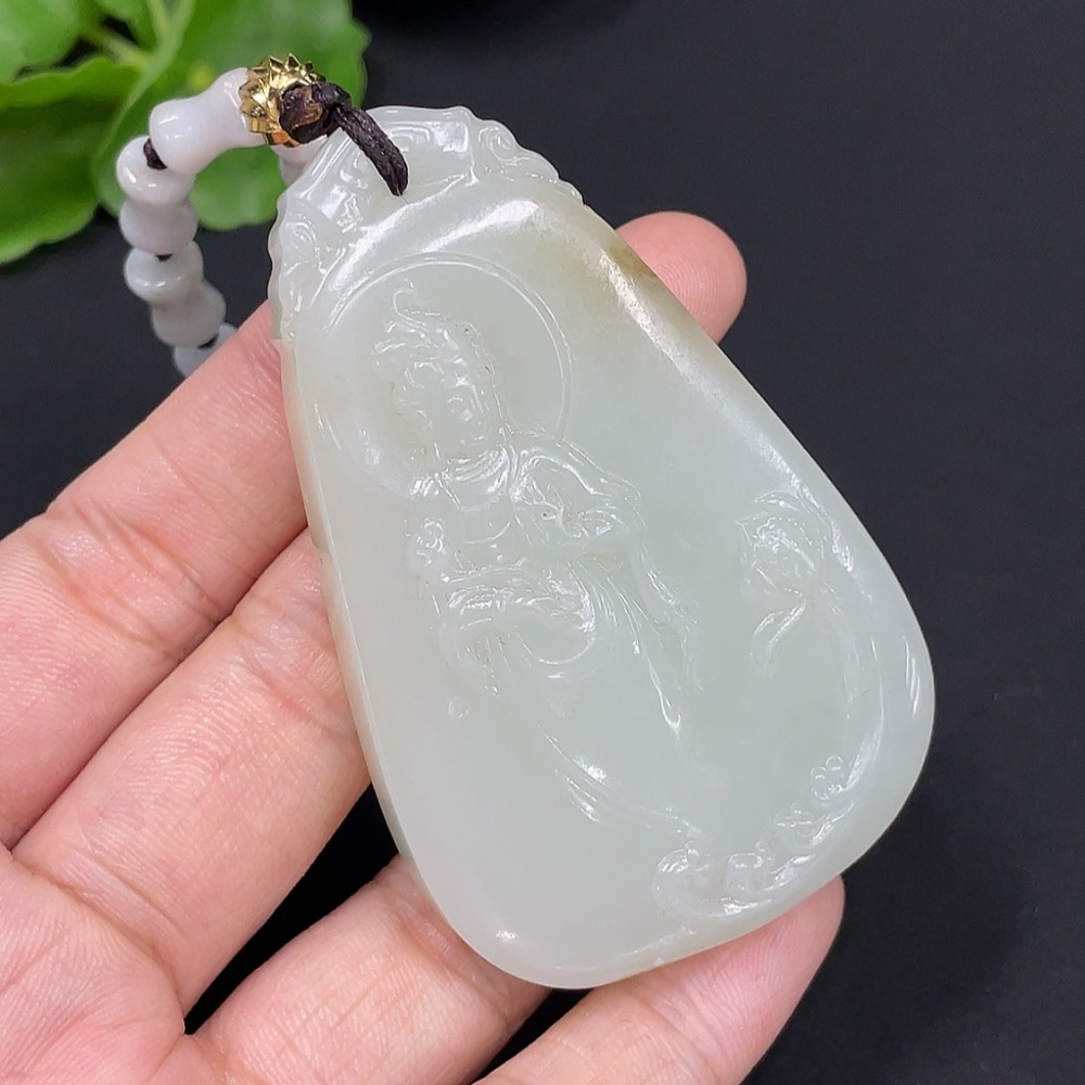 Hetian Jade Pendant Guanyin with Non-Hetian Jade Chain Non-Gold Total Weight Approx. (Including Chain) 83.7g