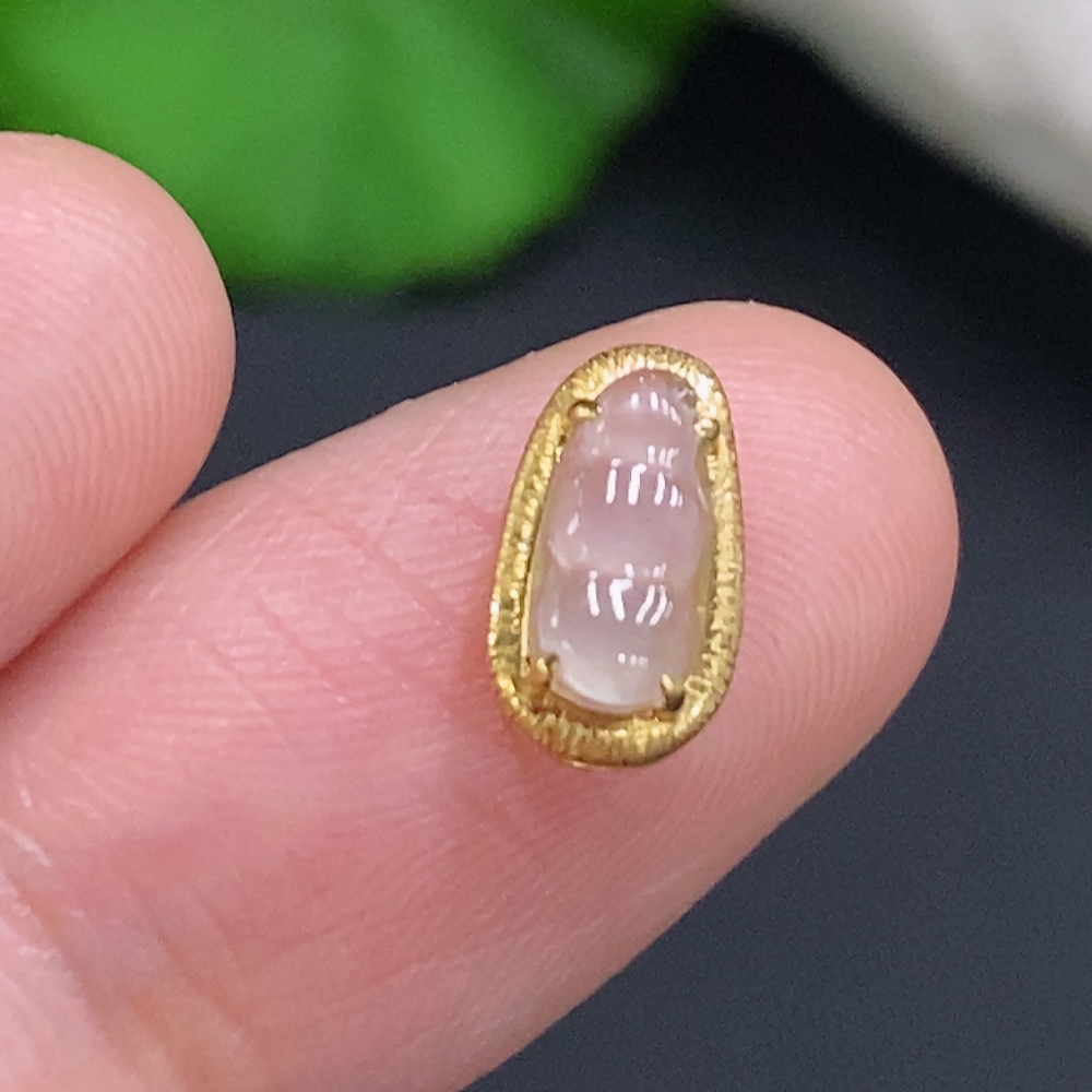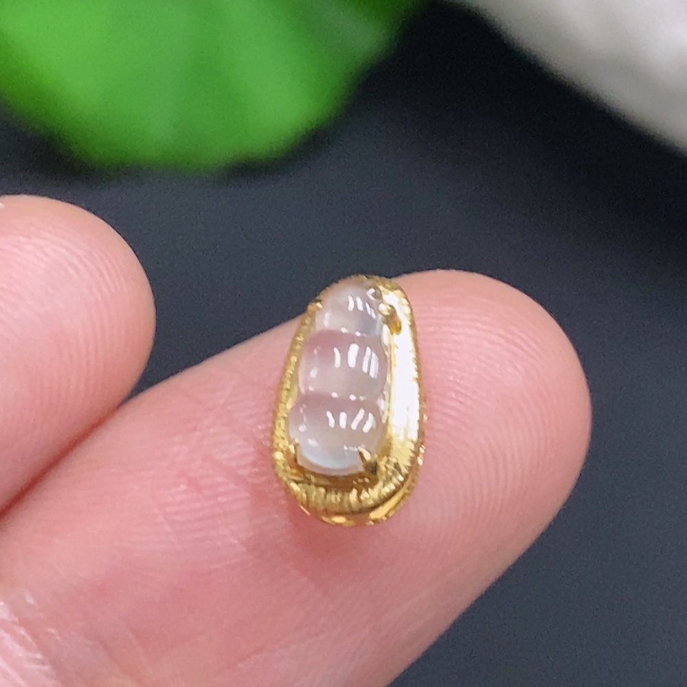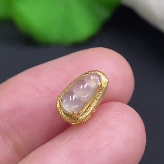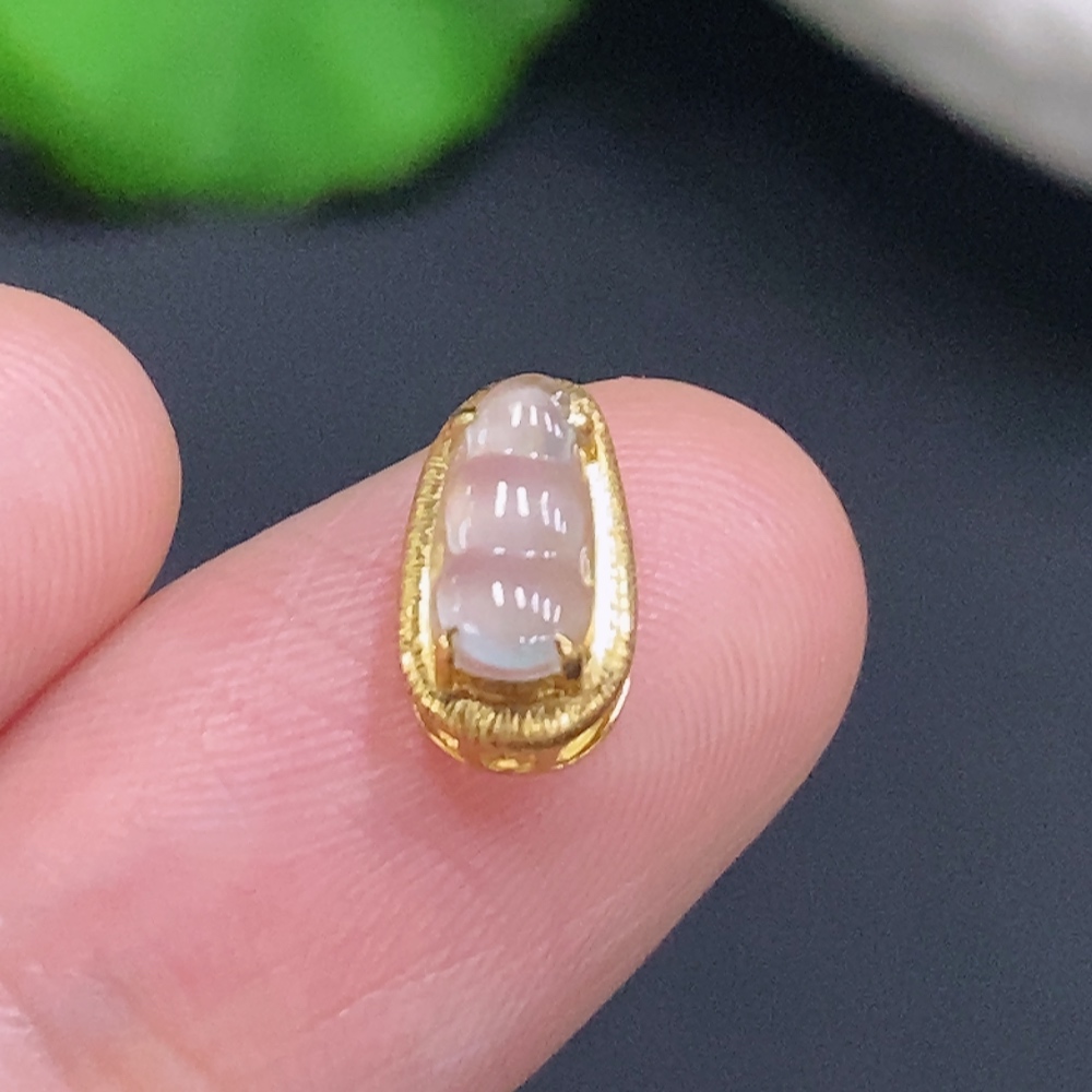 Jadeite Lucky Bean Pendant with 18K Gold Setting, Total Weight Approx. 0.4g