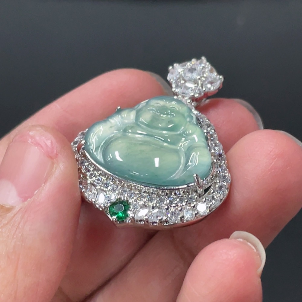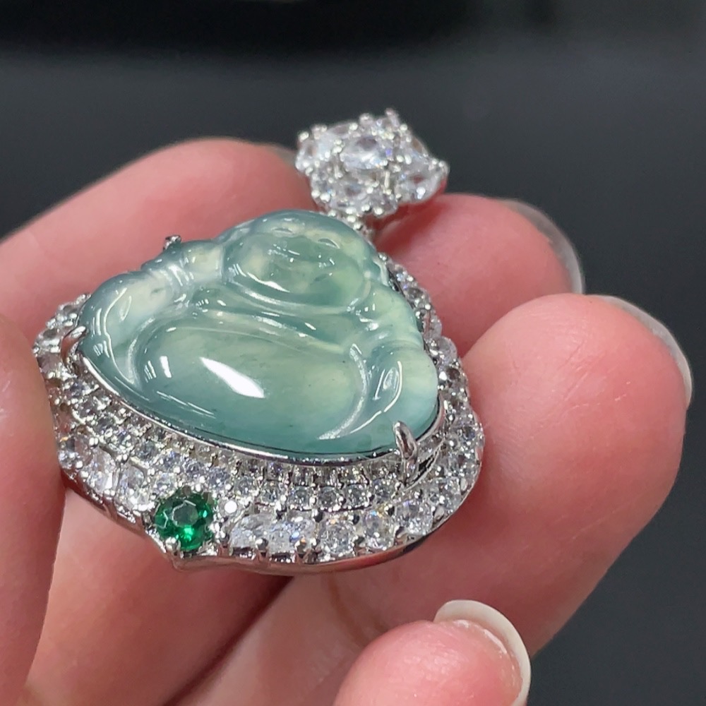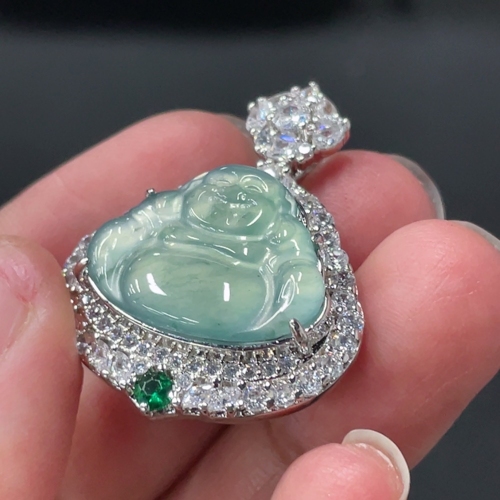 Jadeite Buddha Pendant with Mounting, Non-Gold Setting, Total Weight Approx. 7.8g