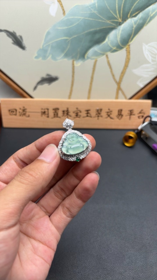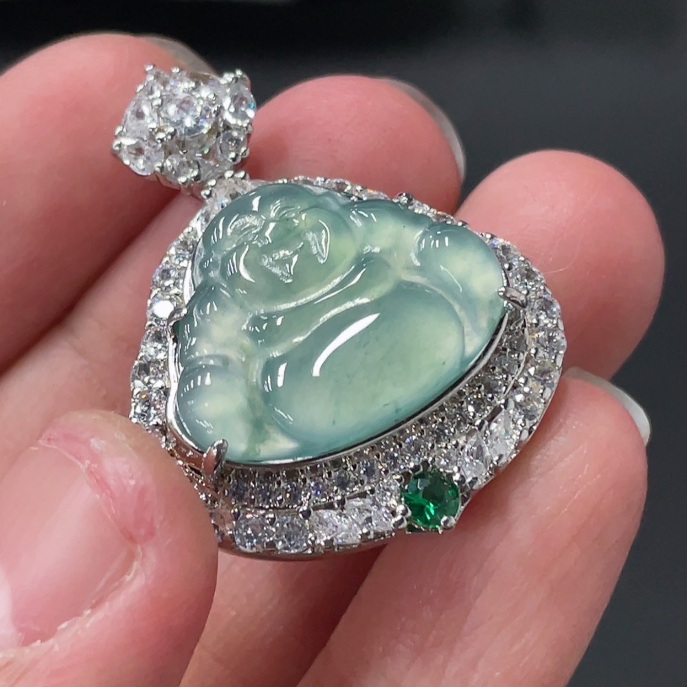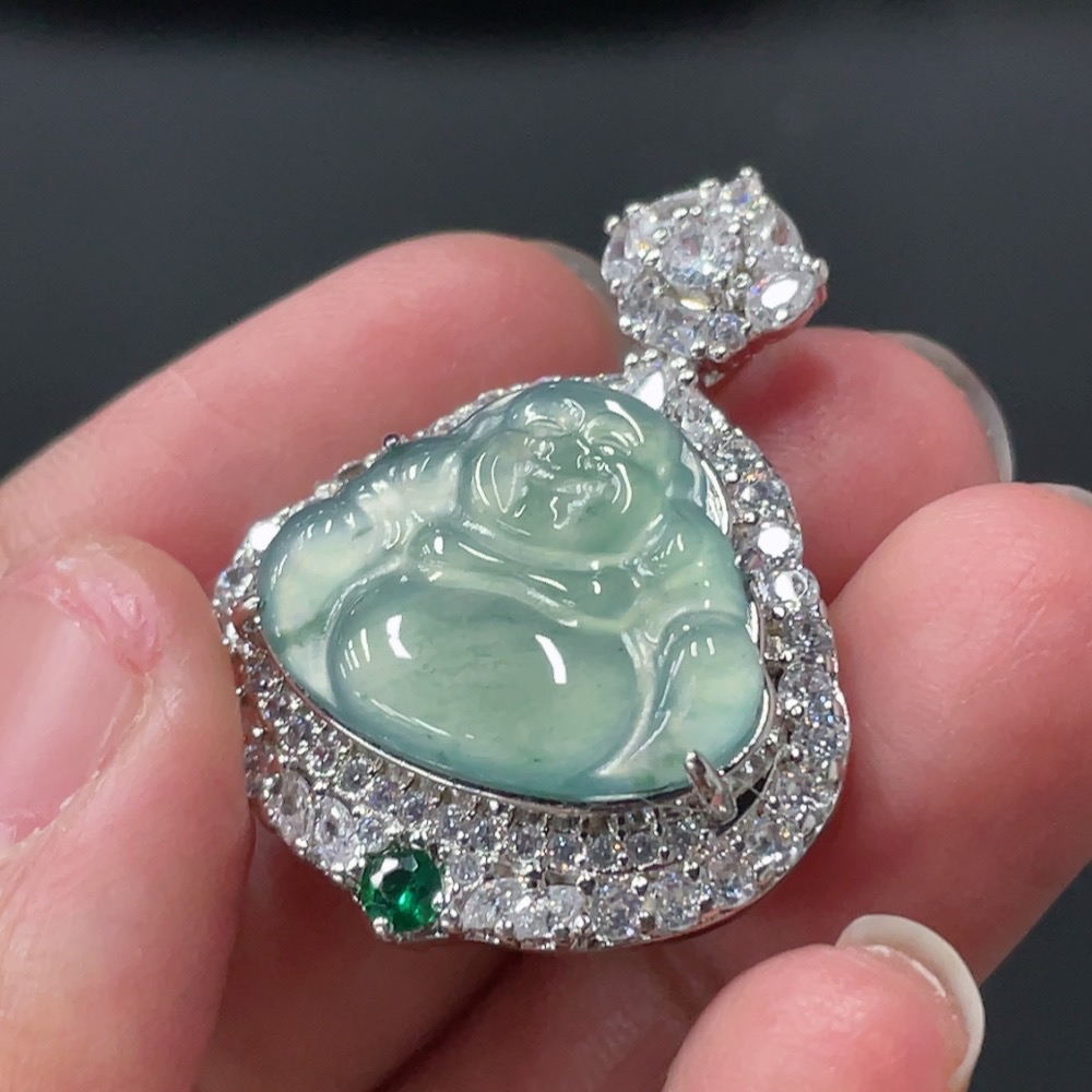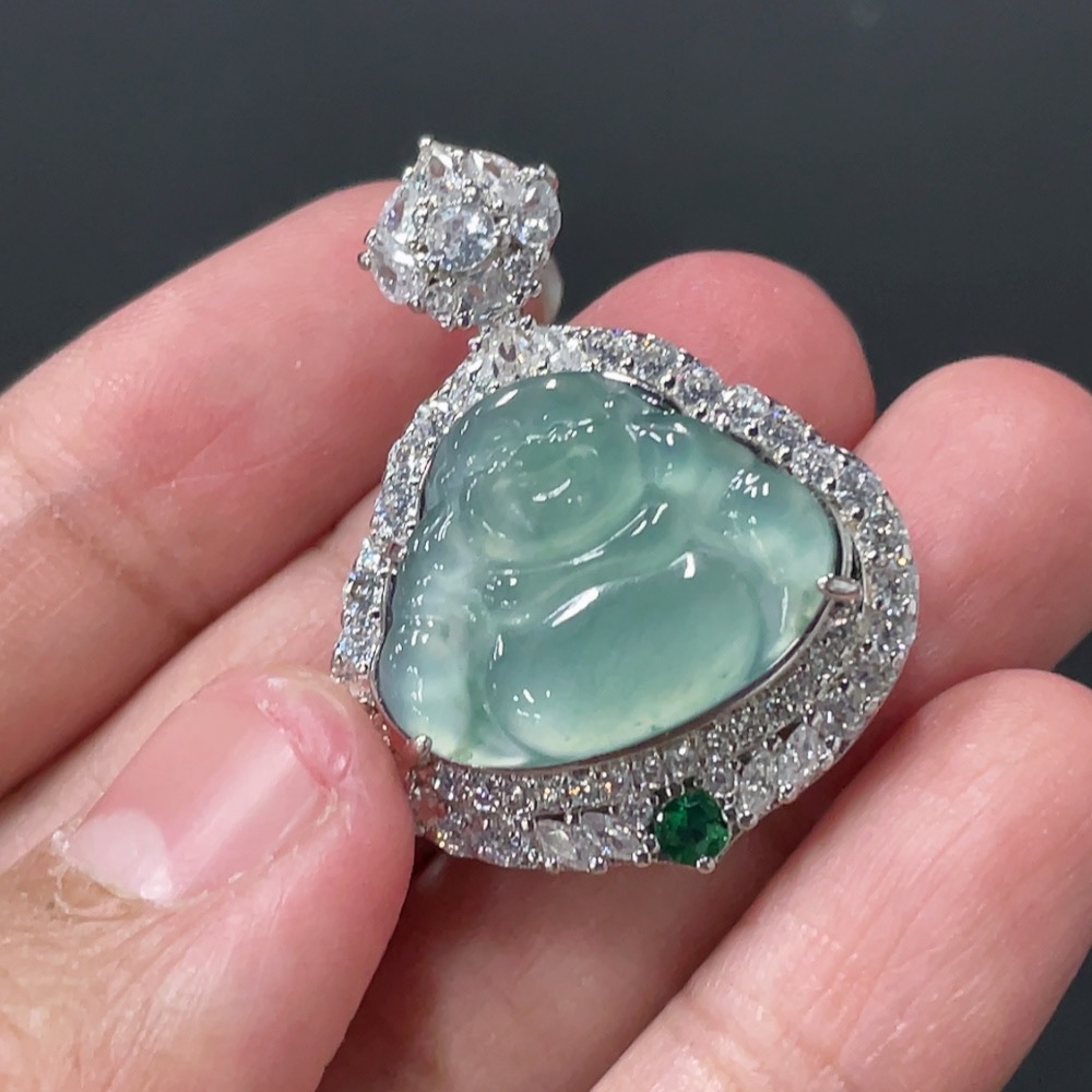 Jadeite Buddha Pendant with Mounting, Non-Gold Setting, Total Weight Approx. 7.8g