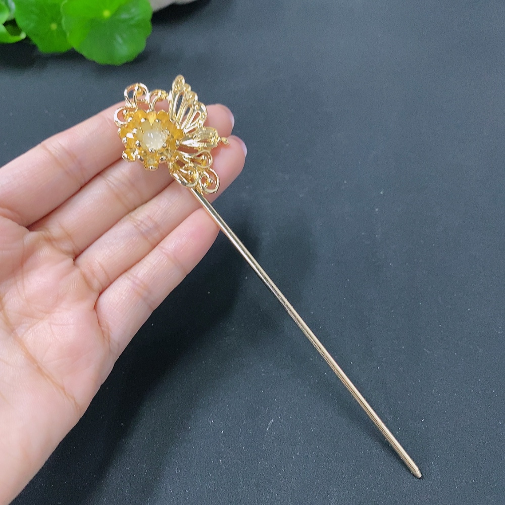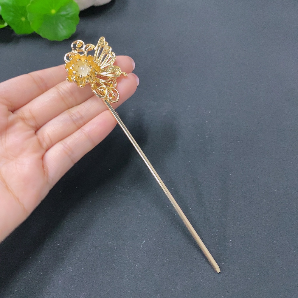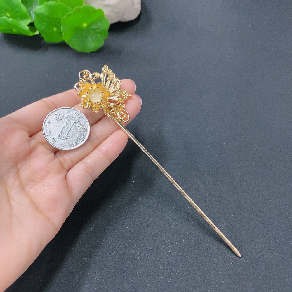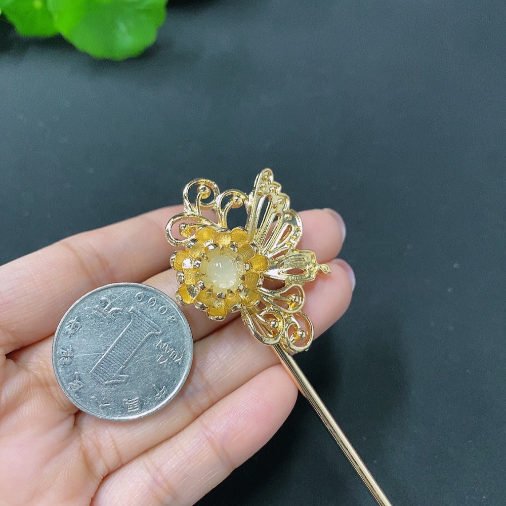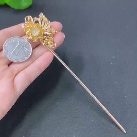 Jadeite Inlaid Hairpin Non-Gold Total Weight Approx.13g