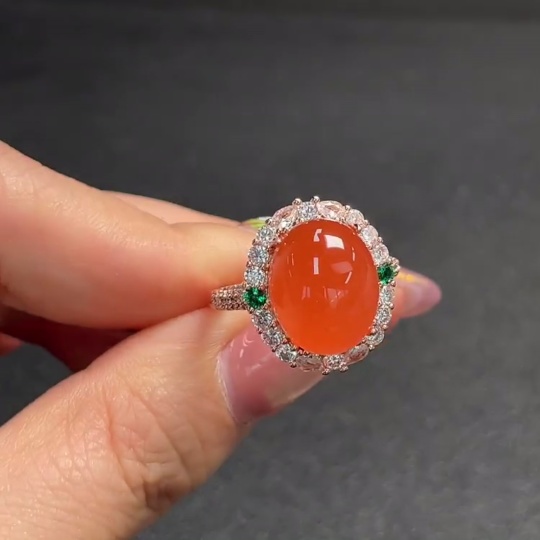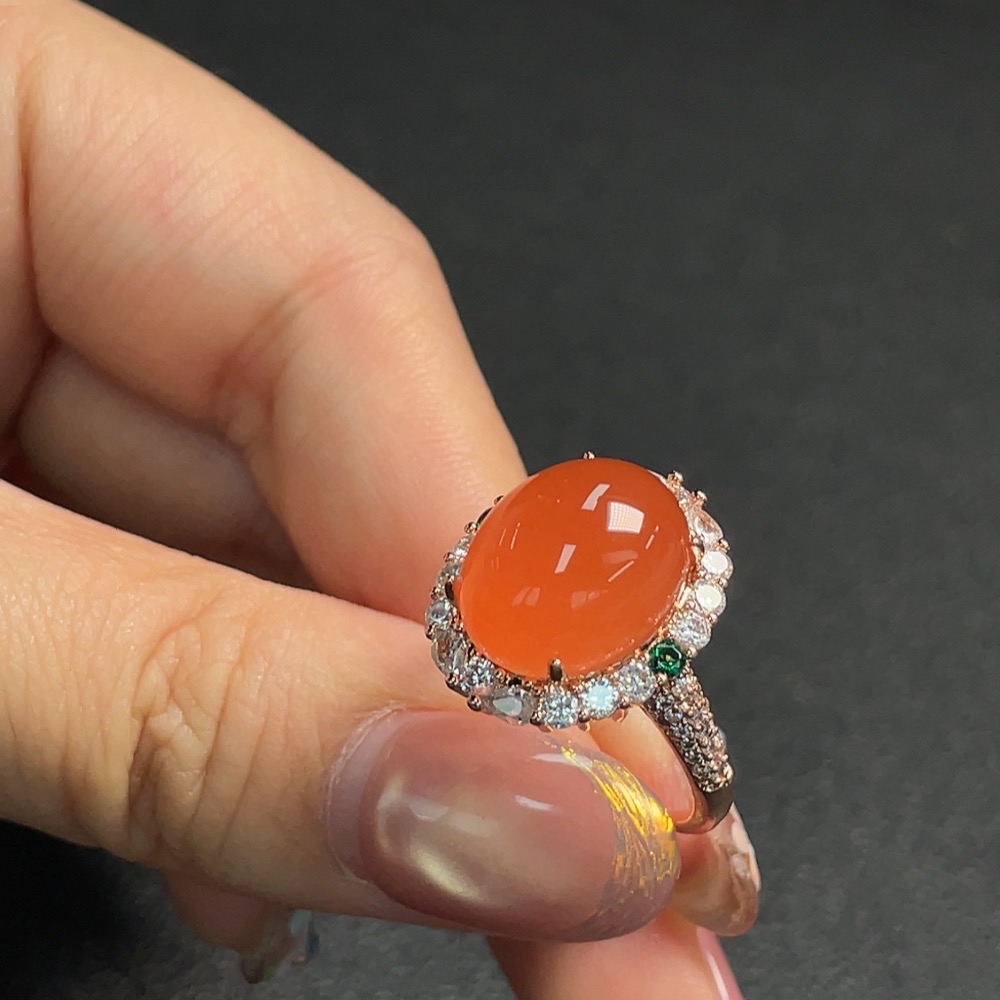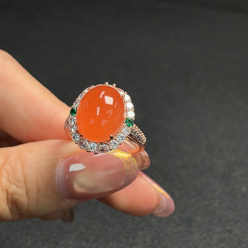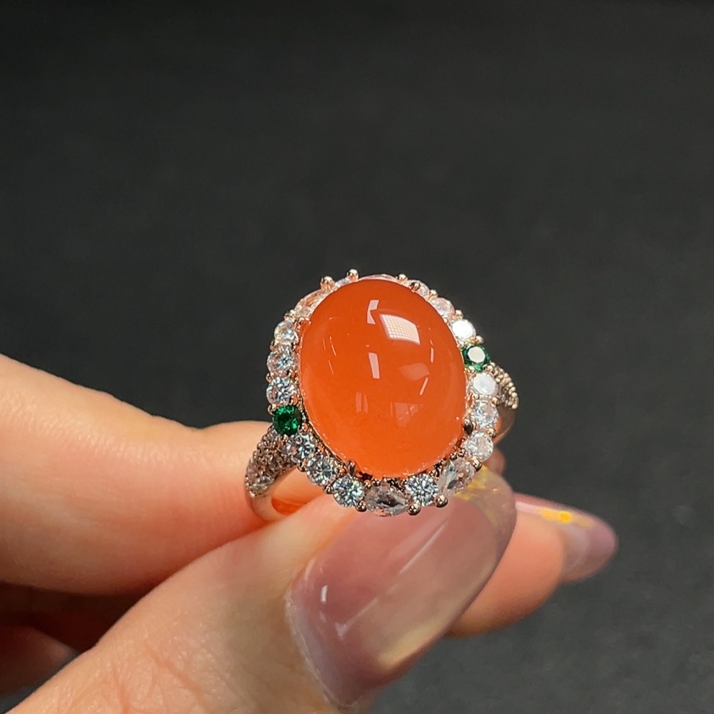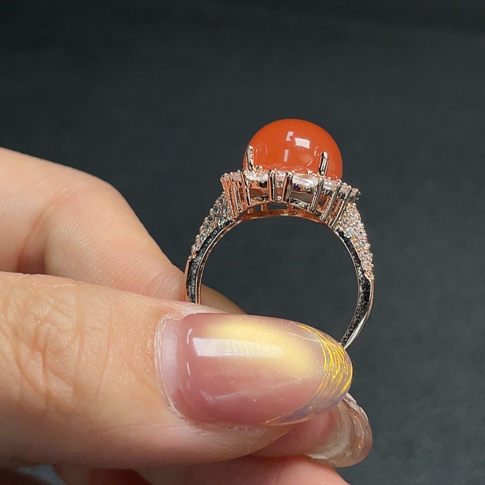 South Red Agate Inlaid Ring, Non-Gold Setting, Adjustable, Total Weight Approx. 5.25g