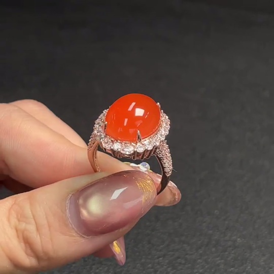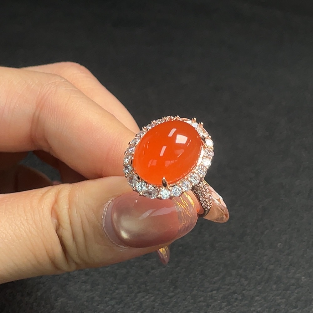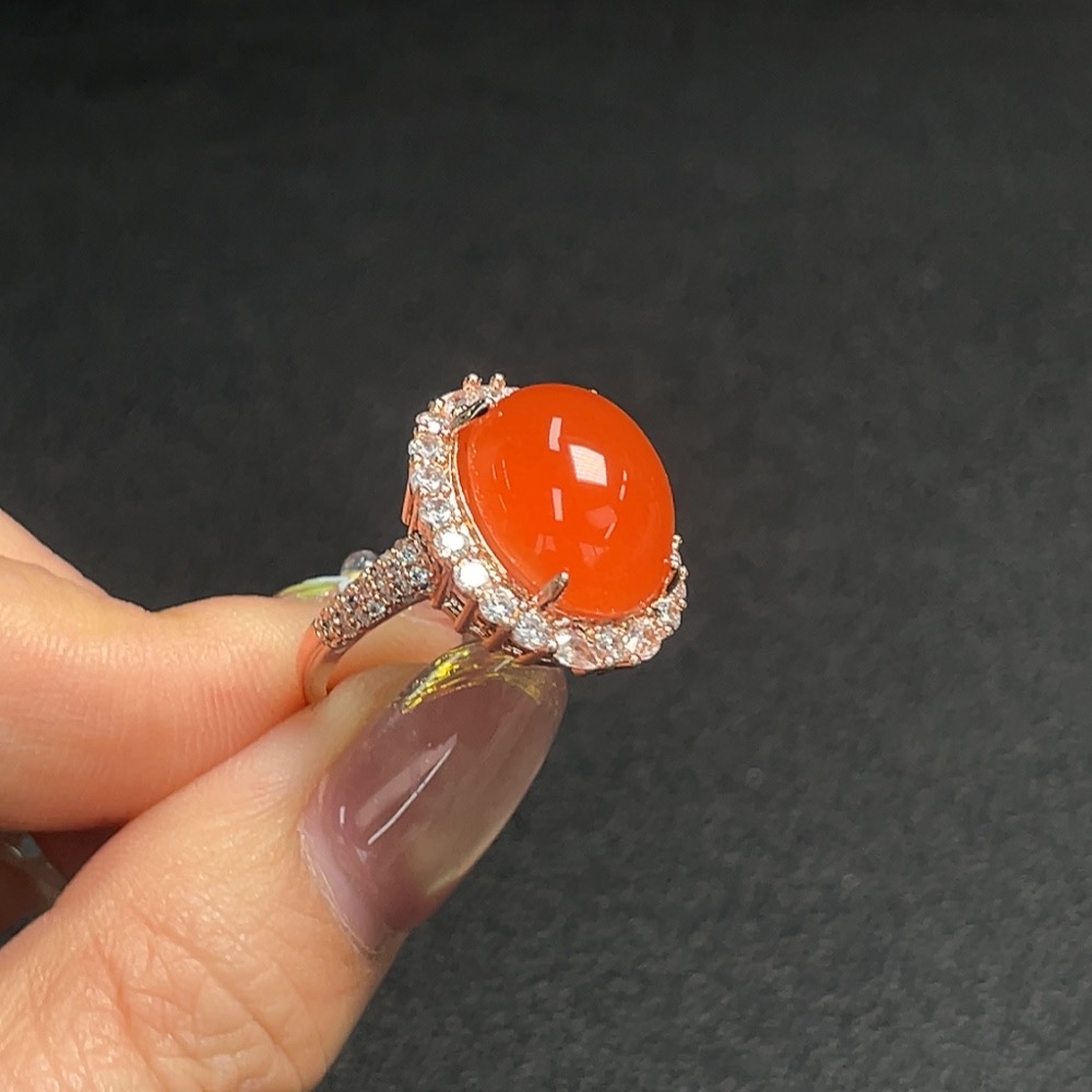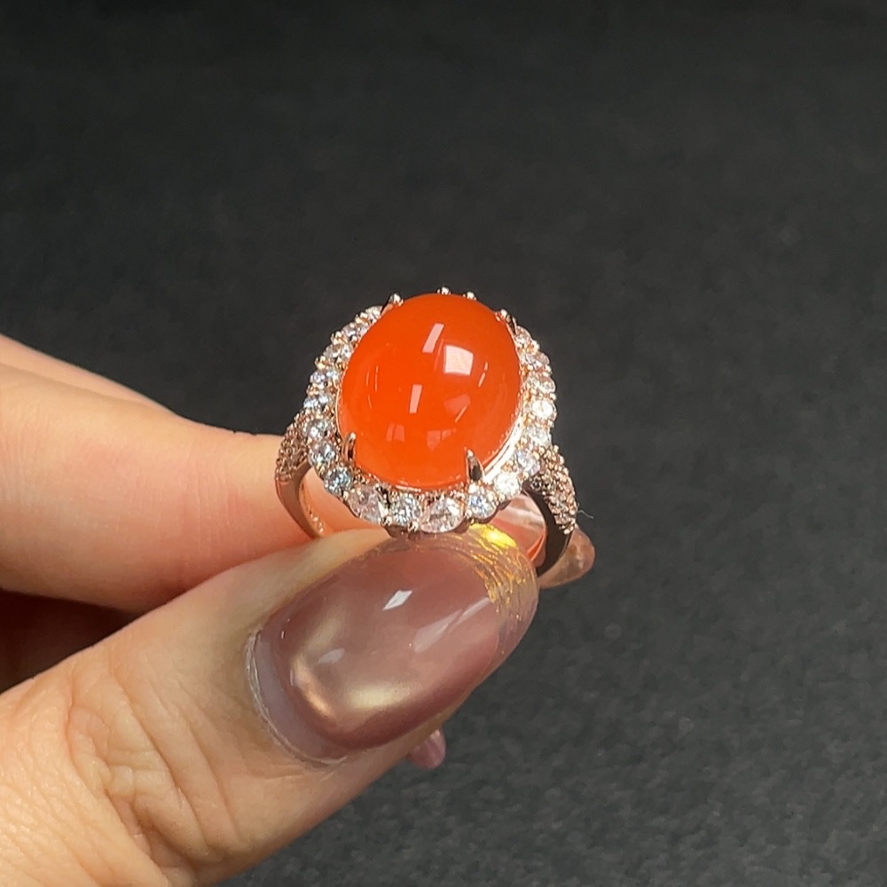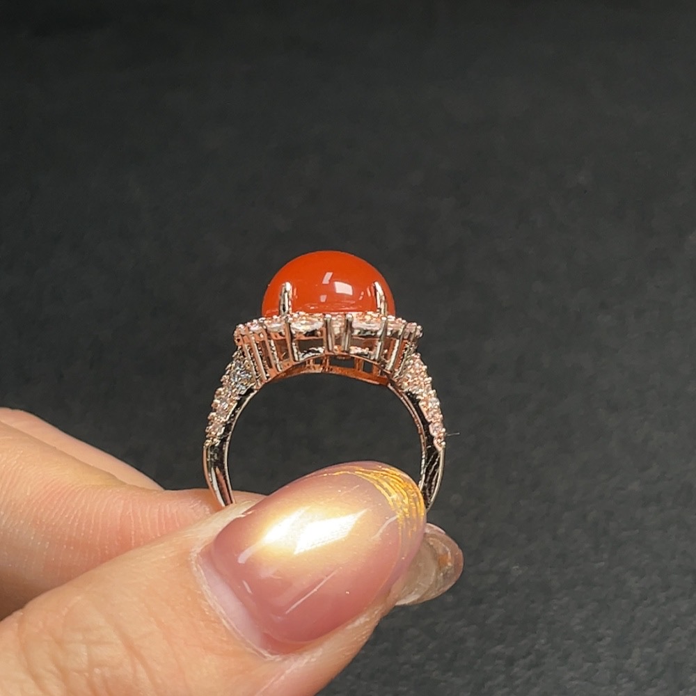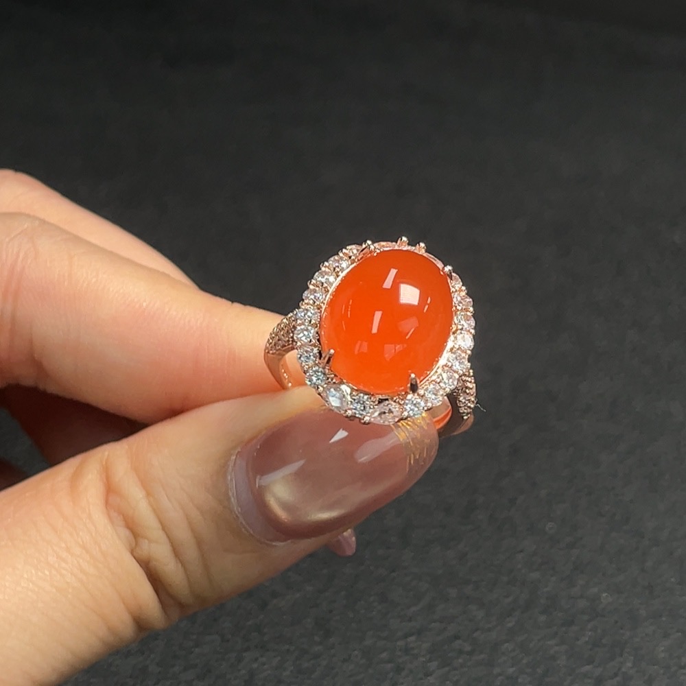 Red Agate Inlaid Ring (Non-Gold Setting, Adjustable, Total Weight Approx. 5.83g)