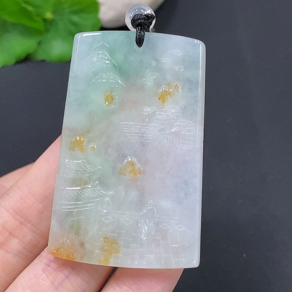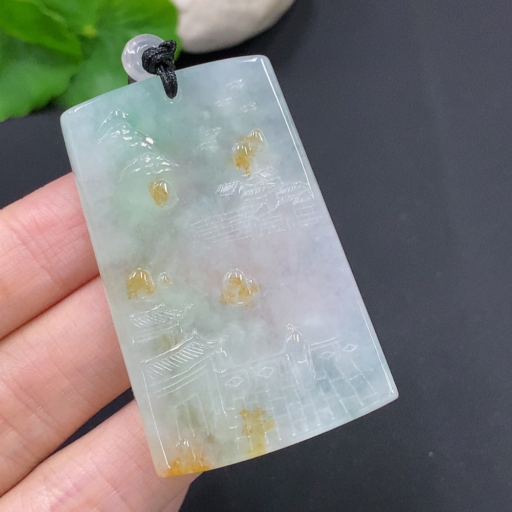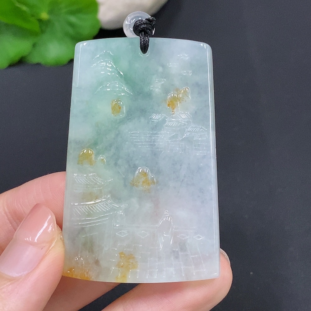 Jadeite Landscape Pendant Total Weight Approx. 28.4g (Including Rope)