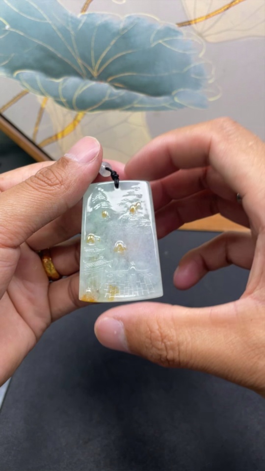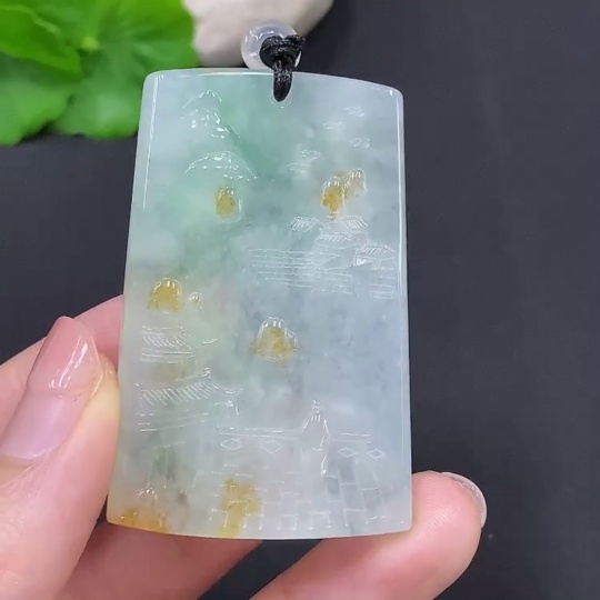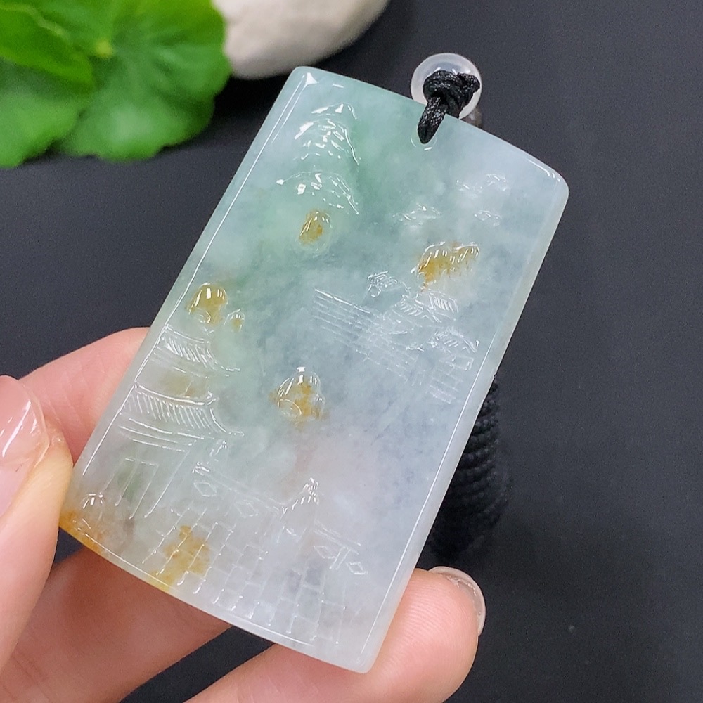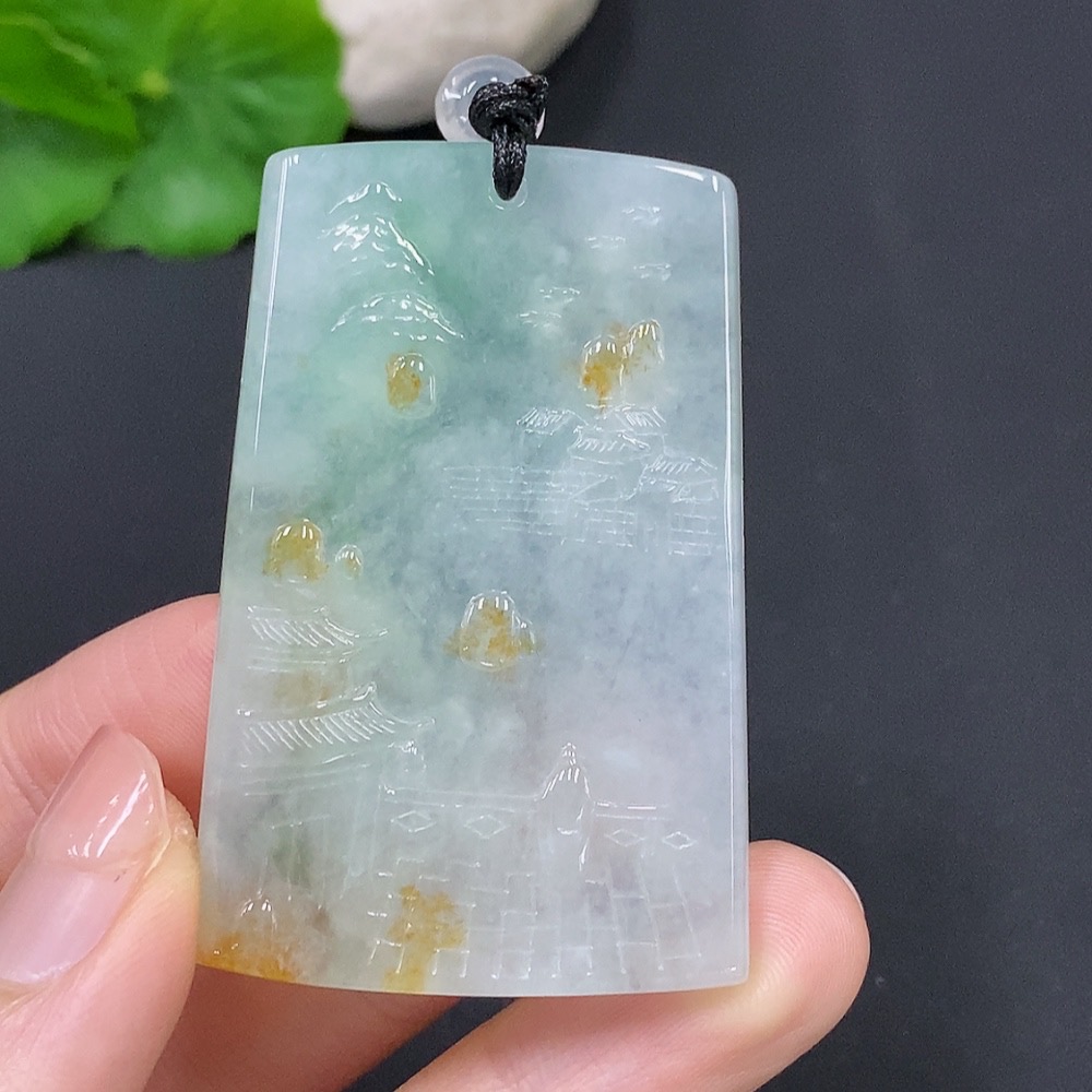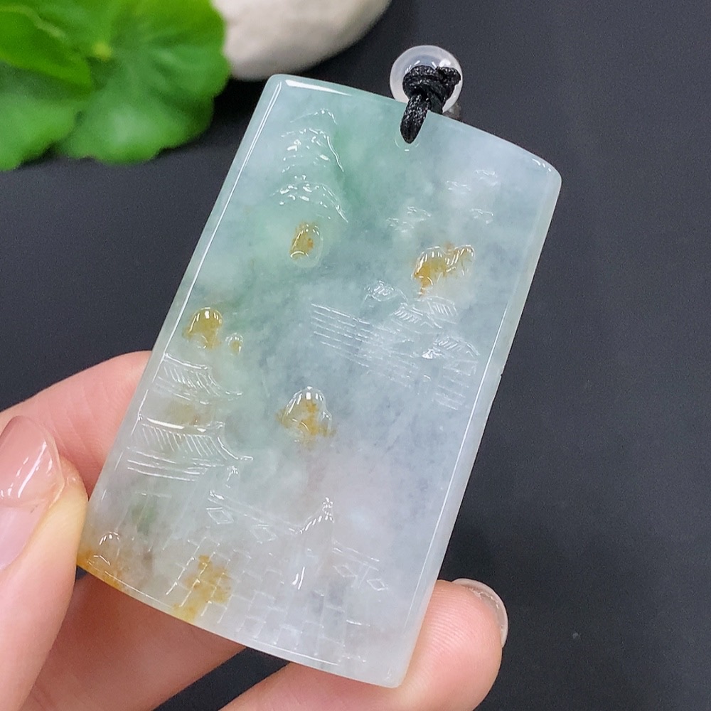 Jadeite Landscape Pendant Total Weight Approx. 28.4g (Including Rope)