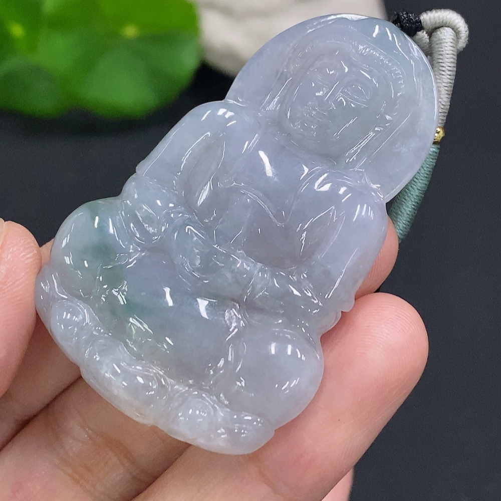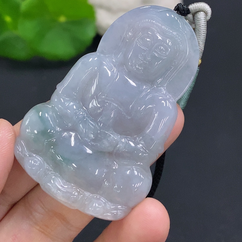 Jadeite Guanyin Pendant Total Weight Including Rope Approx. 21.5g