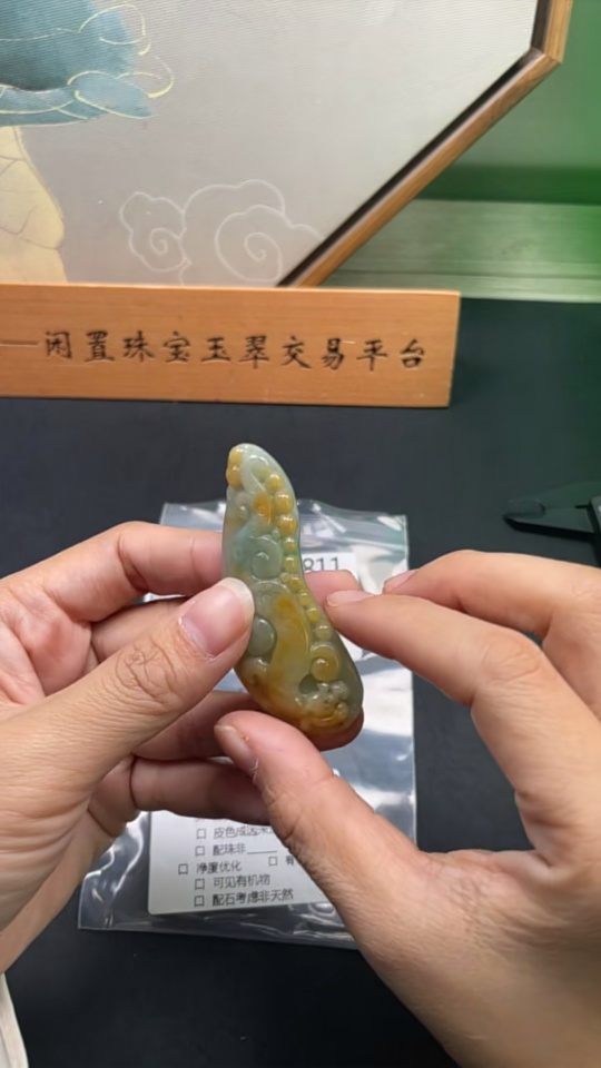 Jadeite Antique Pendant, total weight about 22.9g (color origin undetermined)
