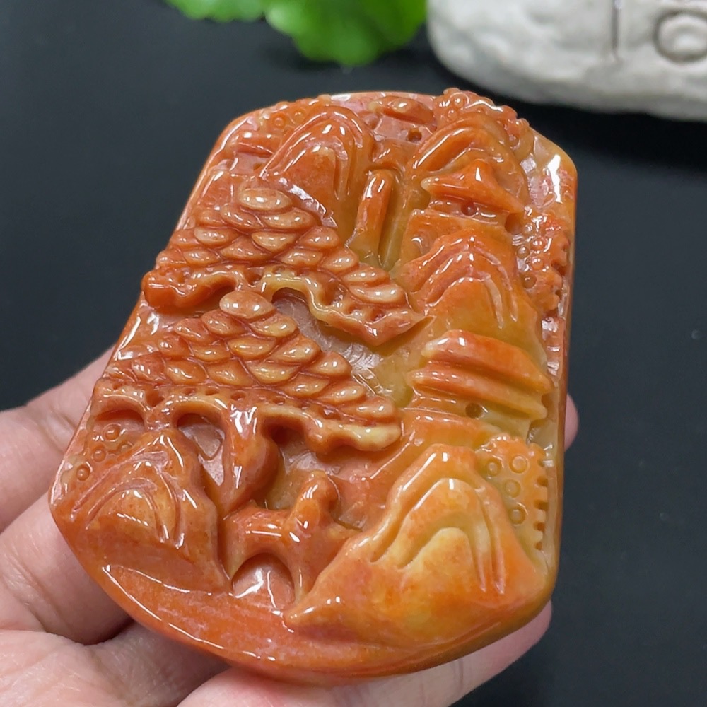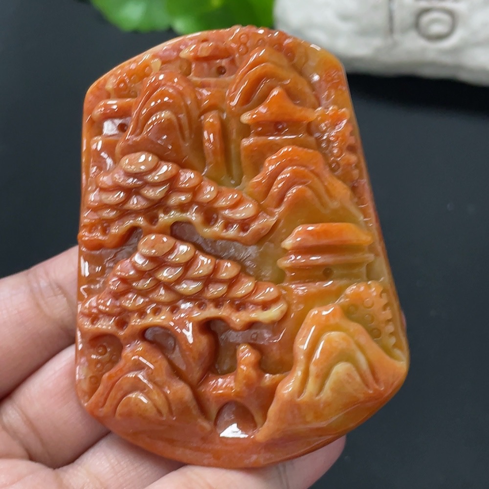 Jadeite Landscape Pendant, Color Origin Undetermined, Approx. 86.85g