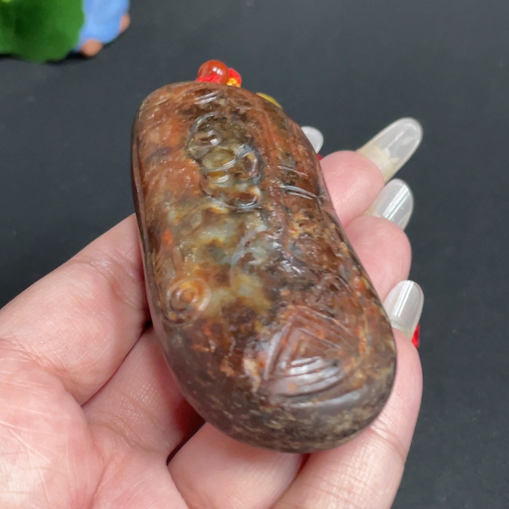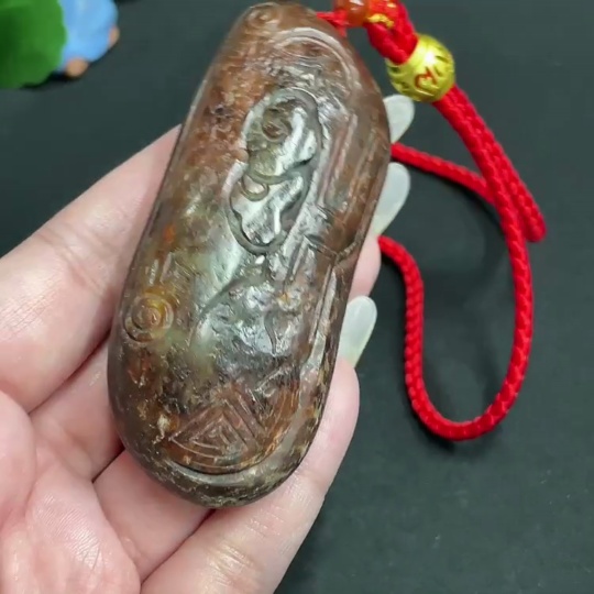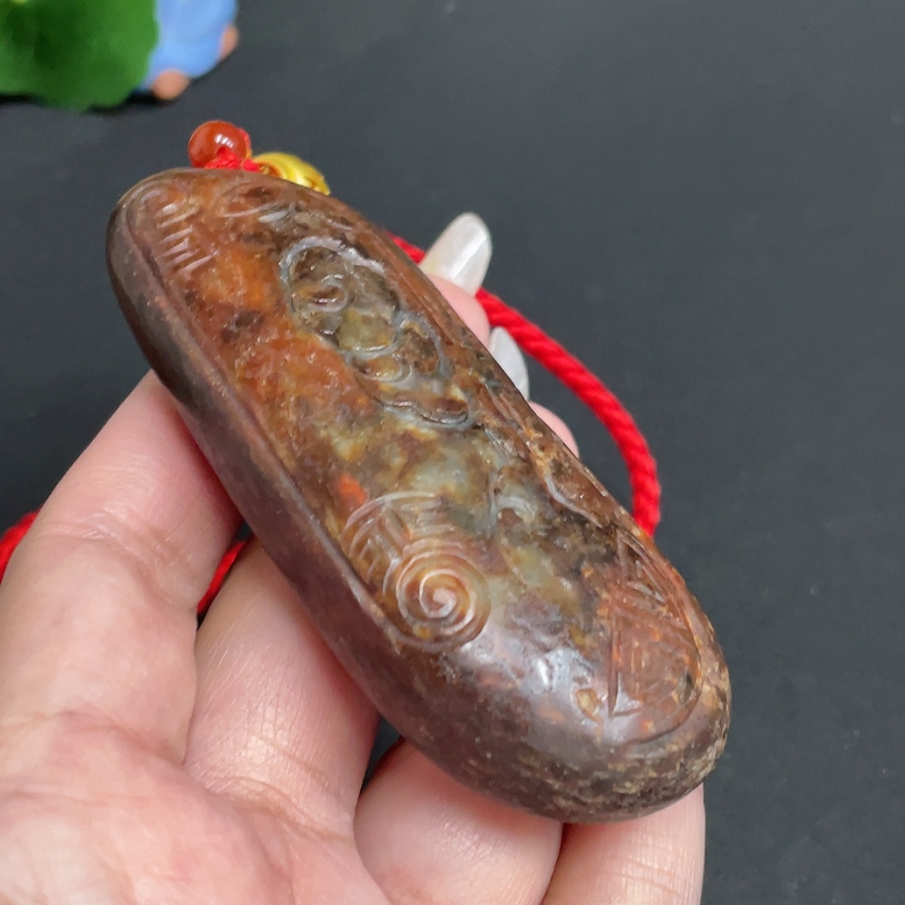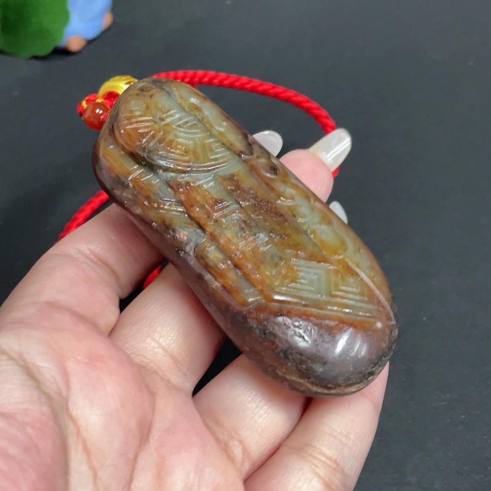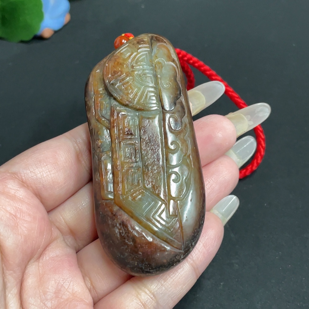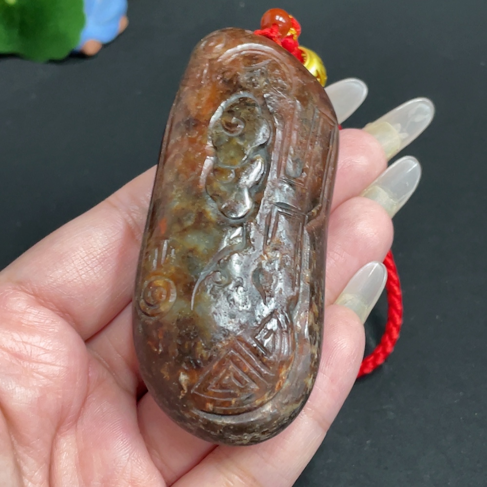 Hetian Jade Handheld Piece, Antique Style, Undetermined Skin Color Origin, Total Weight Approx. [Including Rope] 111.2g