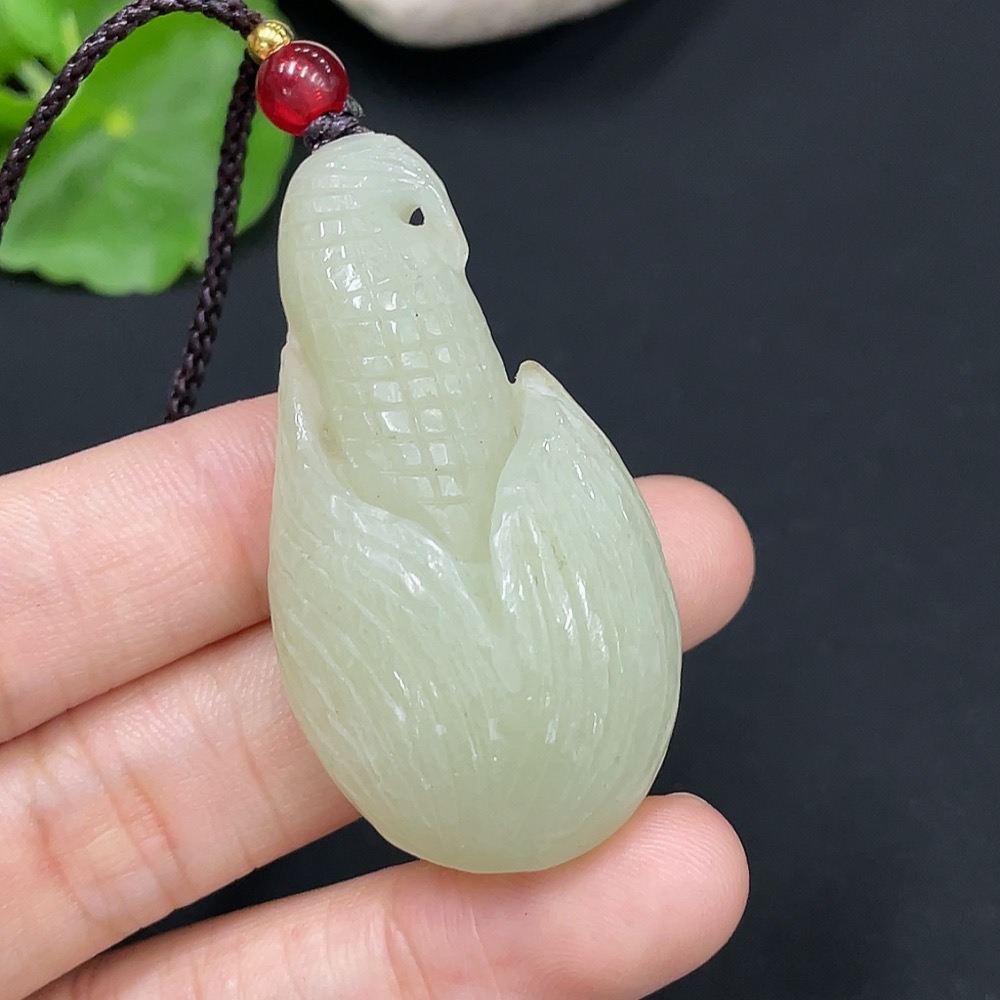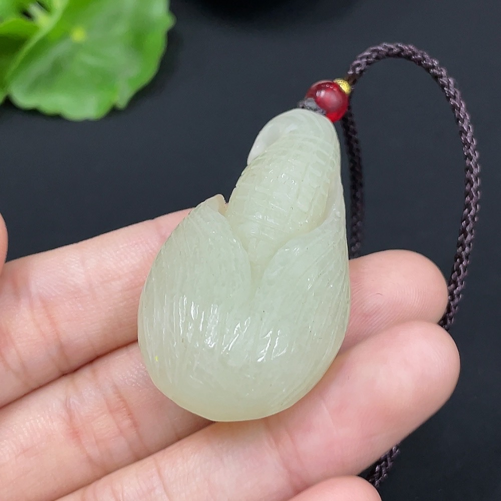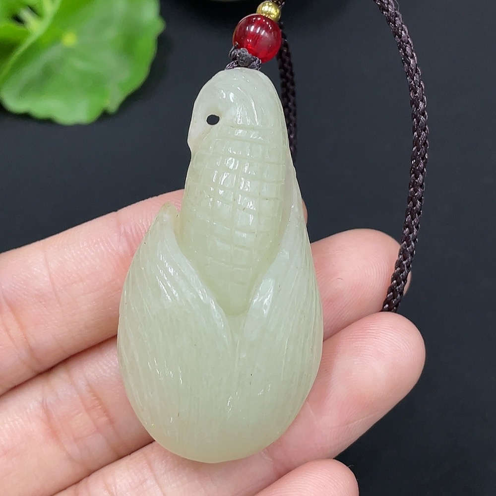 Hetian Jade Pendant Corn Total Weight (with rope): 24g