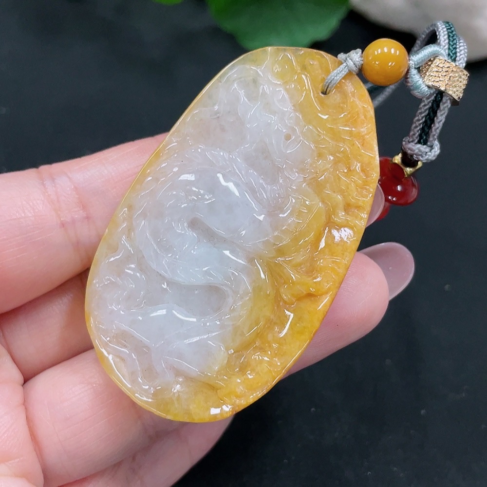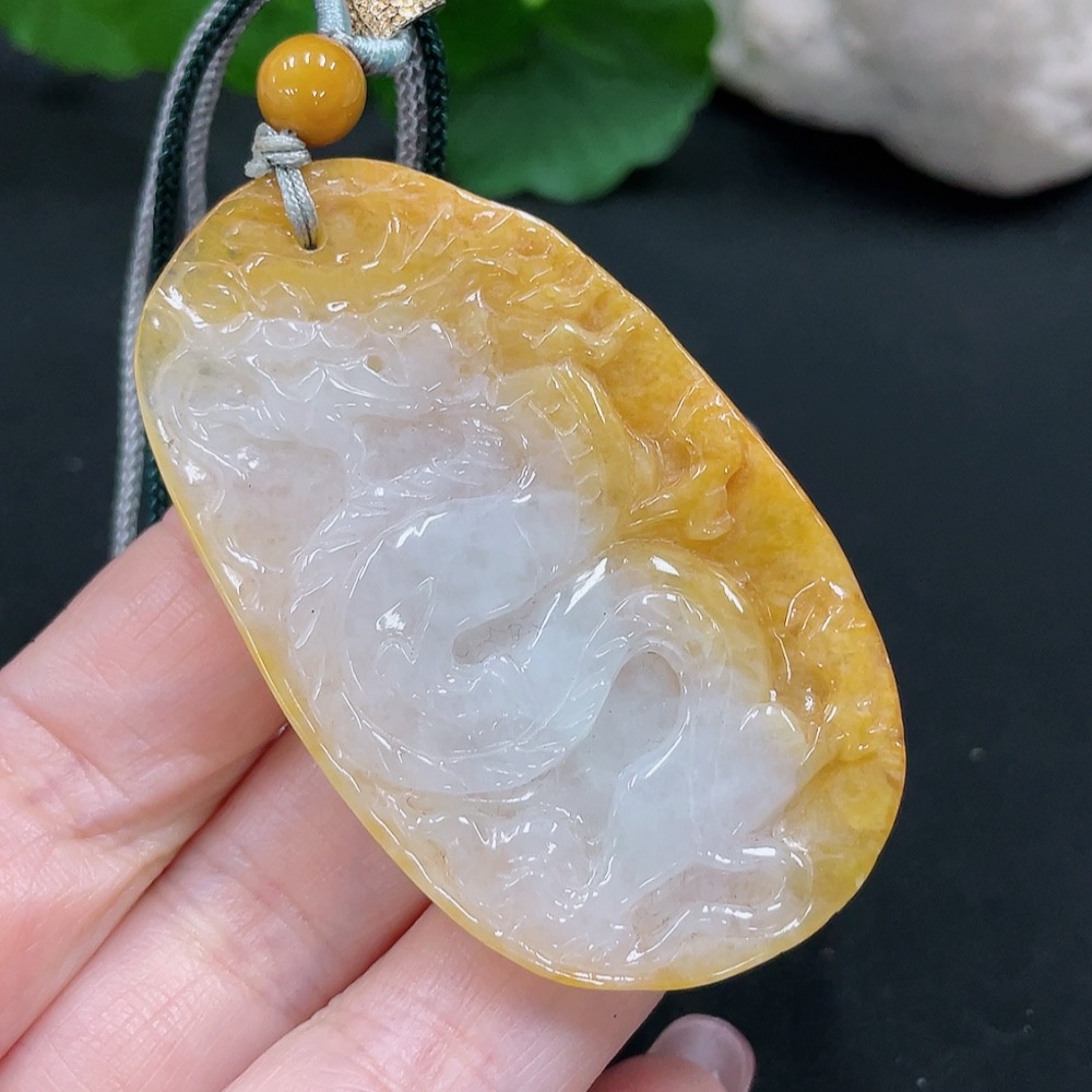 Jadeite Dragon Pendant Total Weight Approx. 31.7g (including rope weight) (Color origin undetermined)