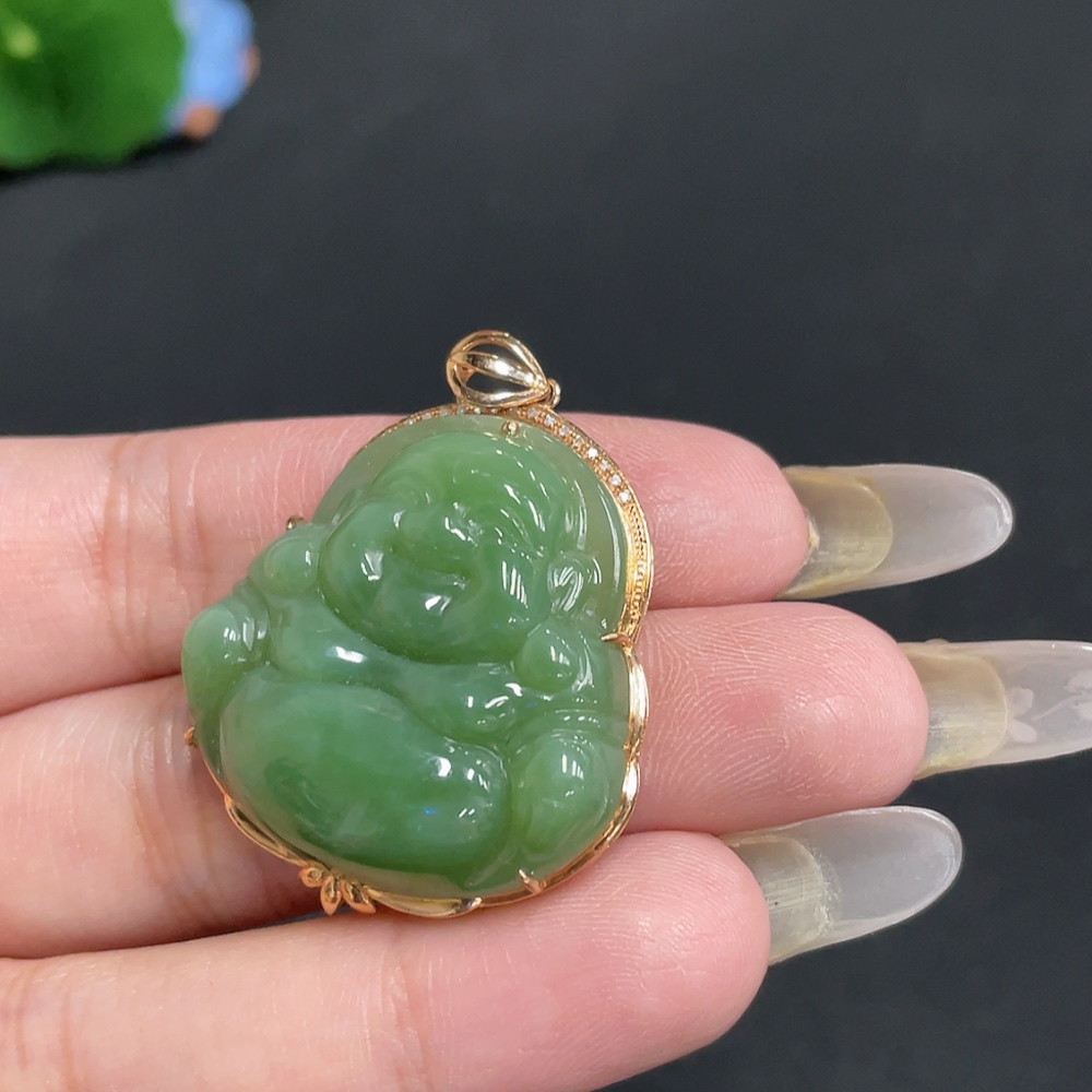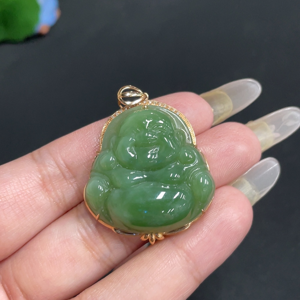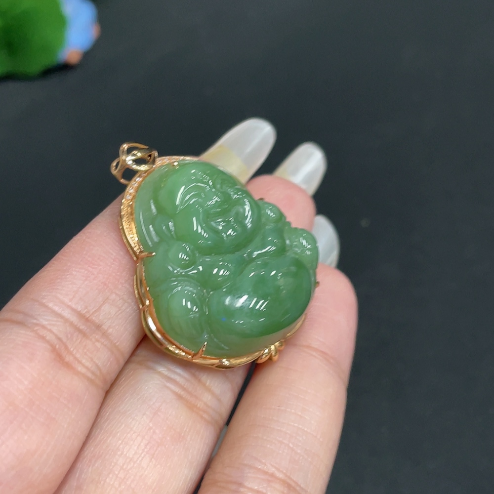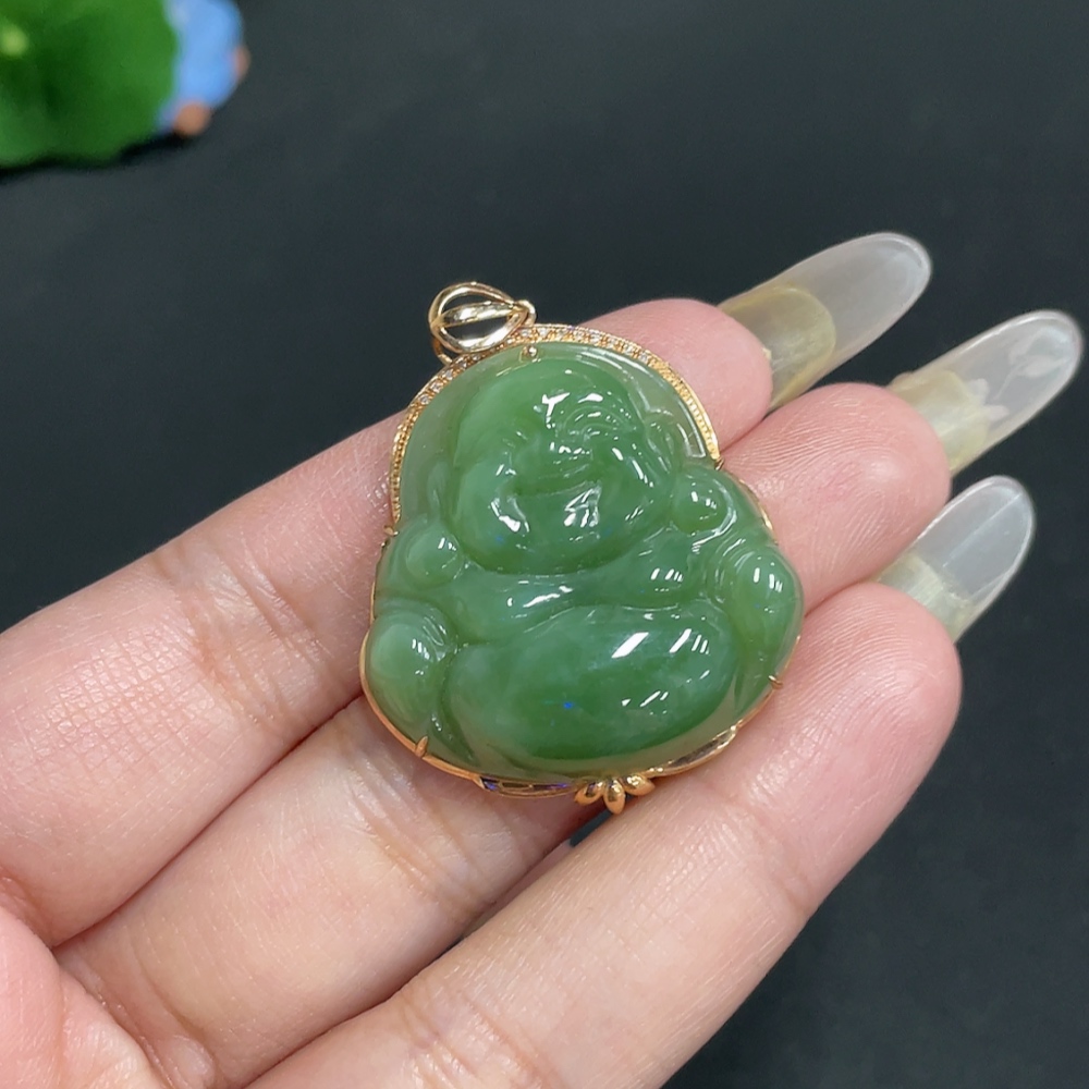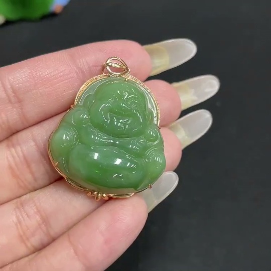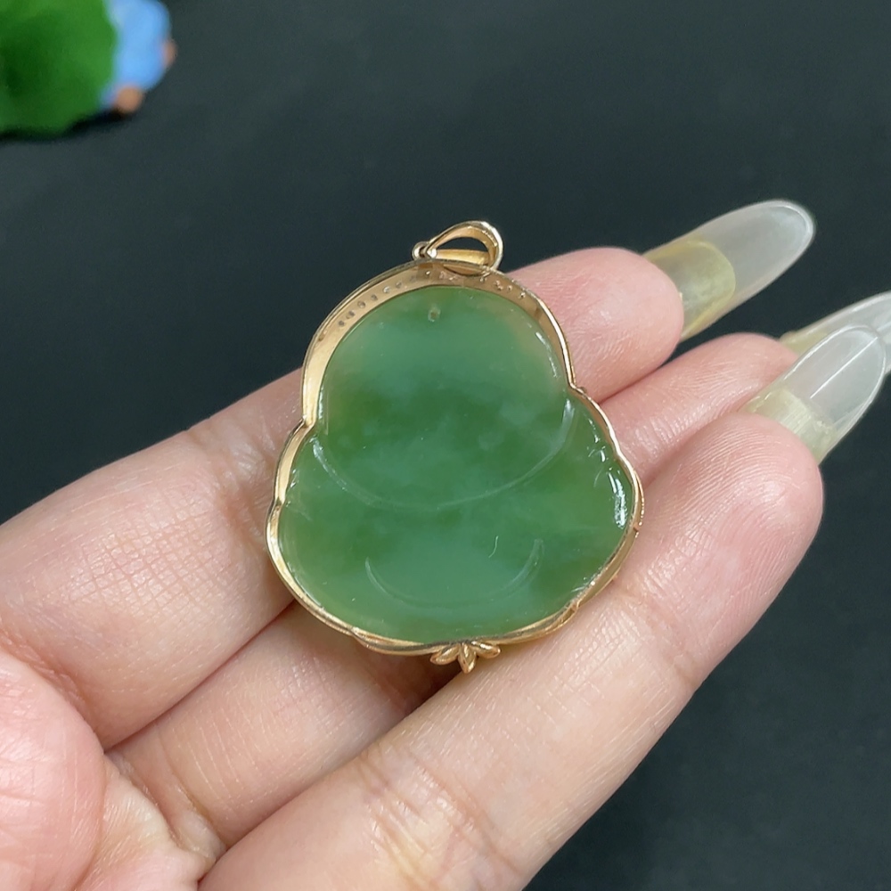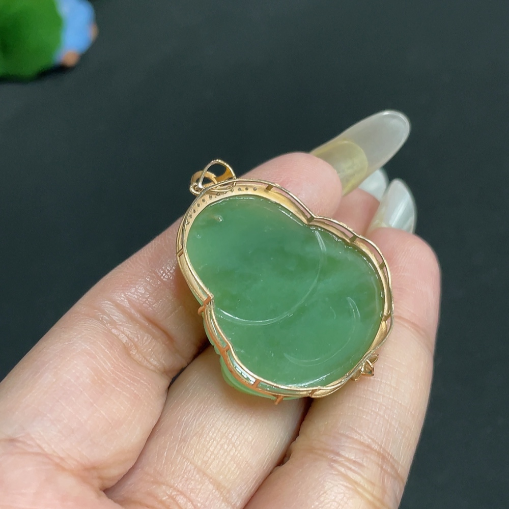Hetian Jade Inlaid Buddha Pendant, 18K Gold, Total Weight Approx. 12g