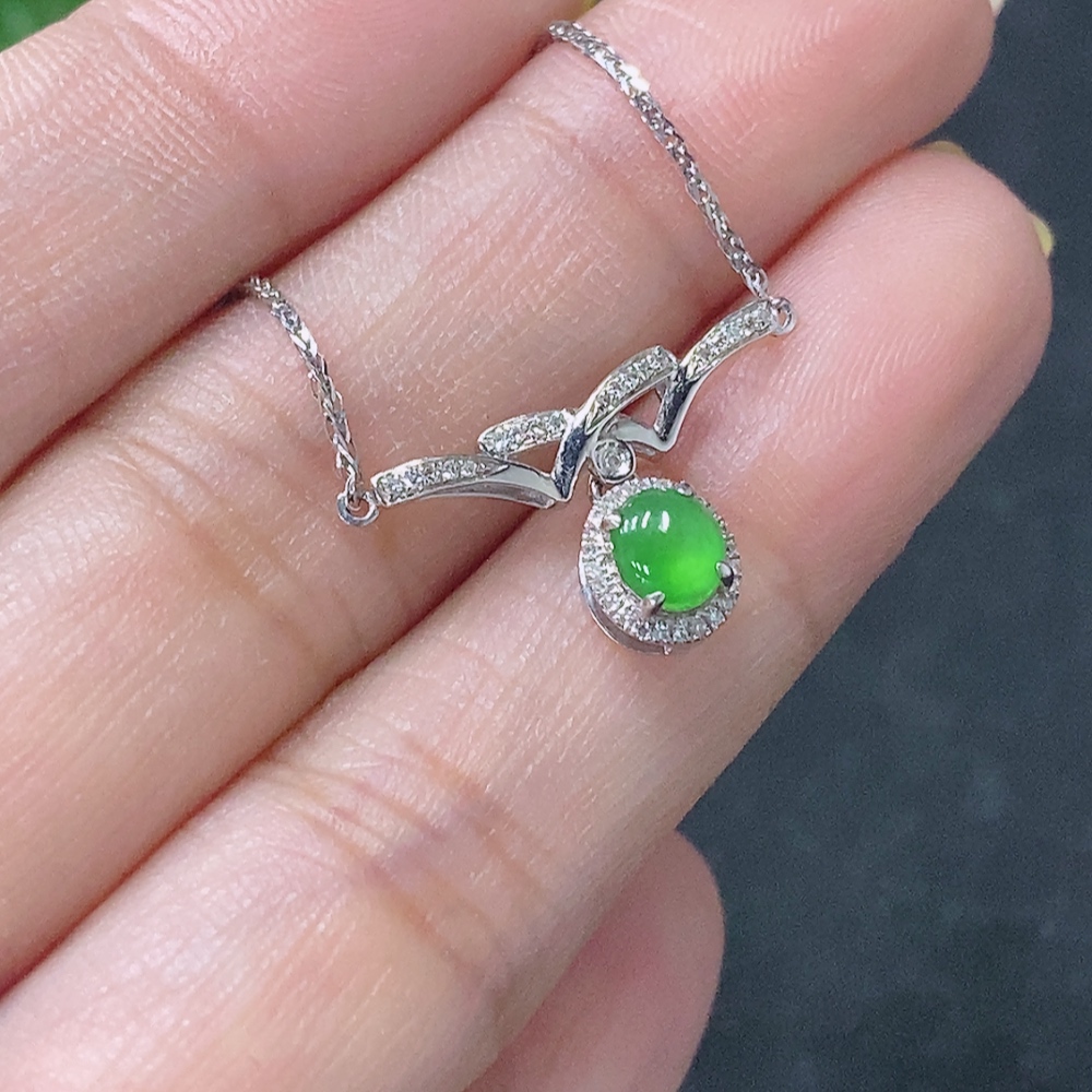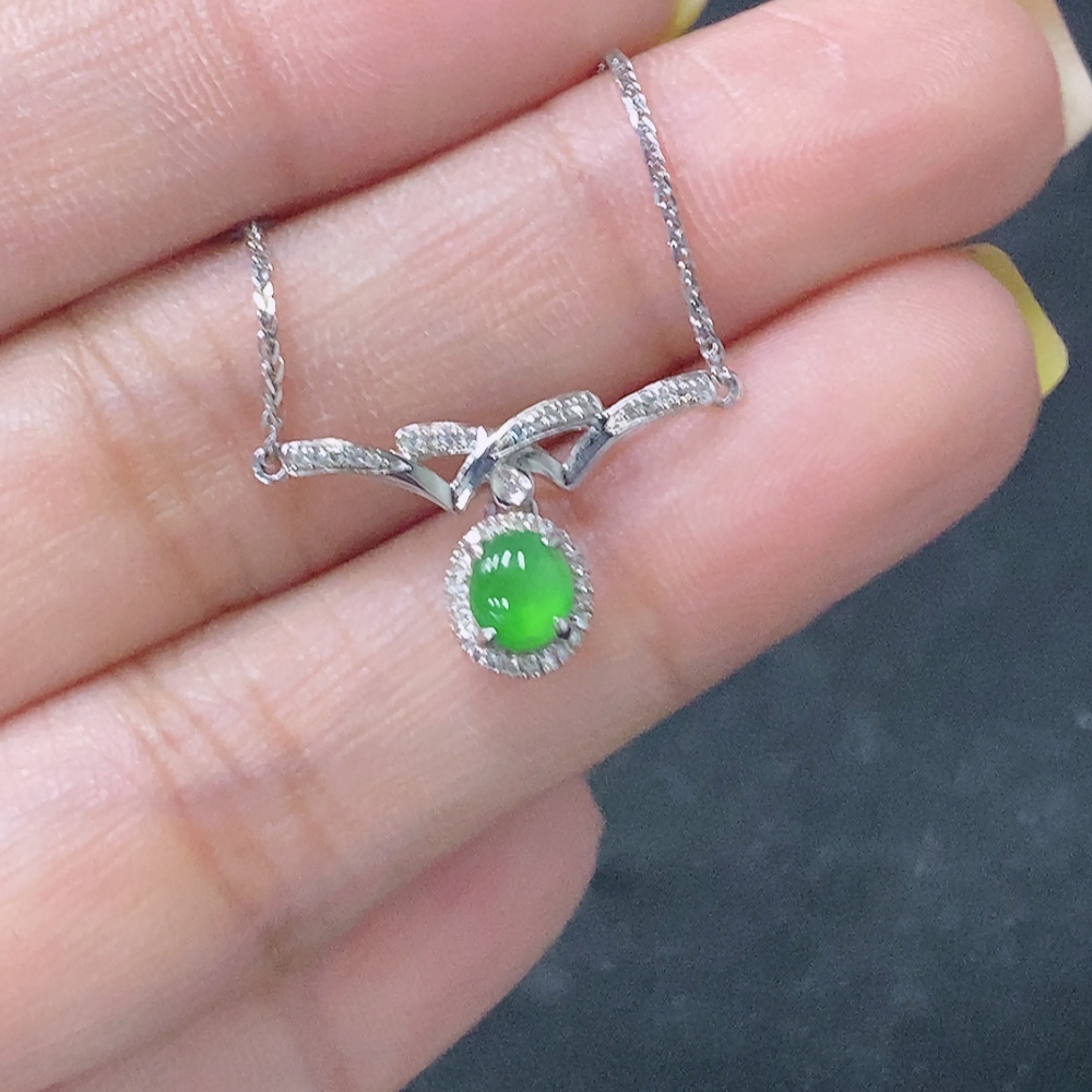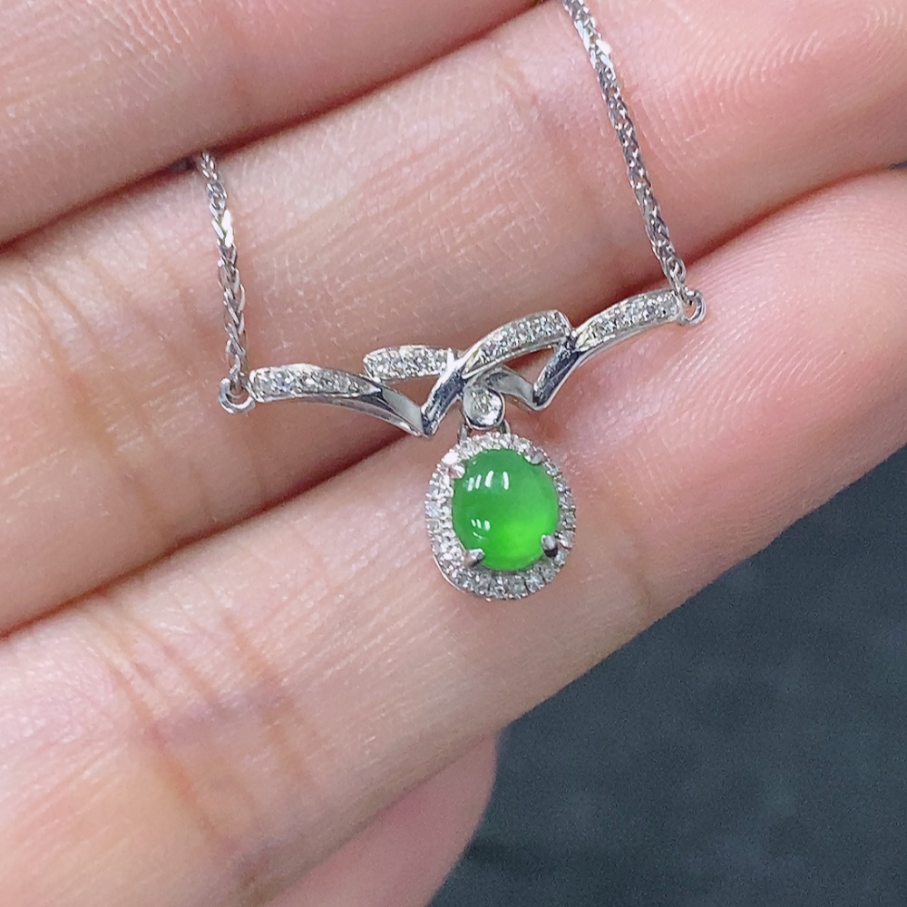 Jadeite Cabochon Pendant with 18K Gold and Diamond Accents