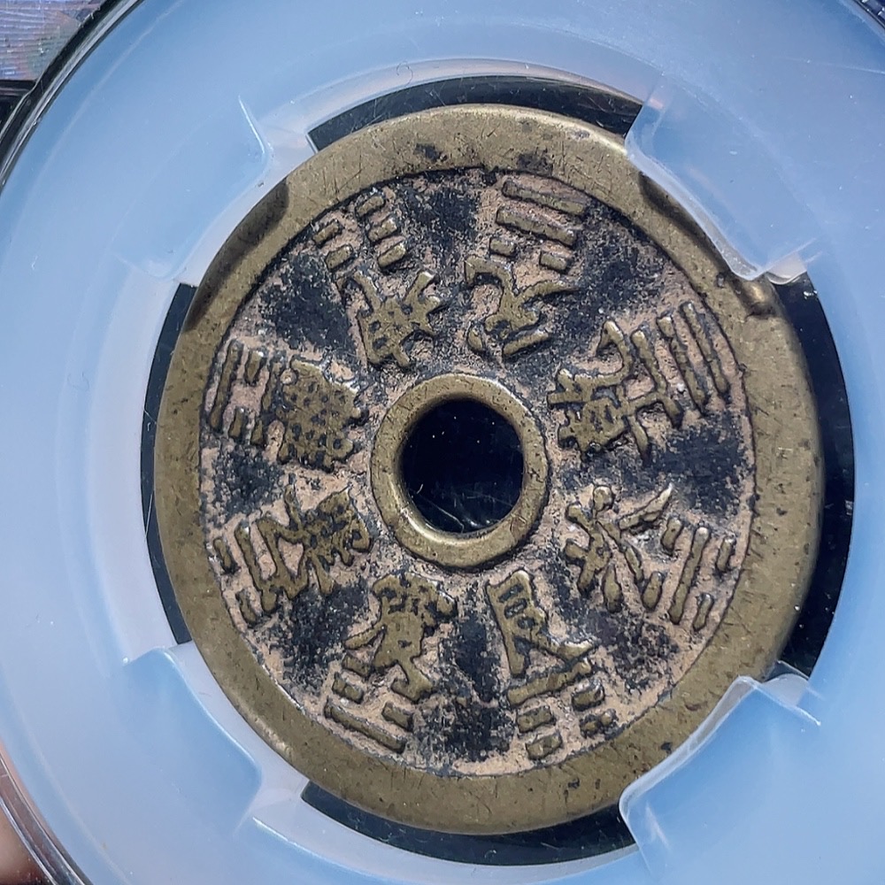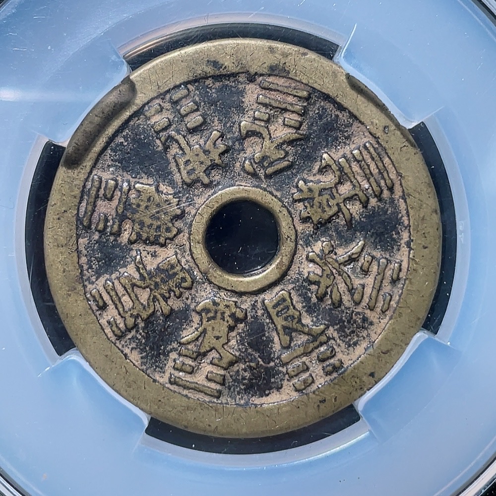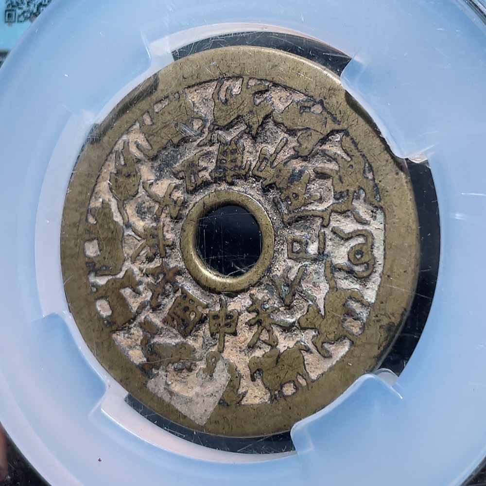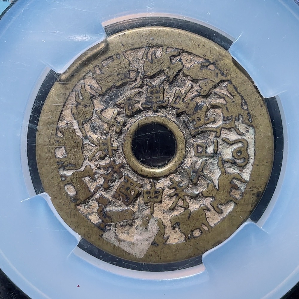 Trezaar - Qing Dynasty Twelve Zodiac Animals with Bagua Pattern on Reverse, Well-Circulated Yellowish Charm Coin