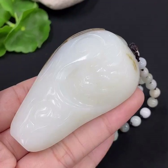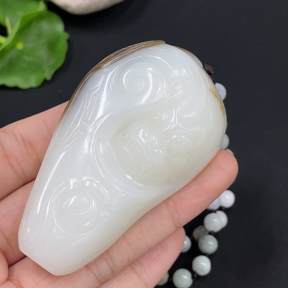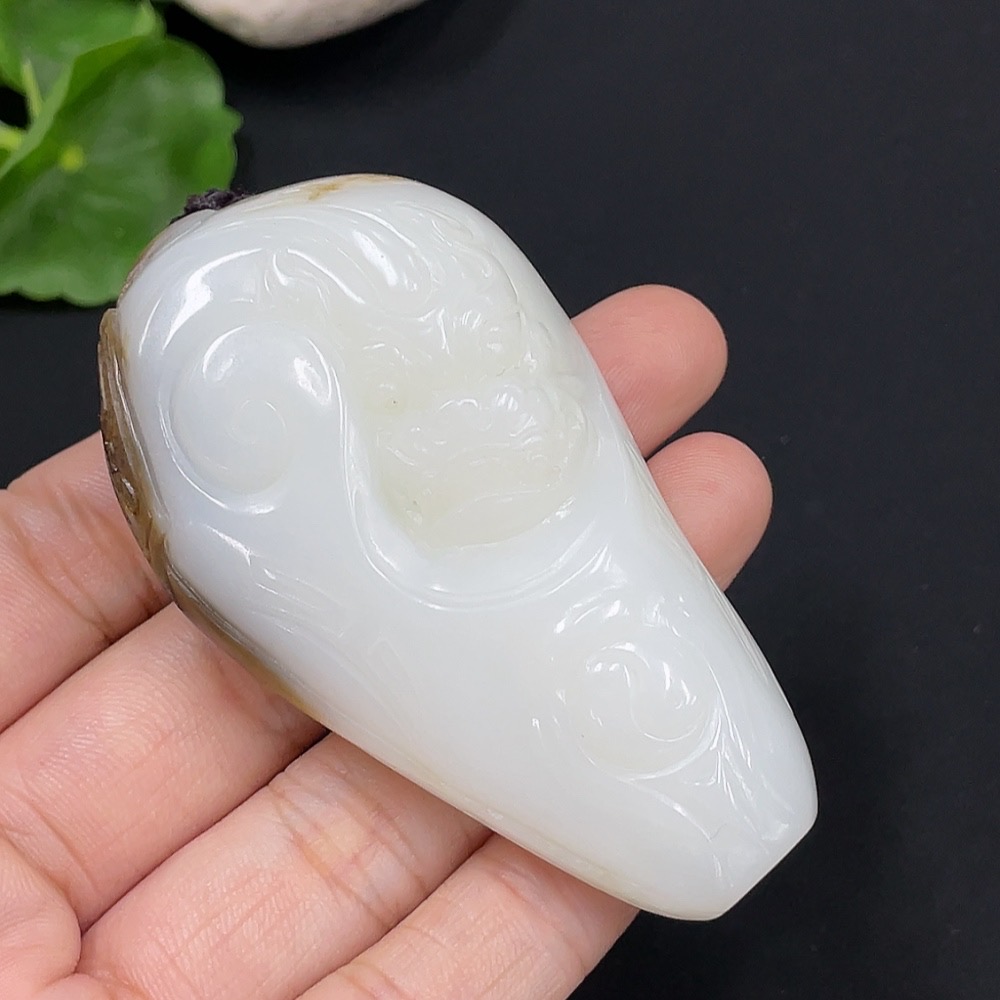 Hetian Jade Pendant Auspicious Beast Undetermined Skin Color Cause Chain Not Hetian Jade Total Weight Approximately (Including Chain) 97.1g