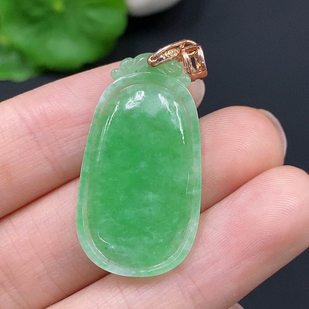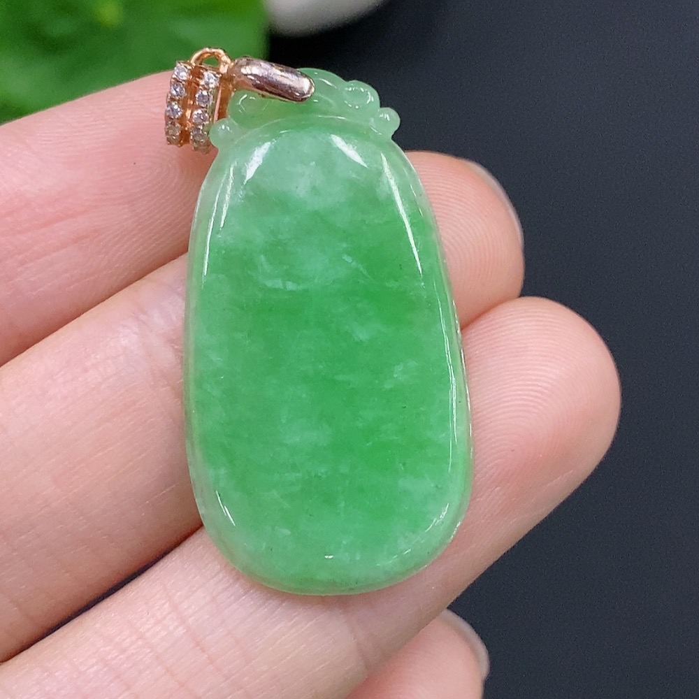 Jadeite Fu Gua Pendant, Non-Gold Inlaid, Total Weight Approx. 3.2g