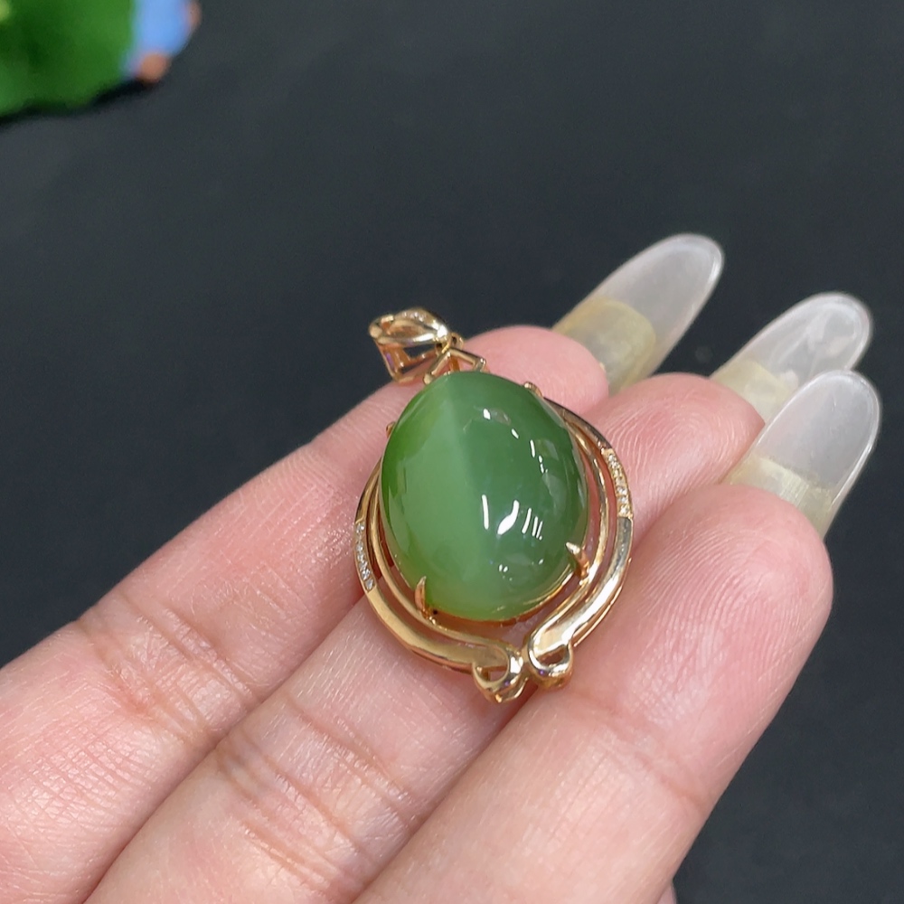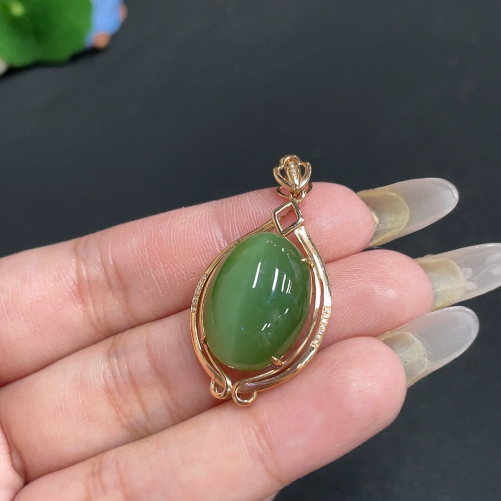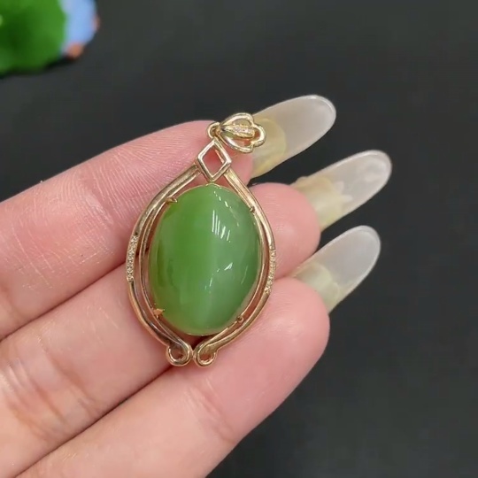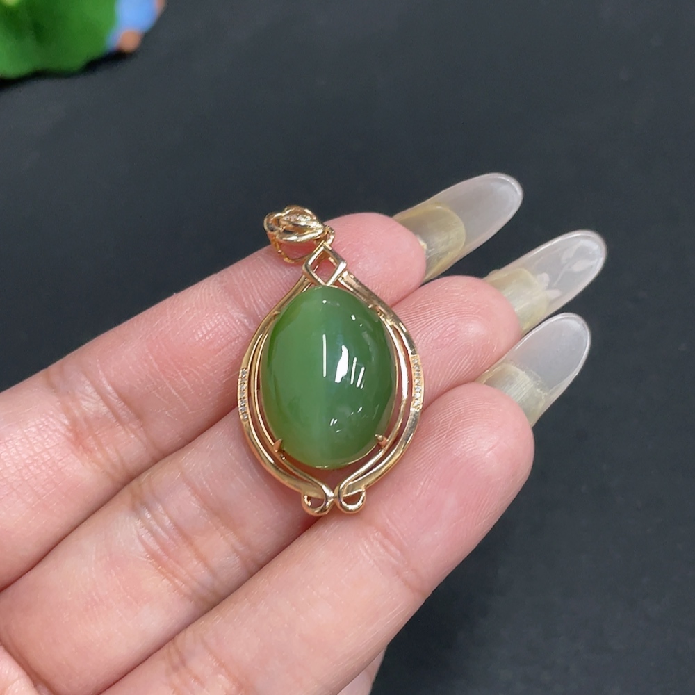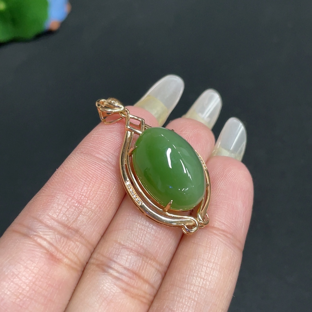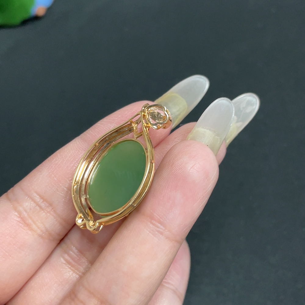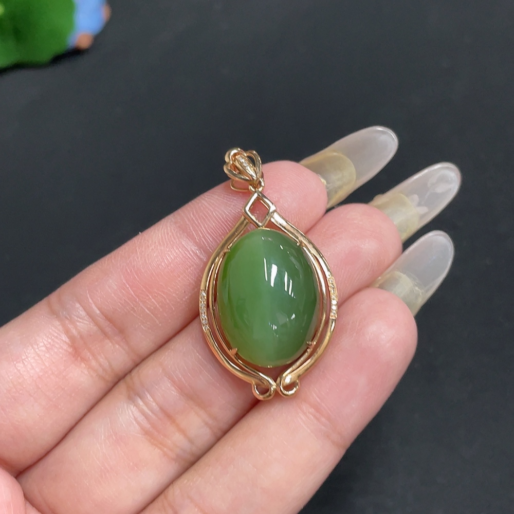 Hetian Jade Cabochon Pendant with 18K Gold Setting, Total Weight Approx. 6.1g