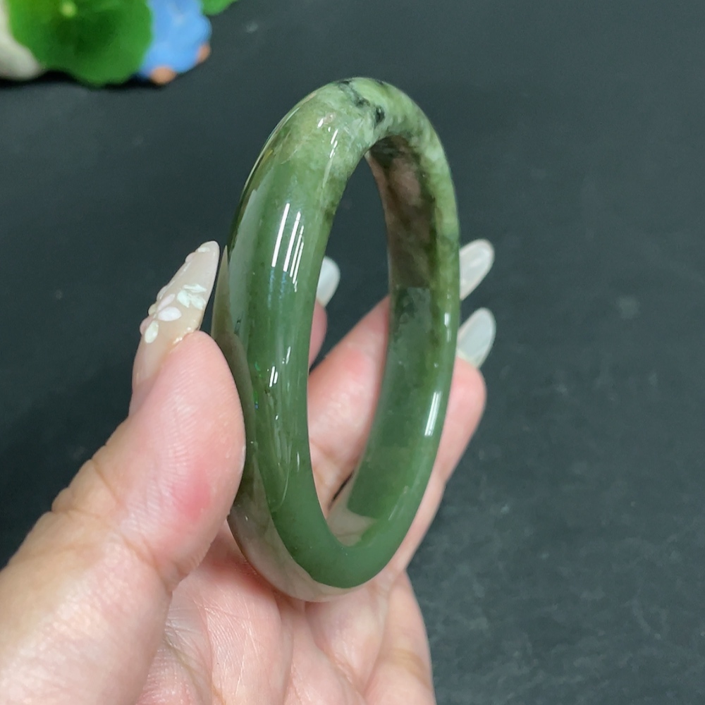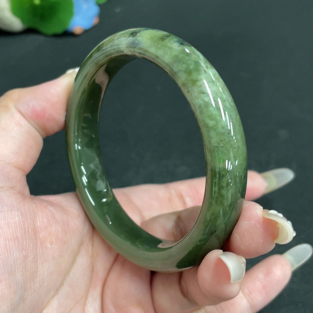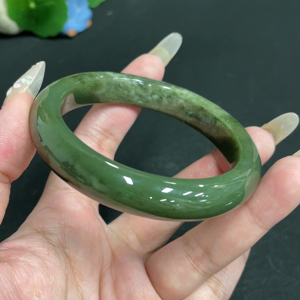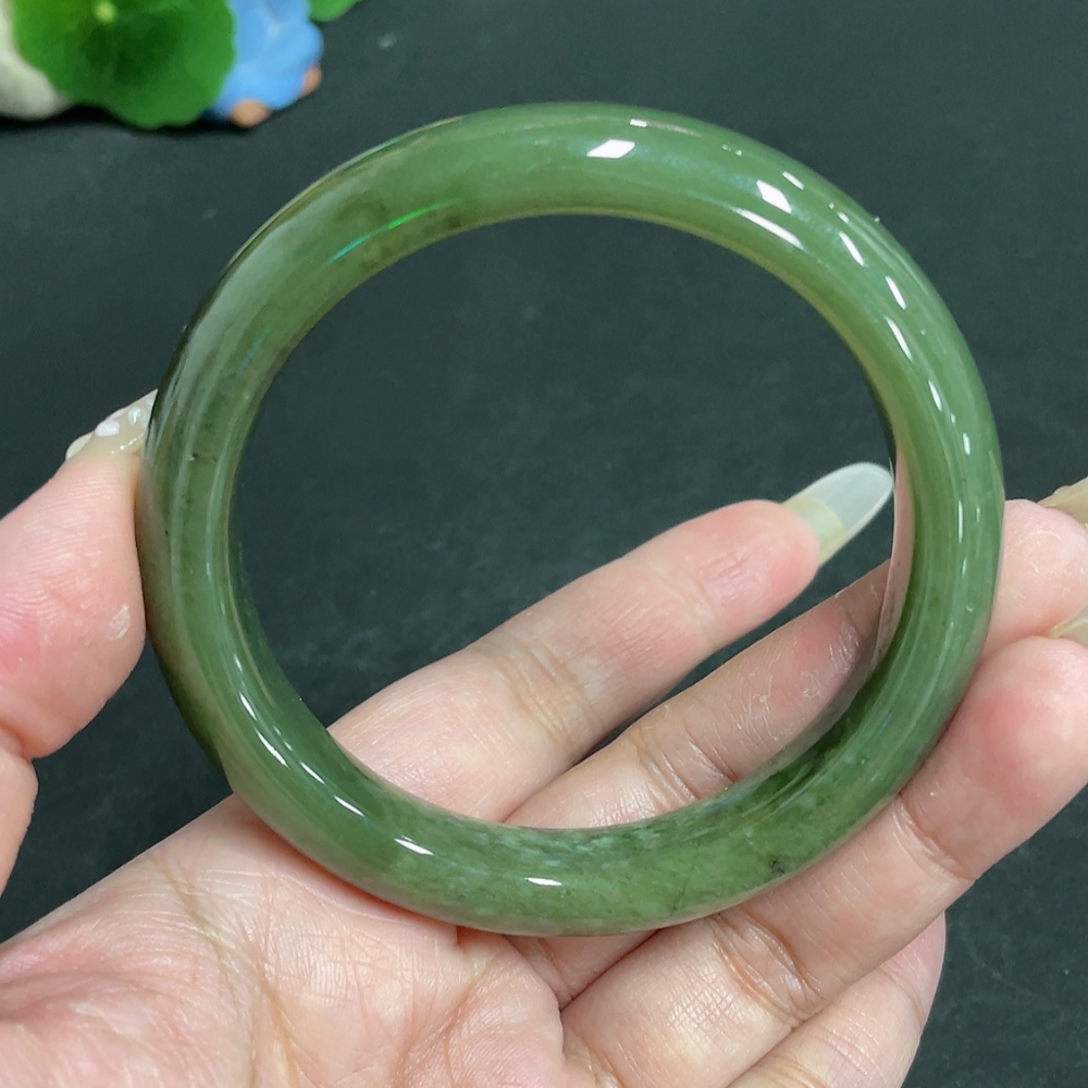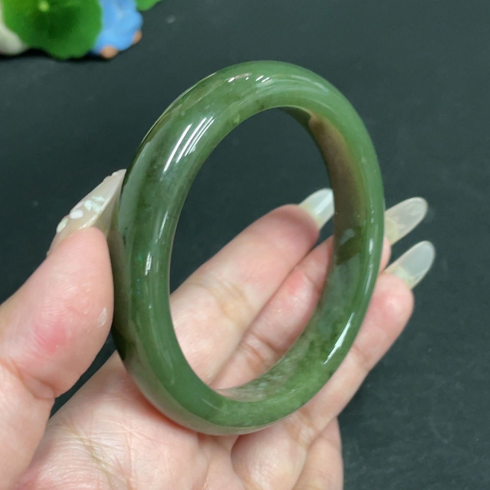 Hetian Jade Round Bracelet, Size 60.2, Total Weight Approx. 59.5g, Contains Other Mineral Components