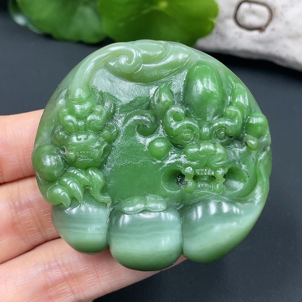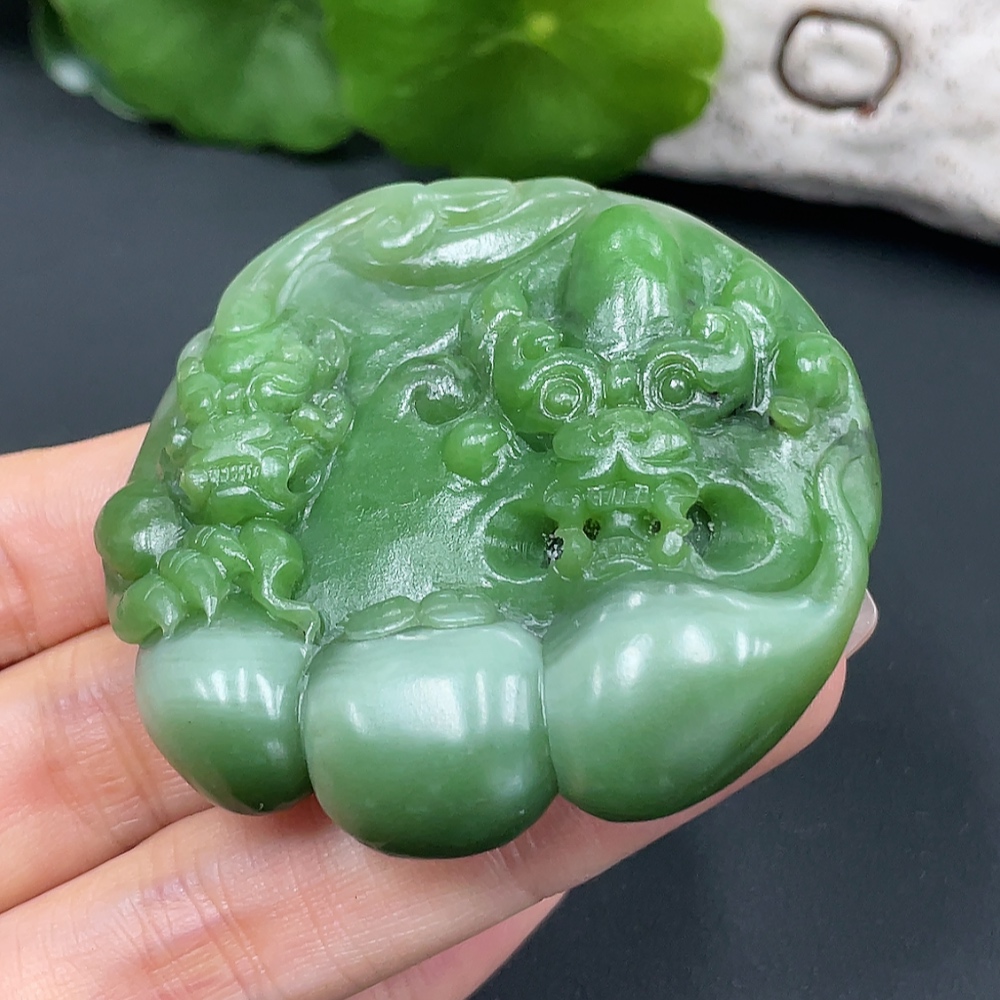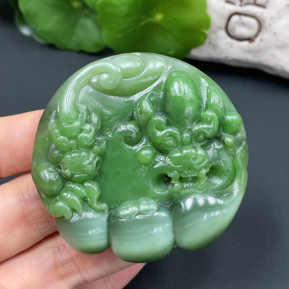 Hetian Jade Pendant Auspicious Beast Total weight about 52.8g