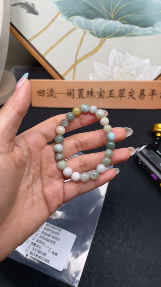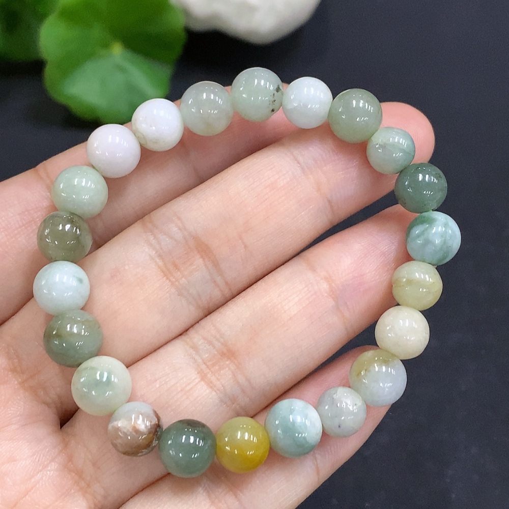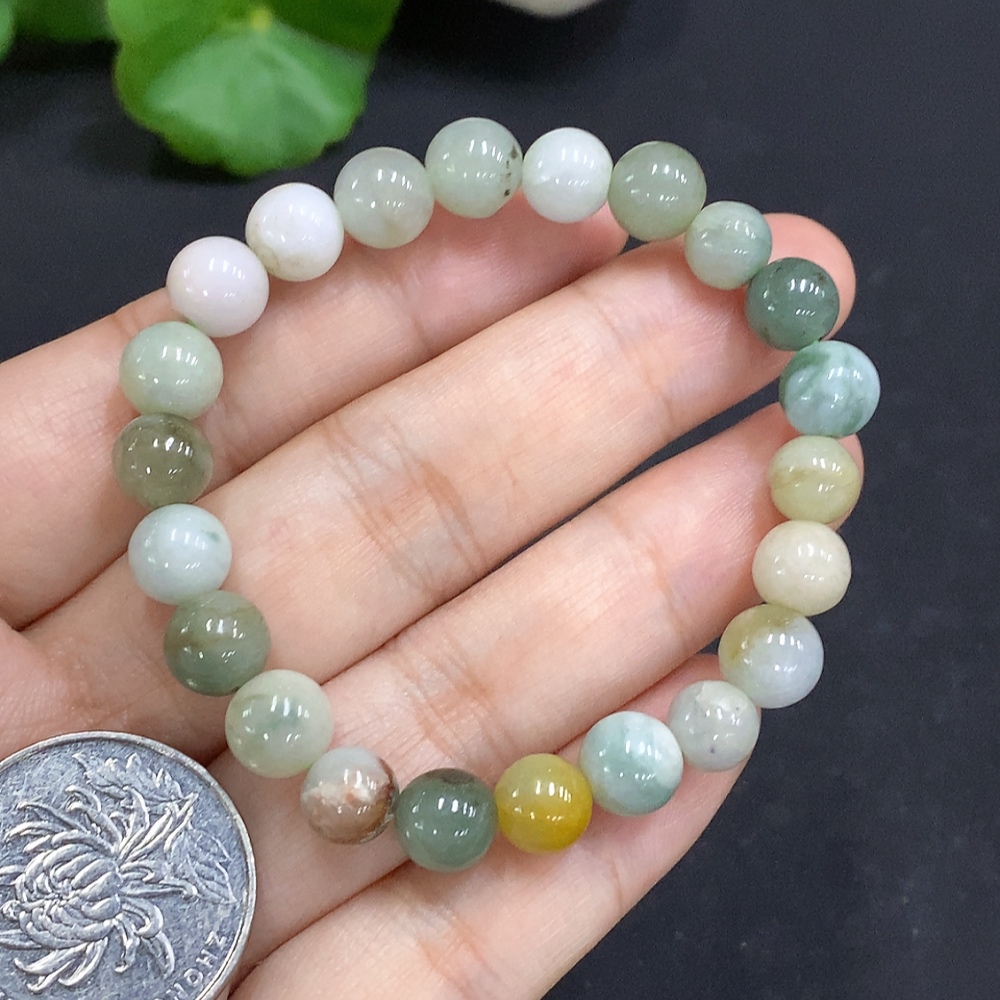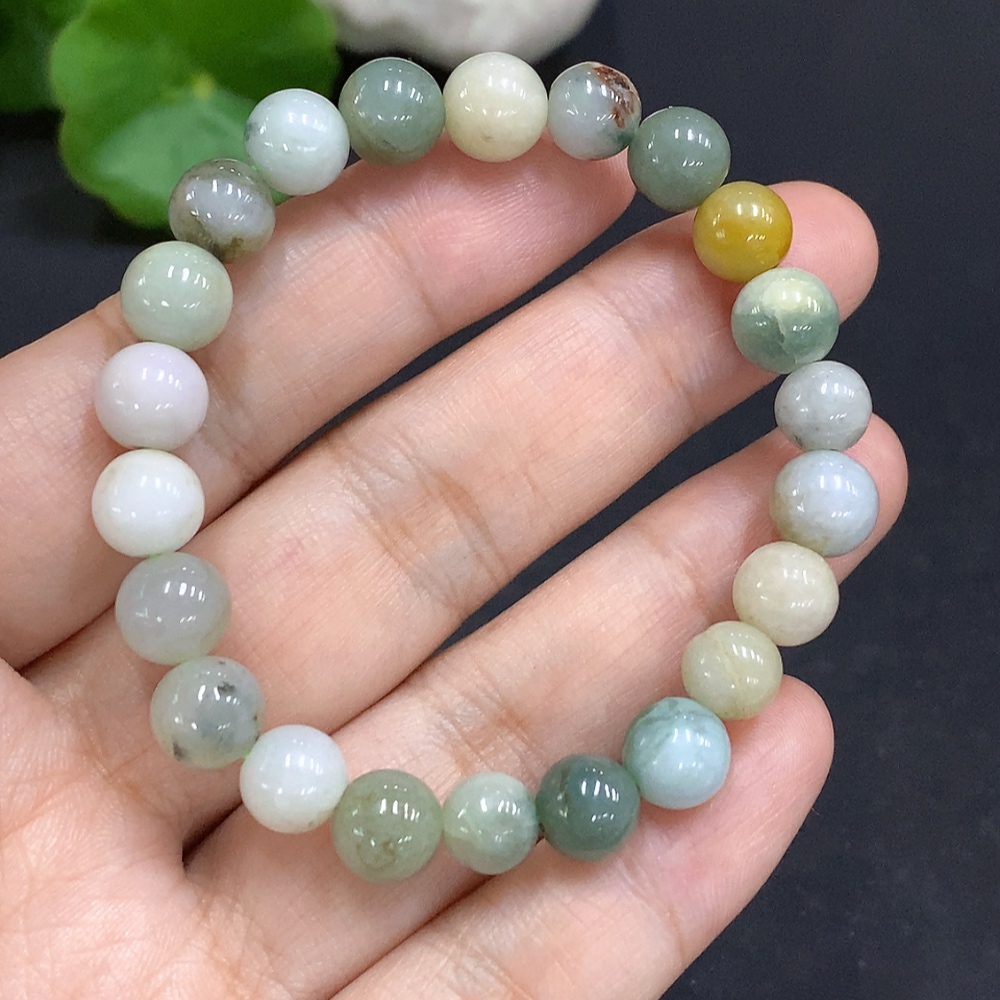 Jadeite bead strand approx. 7.8mm total weight approx. 18.2g (color origin undetermined)