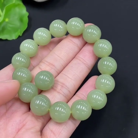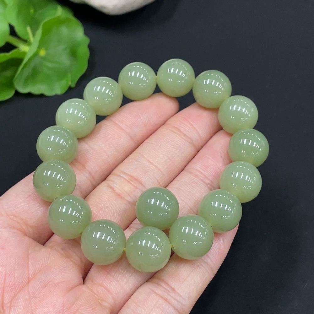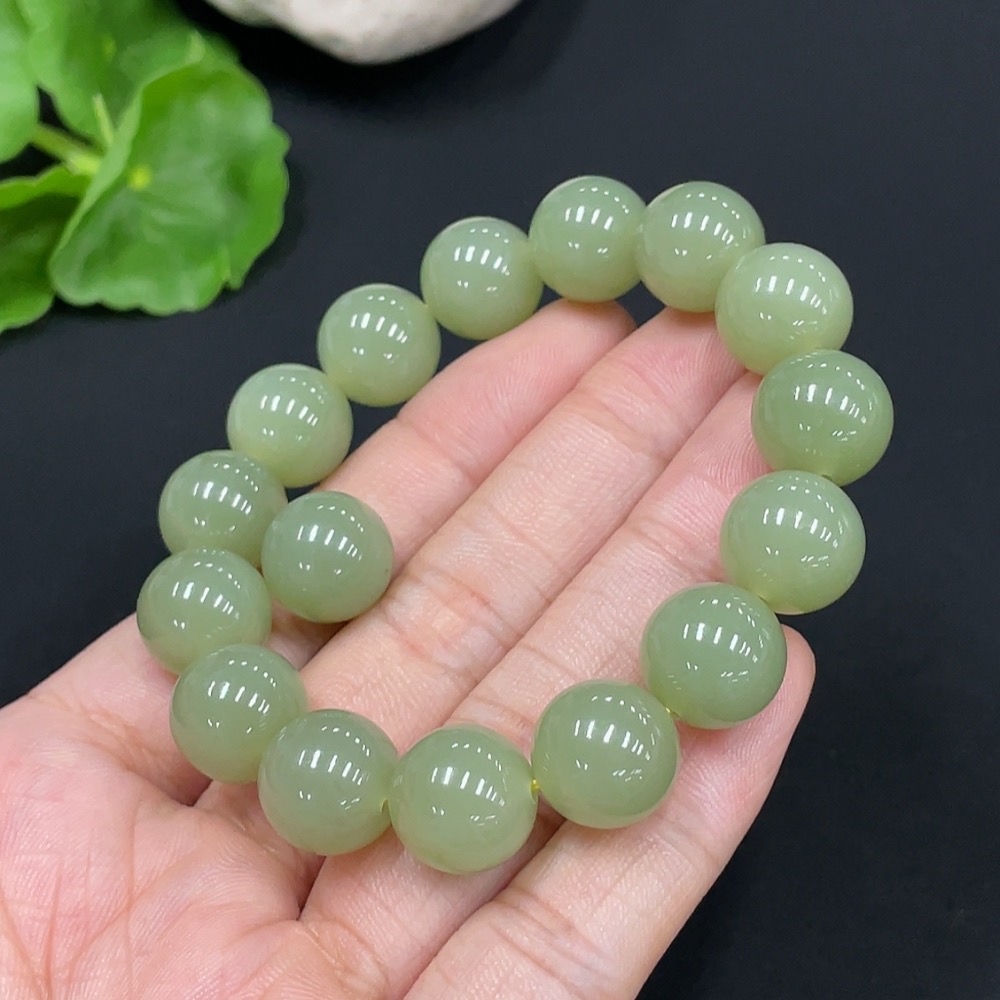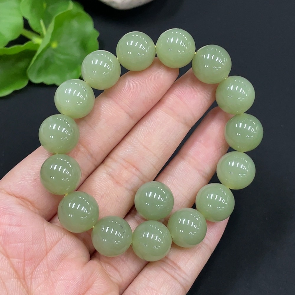 Hetian Jade Bracelet, Approx. 11.8mm Beads, Total Weight Approx. 42.4g