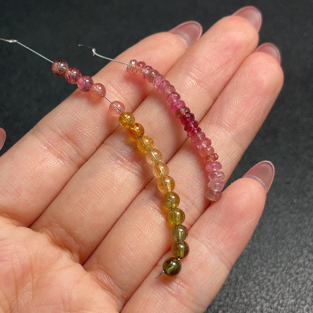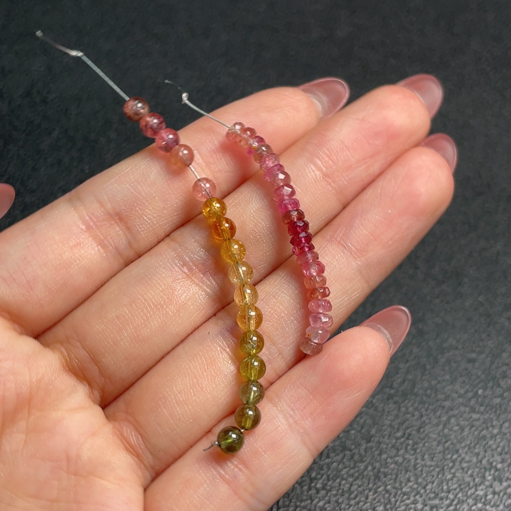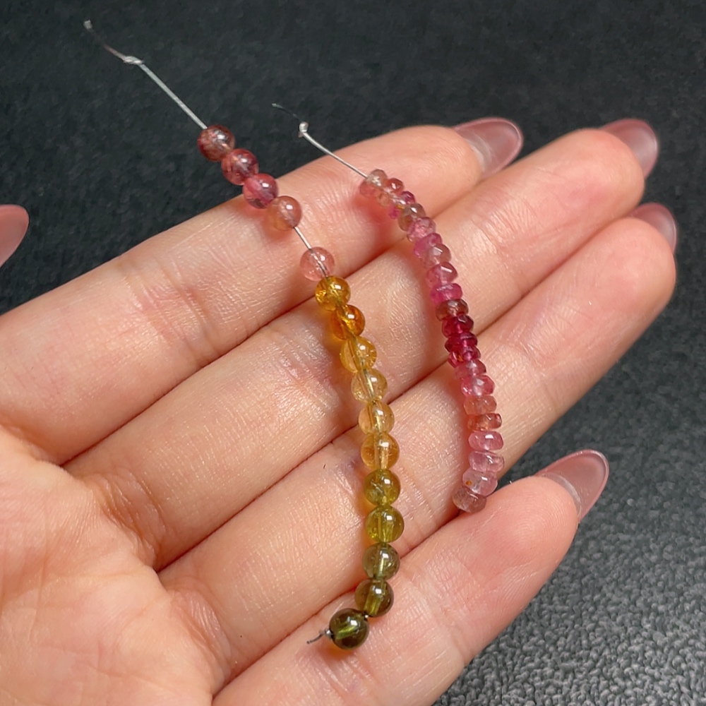 Tourmaline loose beads with visible organic inclusions, non-metal, total weight approx. 2.61g