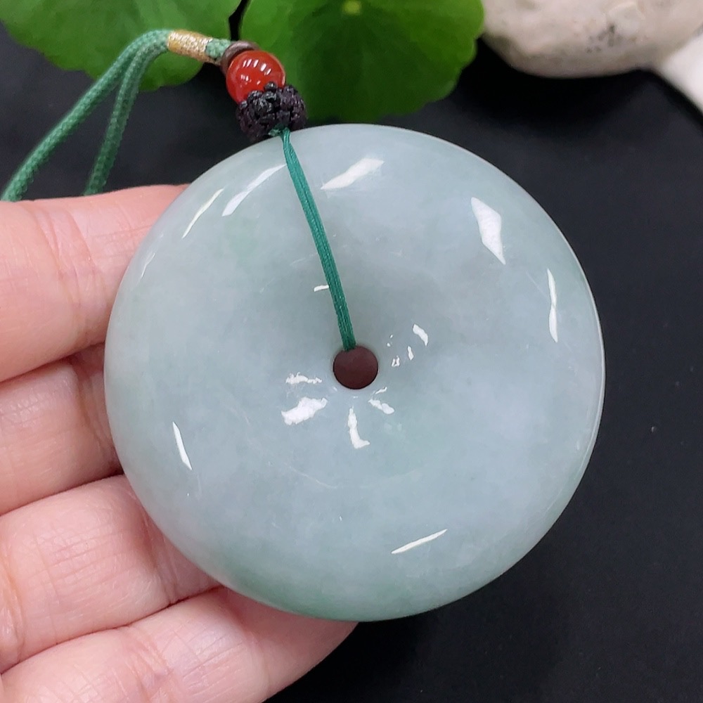 Jadeite Peace Buckle Pendant Total Weight Approx. 70.5g (Including Rope Weight) (Non-A Grade Mounting Stones)