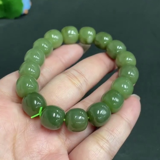 Hetian Jade Bracelet, Approx. 11.5 mm Beads, Total Weight Approx. 49.4g