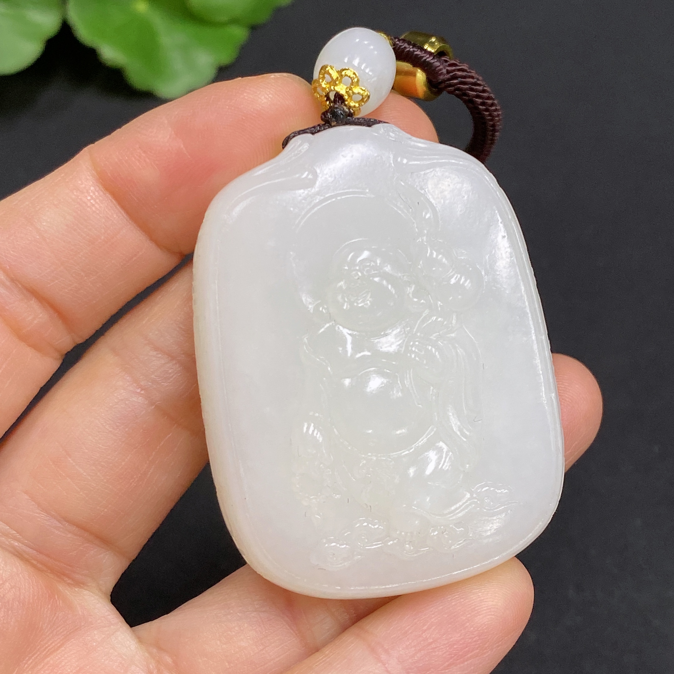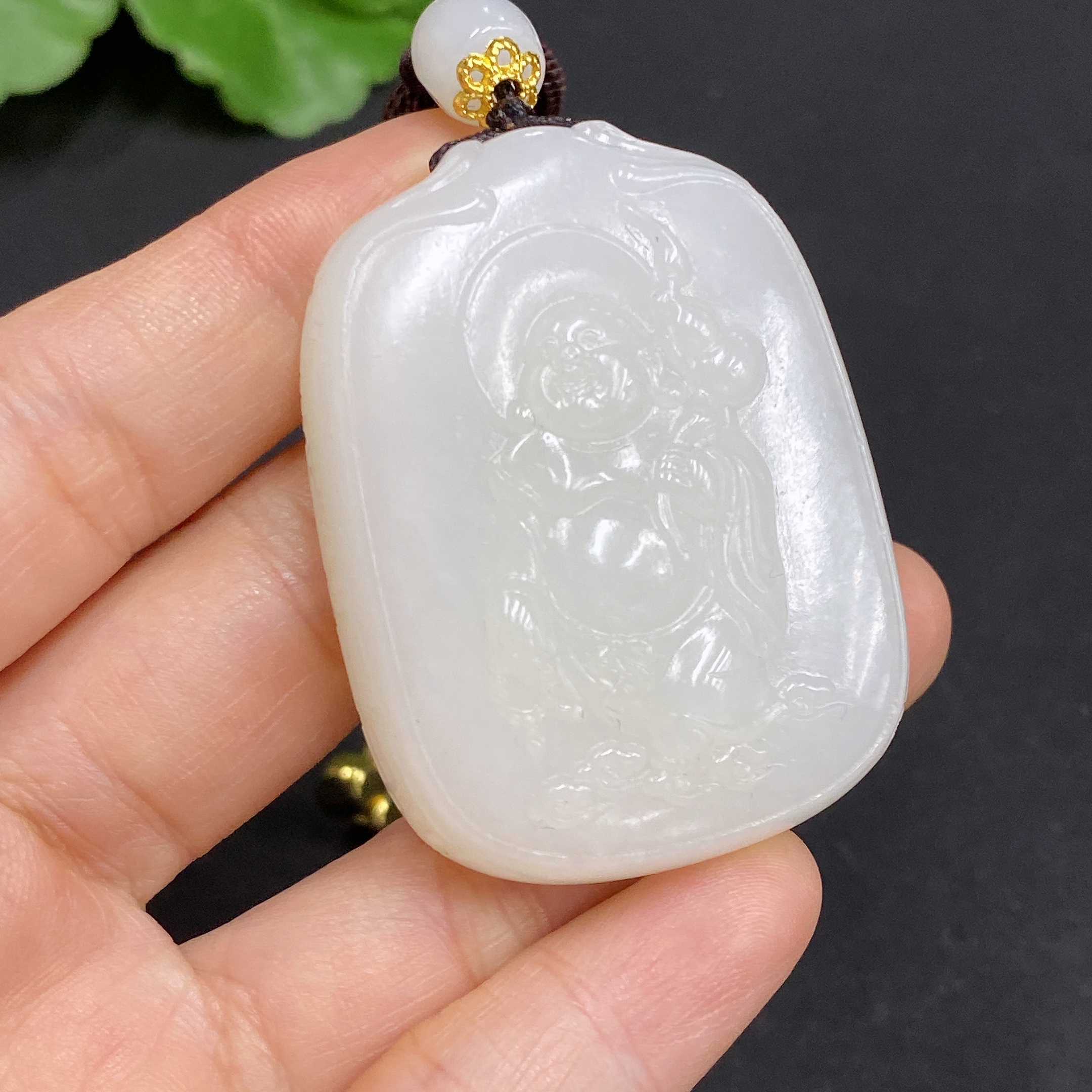 Hetian Jade Pendant Buddha Total Weight Approx. (Including Rope) 50g
