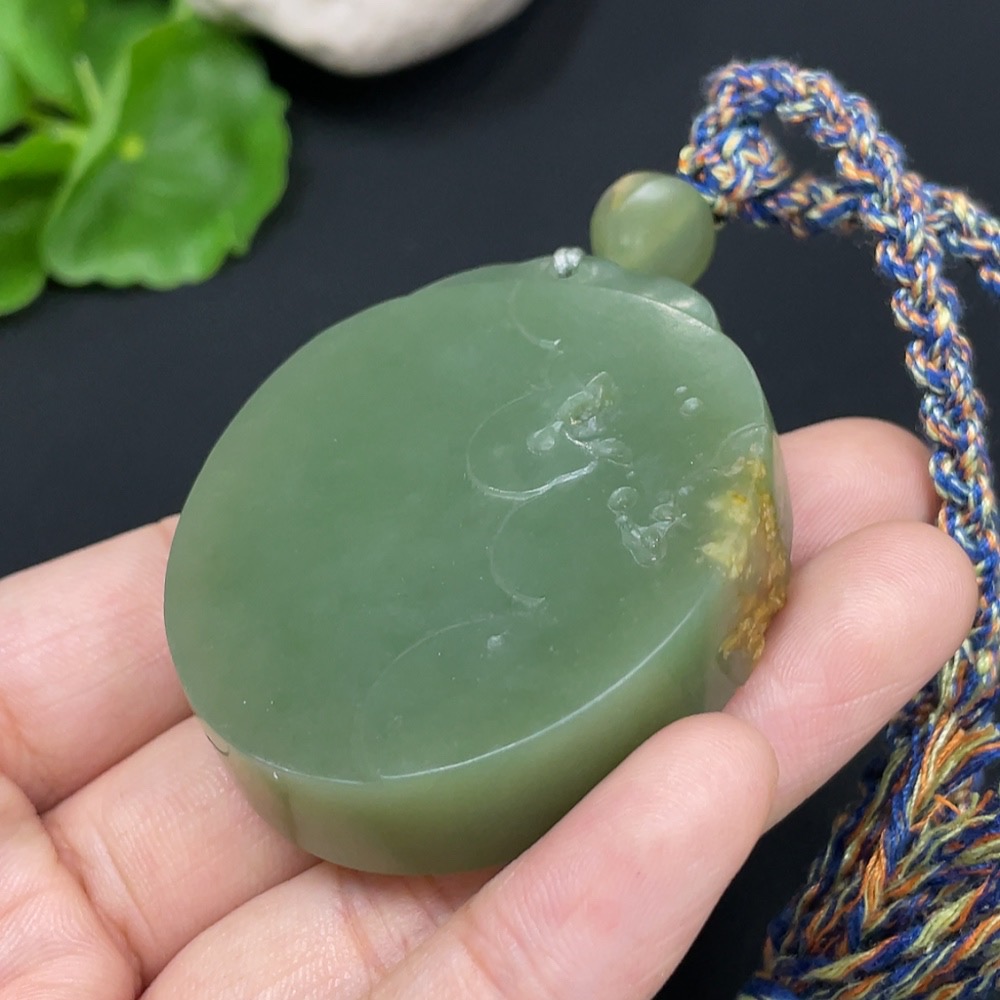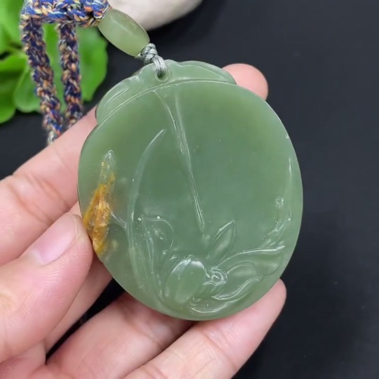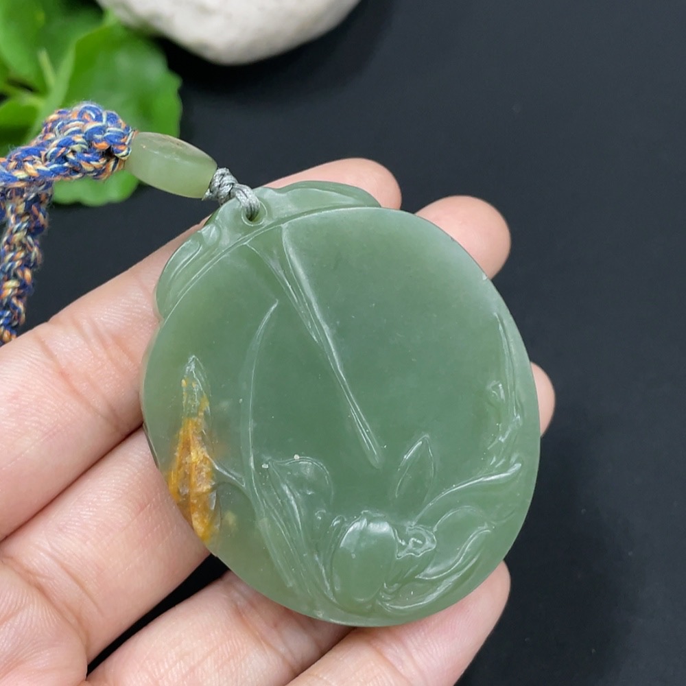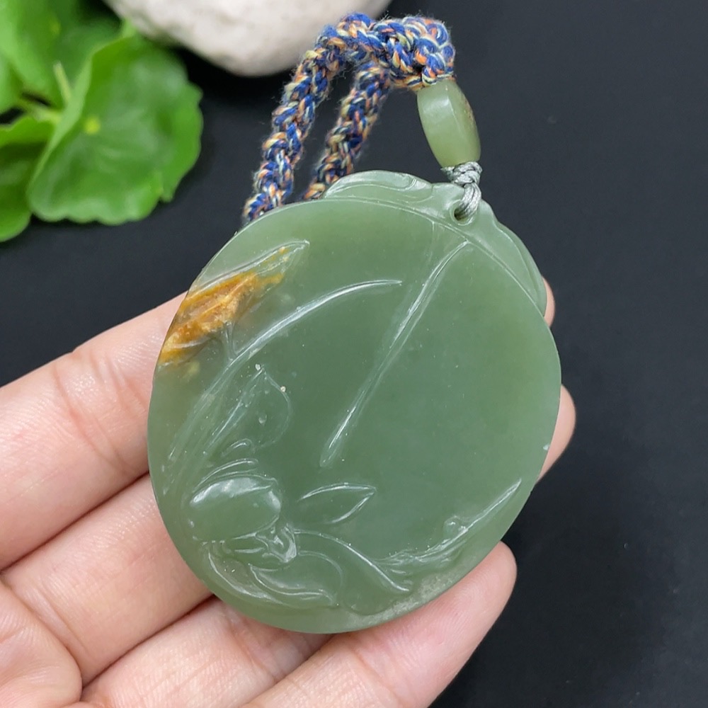 Hetian Jade Pendant Lotus Undetermined Skin Color Formation Total Weight (Including String) 60.4g