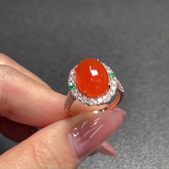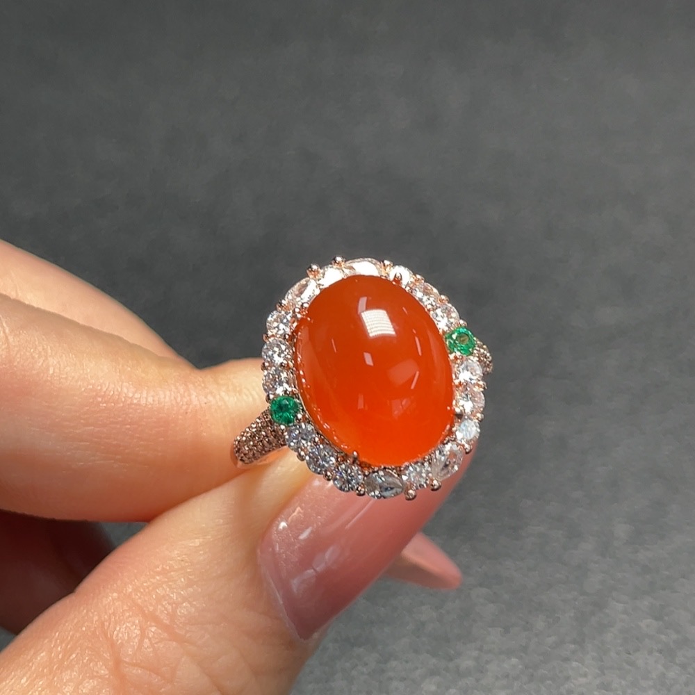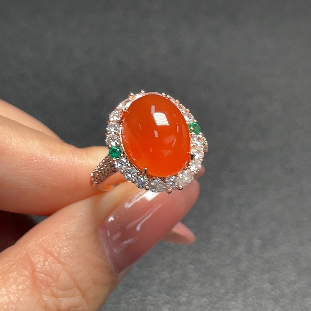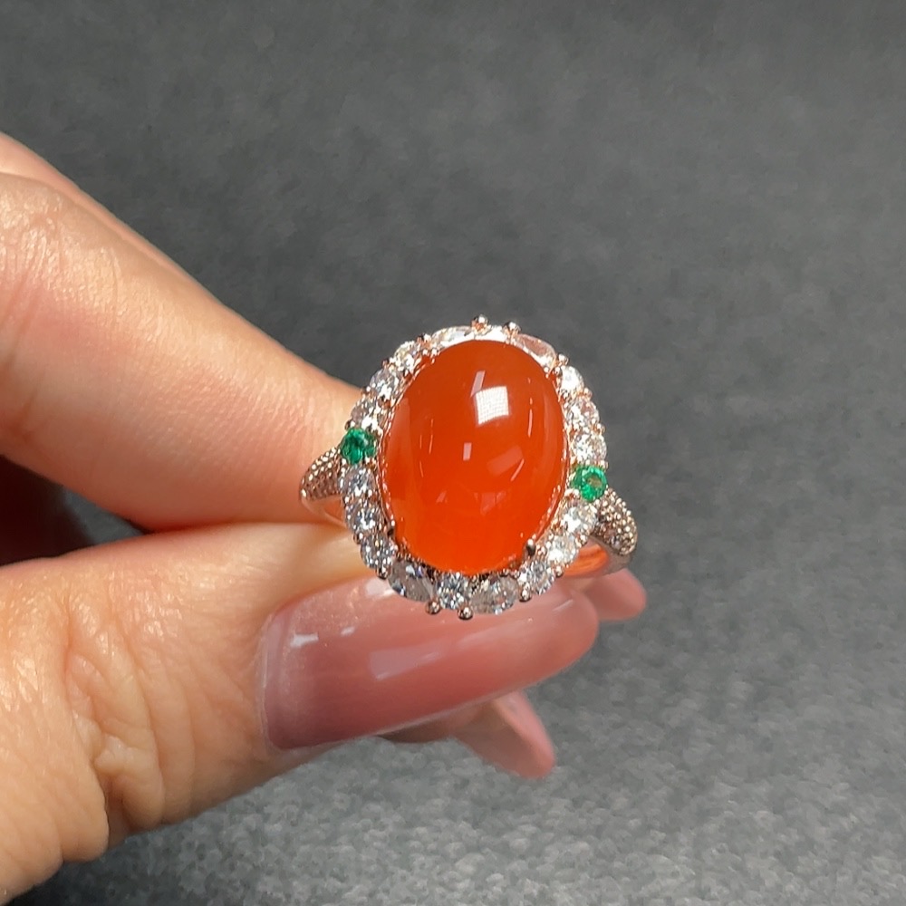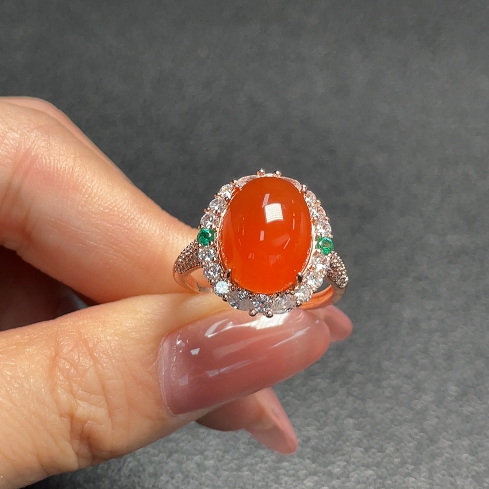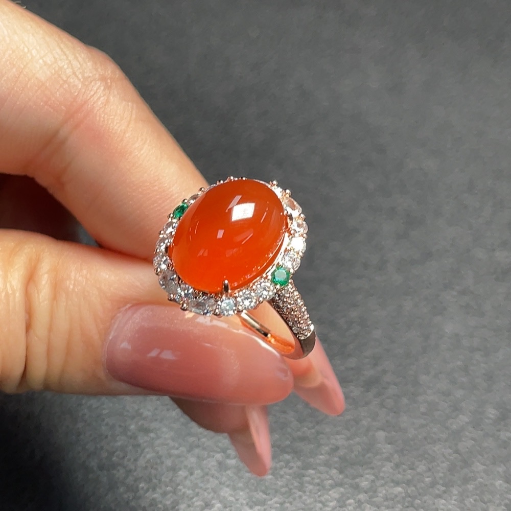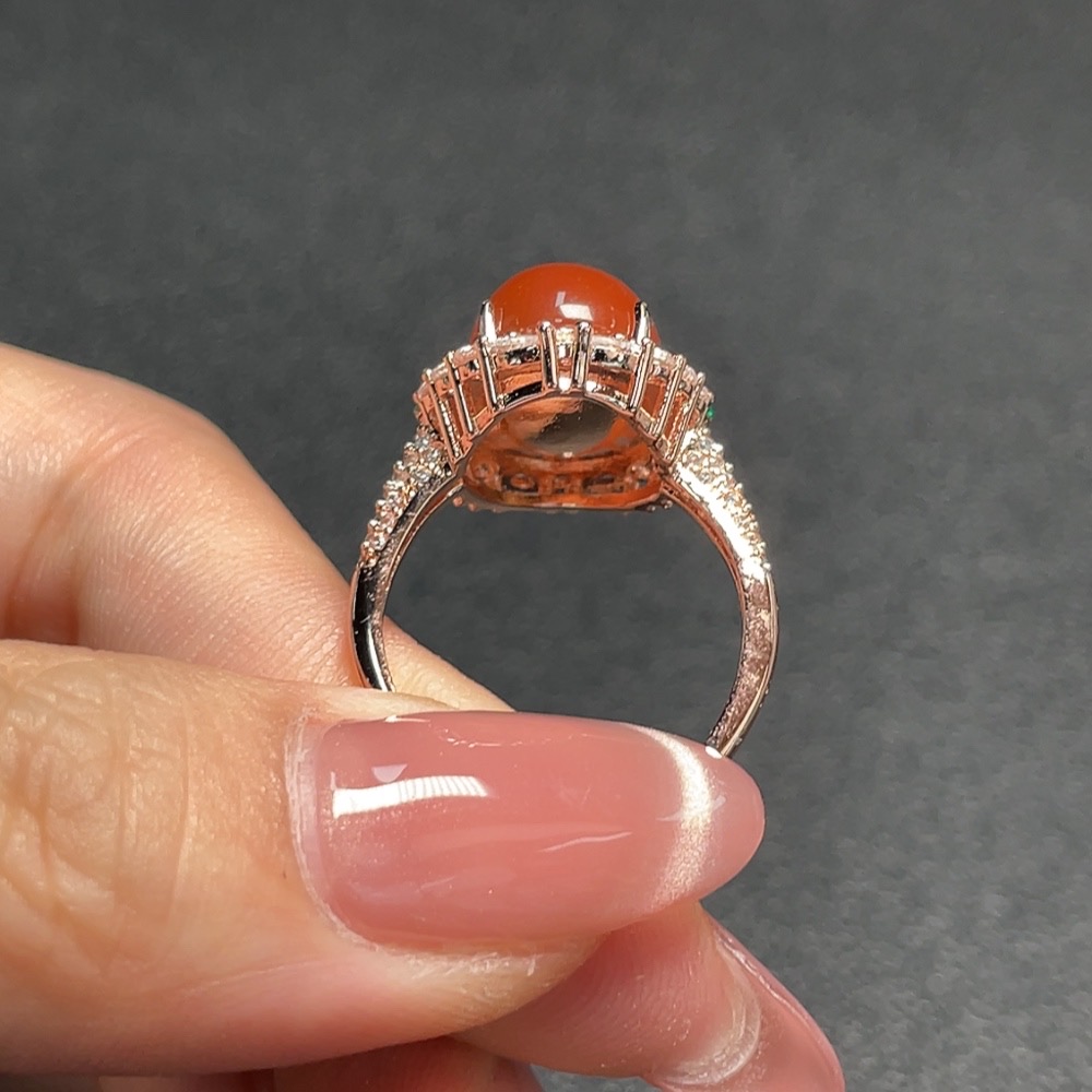South Red Agate Inlay Ring (Non-Gold Setting, Adjustable, Total Weight Approx. 5.05g)