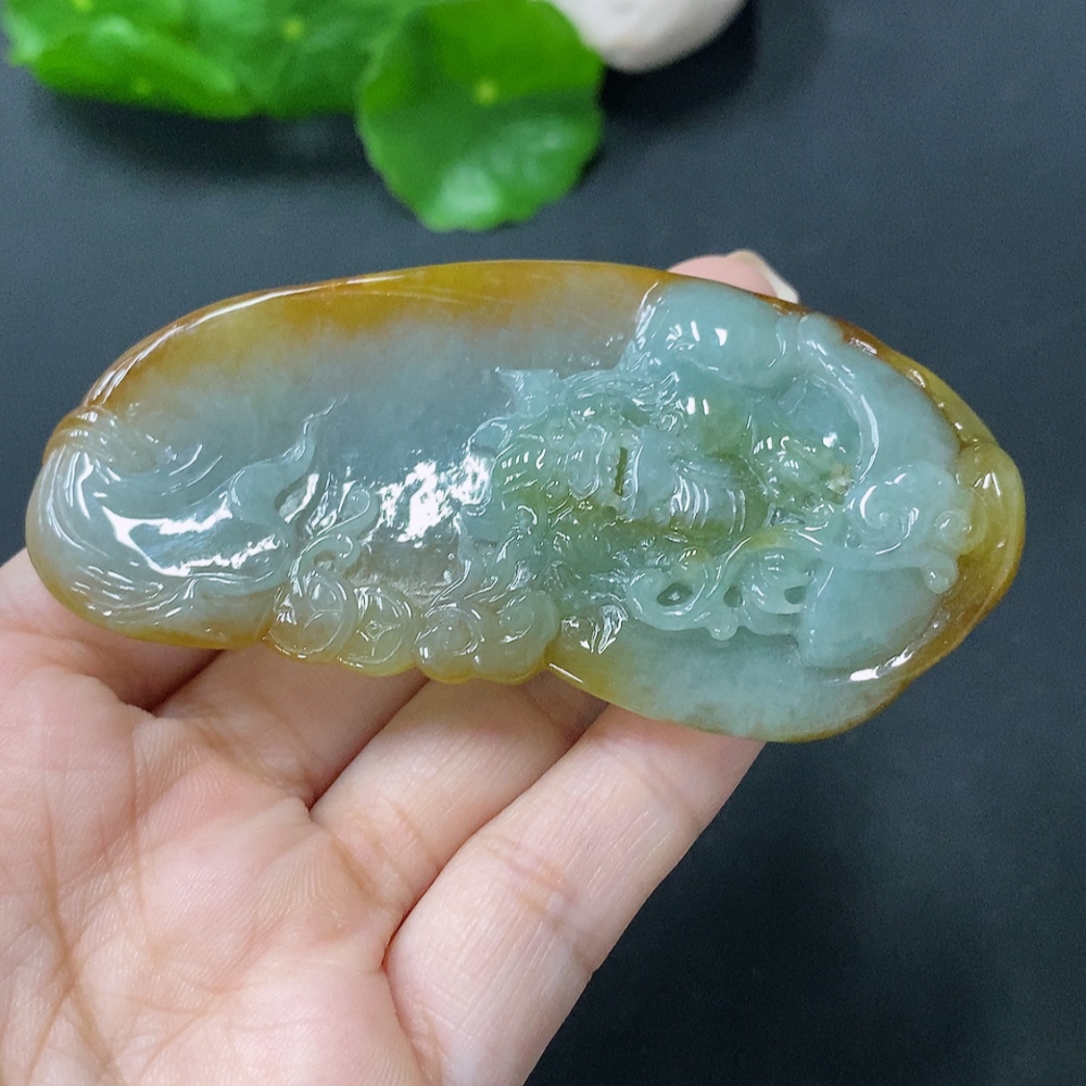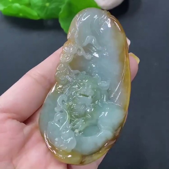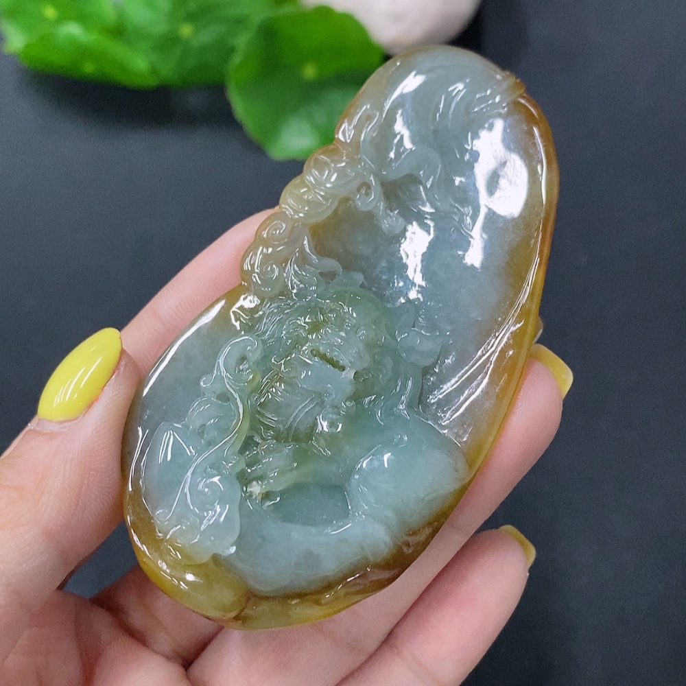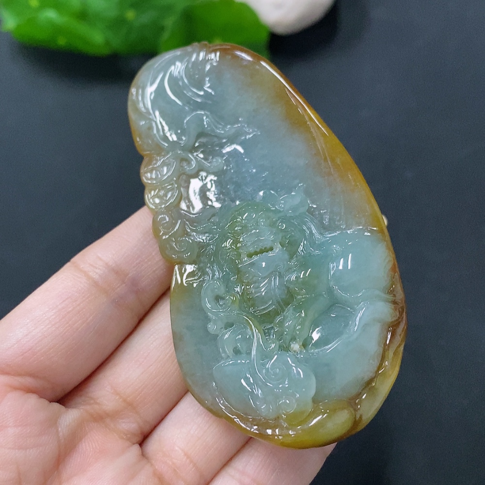 Jadeite Pendant Auspicious Beast Total weight approx. 68.88g Color origin undetermined