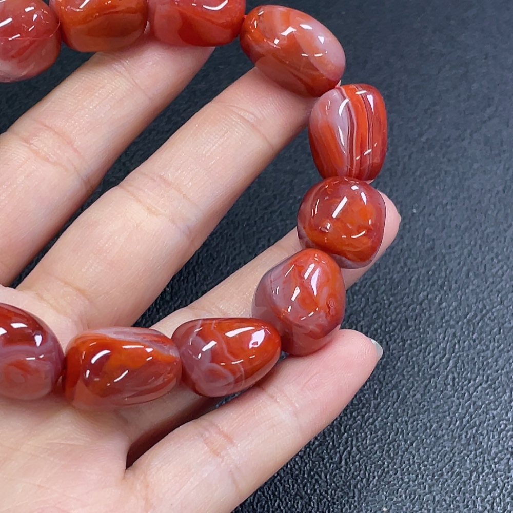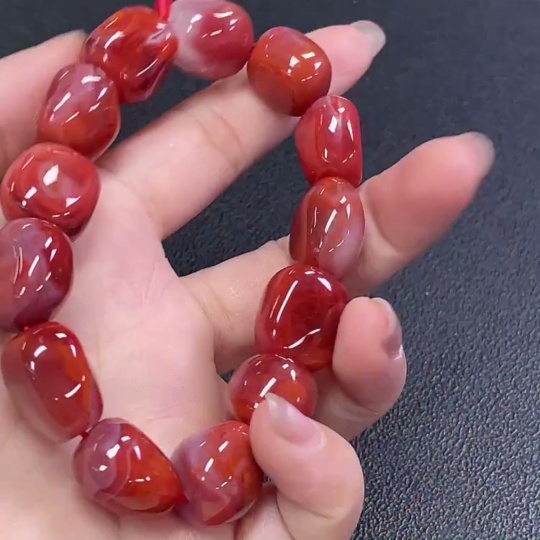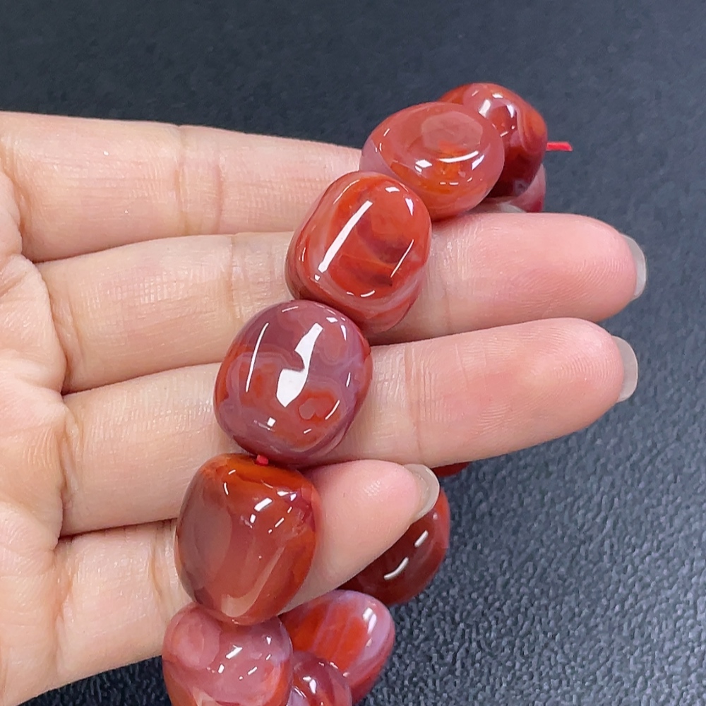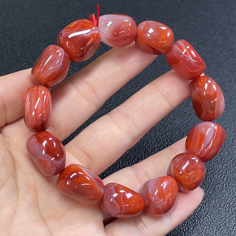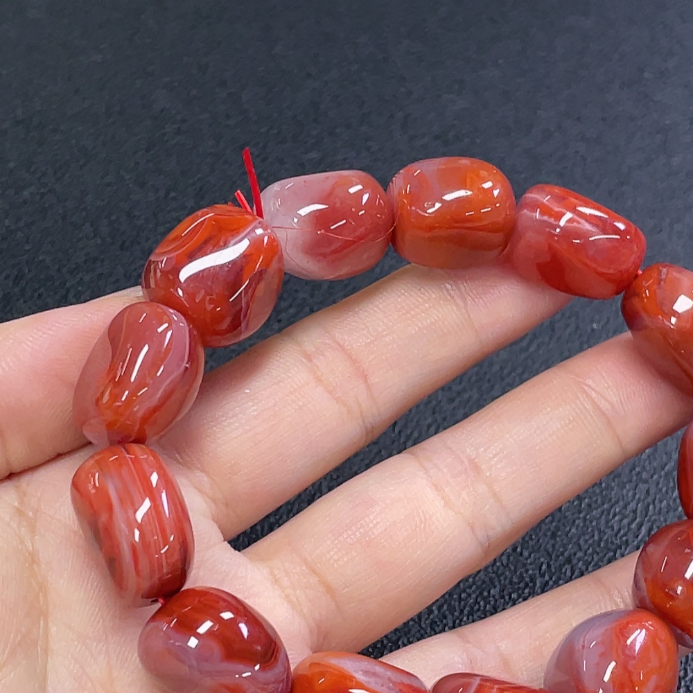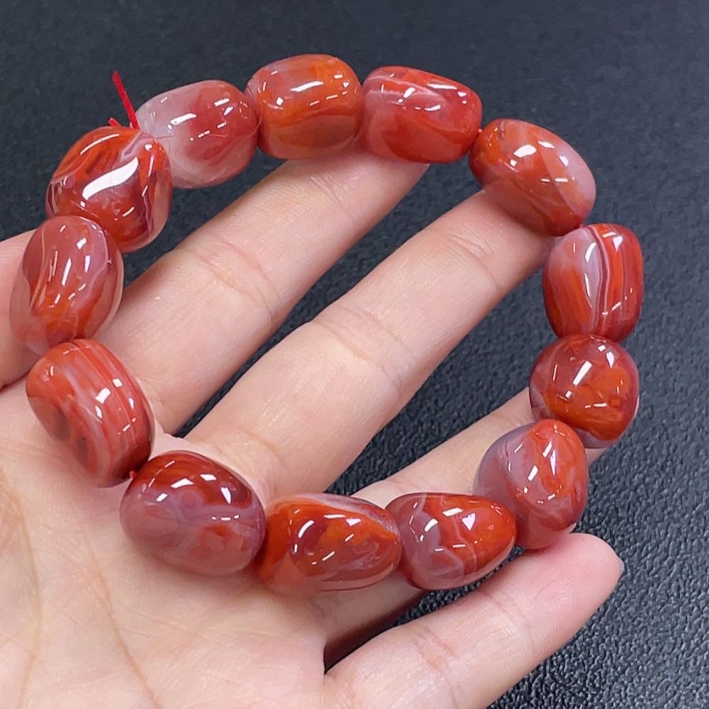 Red Agate Bracelet with Visible Organic Inclusions, Total Weight Approx. 66.36g, Bead Size ~14.7mm