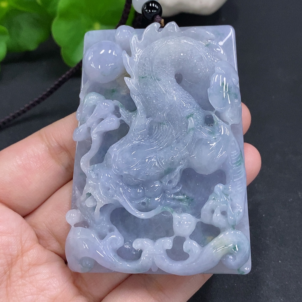 JadeiteDragon Pendant (Total Weight with Rope: Approx. 107.8g)