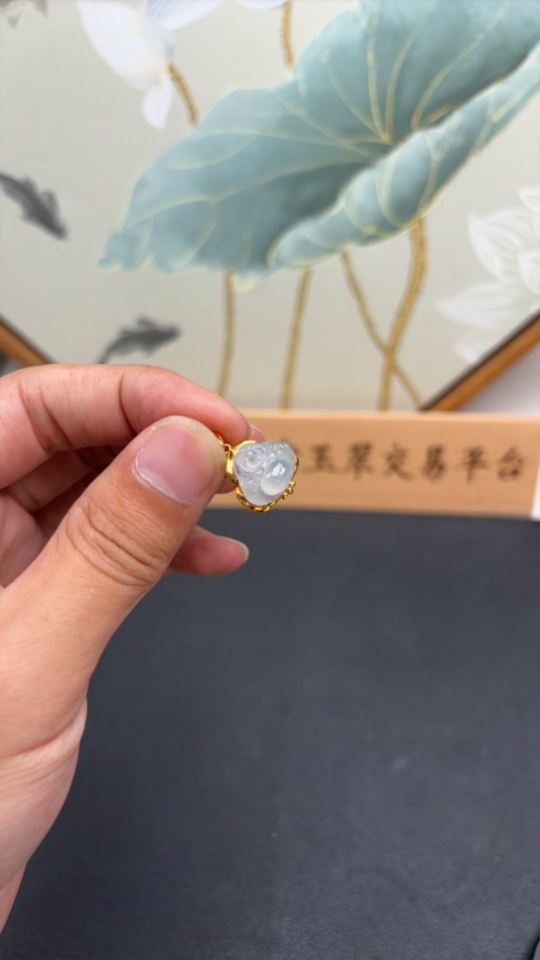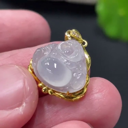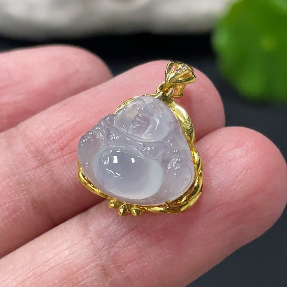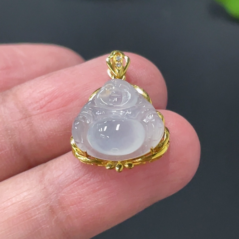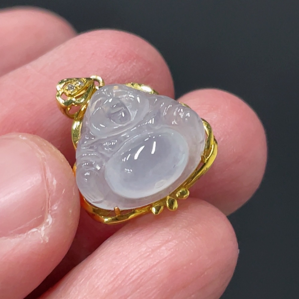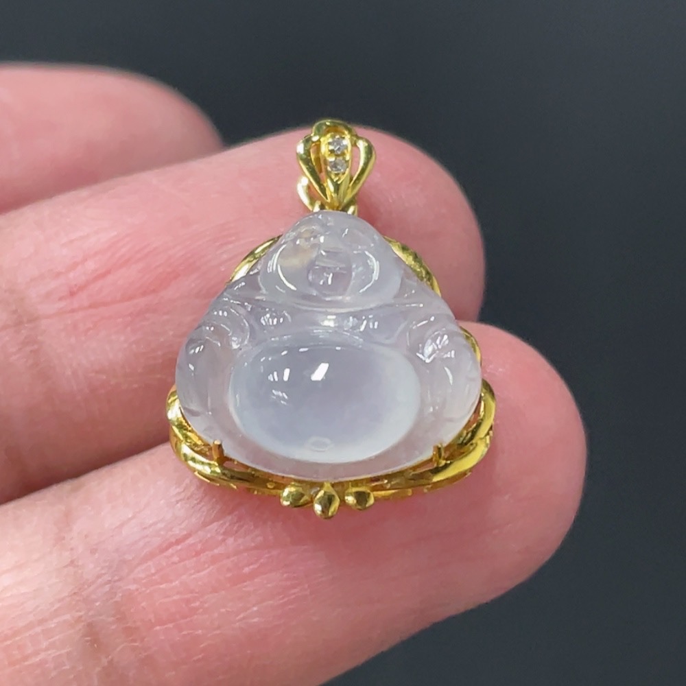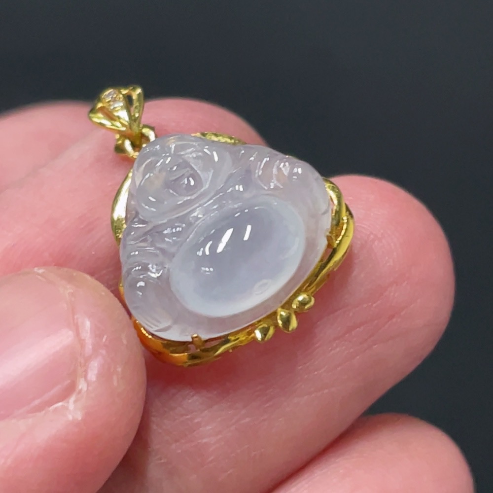 JadeiteBuddha Pendant with 18K Gold Setting, Total Weight Approx. 1.78g