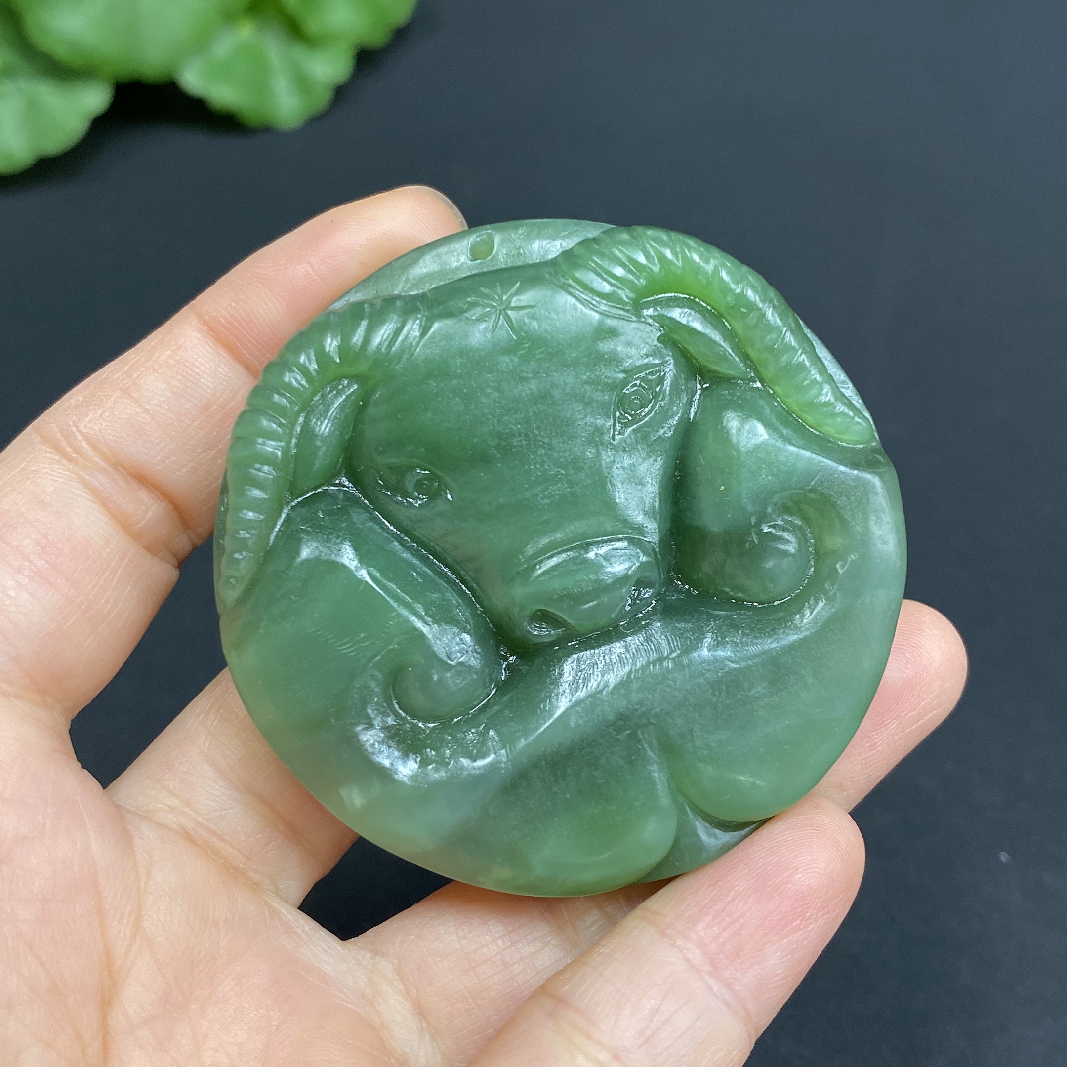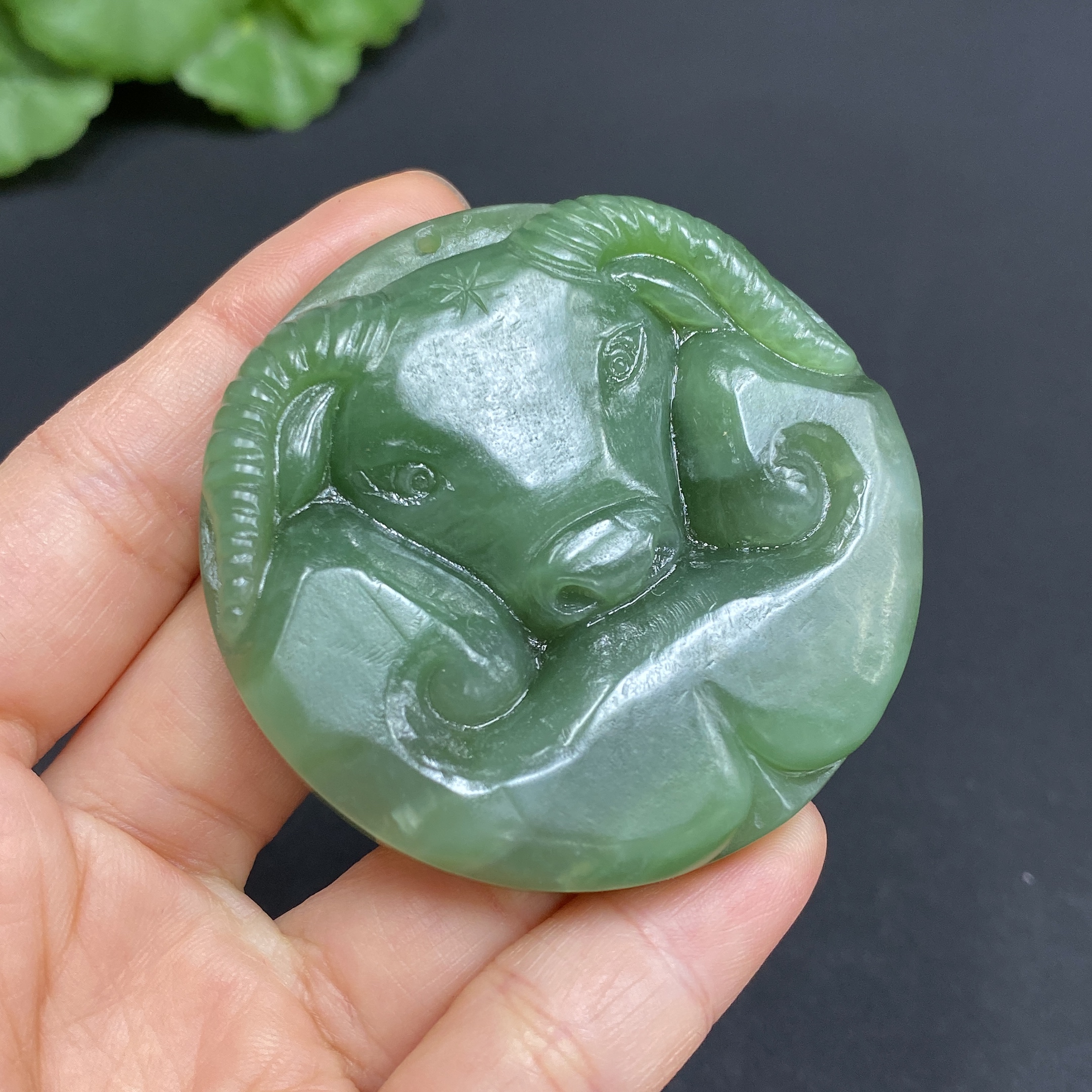 Trezaar - Hetian Jade Pendant, Ox Plaque, Total Weight Approx. 56.2g
